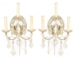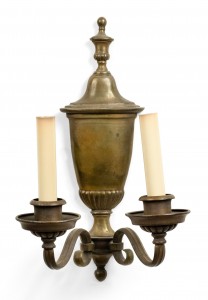 PAIR of English Georgian-Style brass 3 light sconces with scroll design arms. (PRICED AS PAIR).