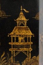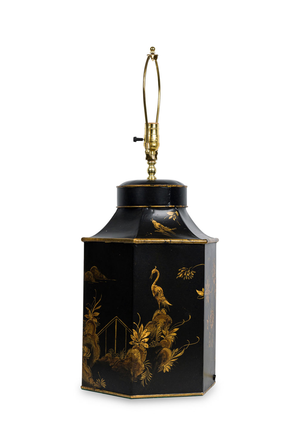 Pair of English Regency Chinoiserie Style Black And Gold Hexagonal Table Lamps