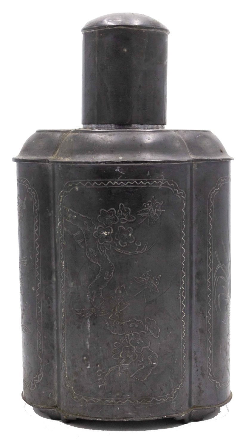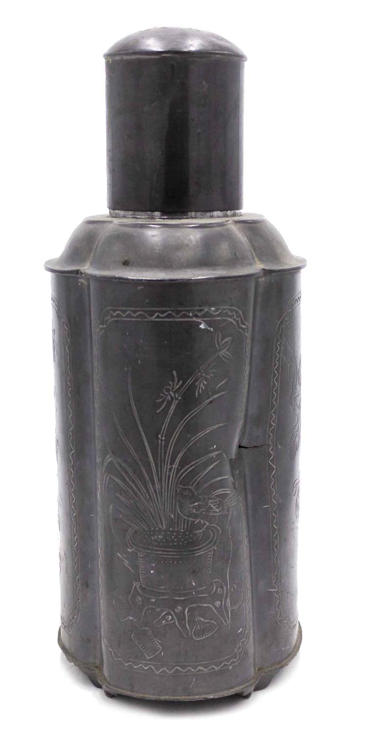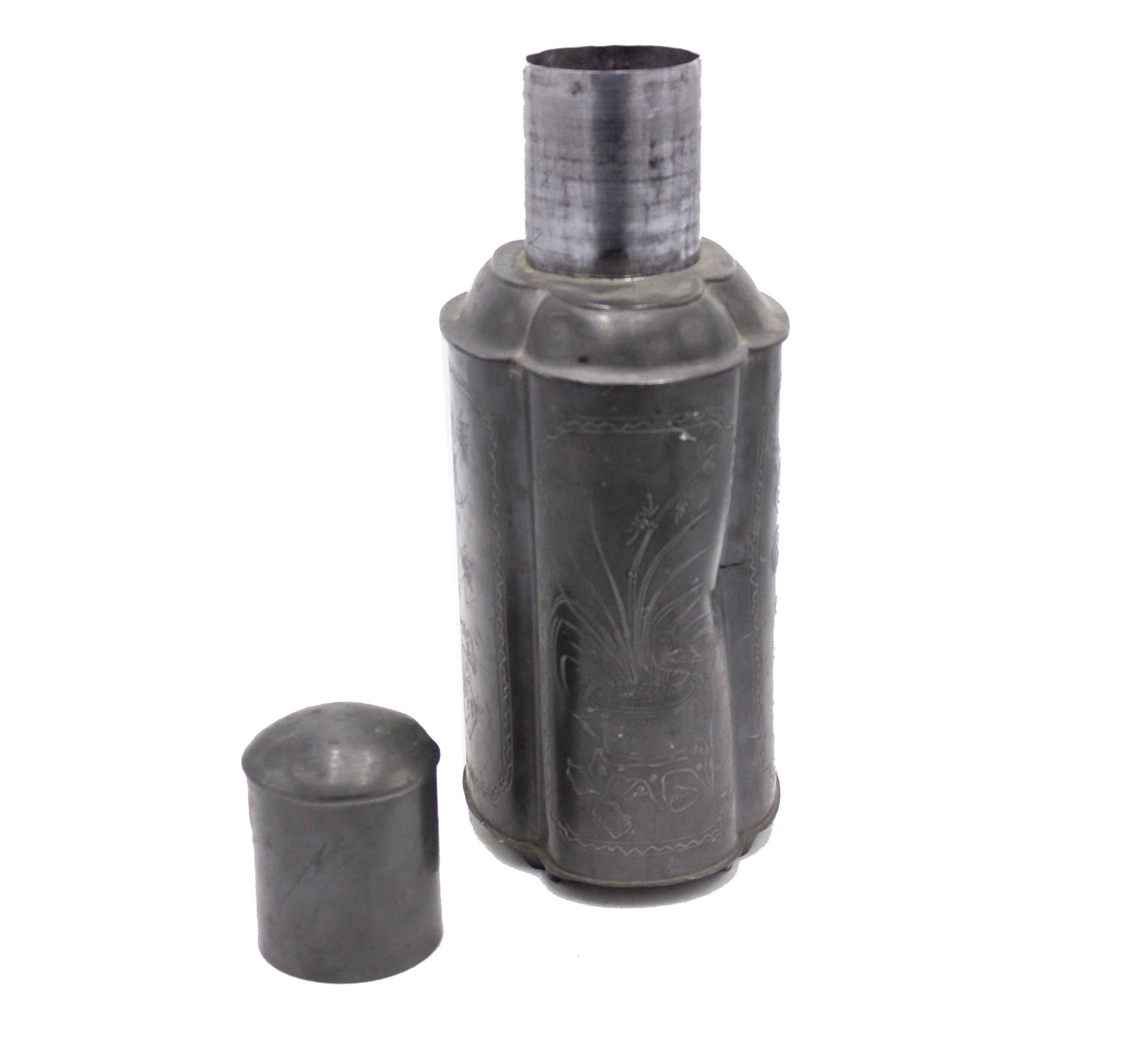 Style: English Materials & Techniques: Pewter, etched Category: Accessories/Décor/Bric-a-Brac