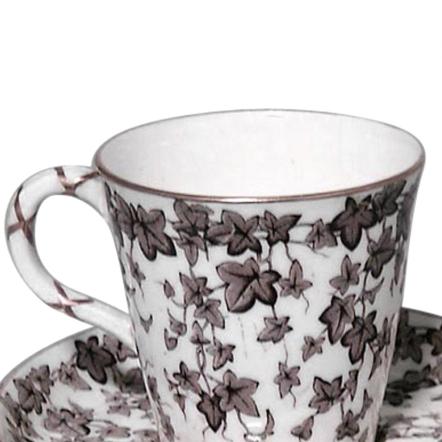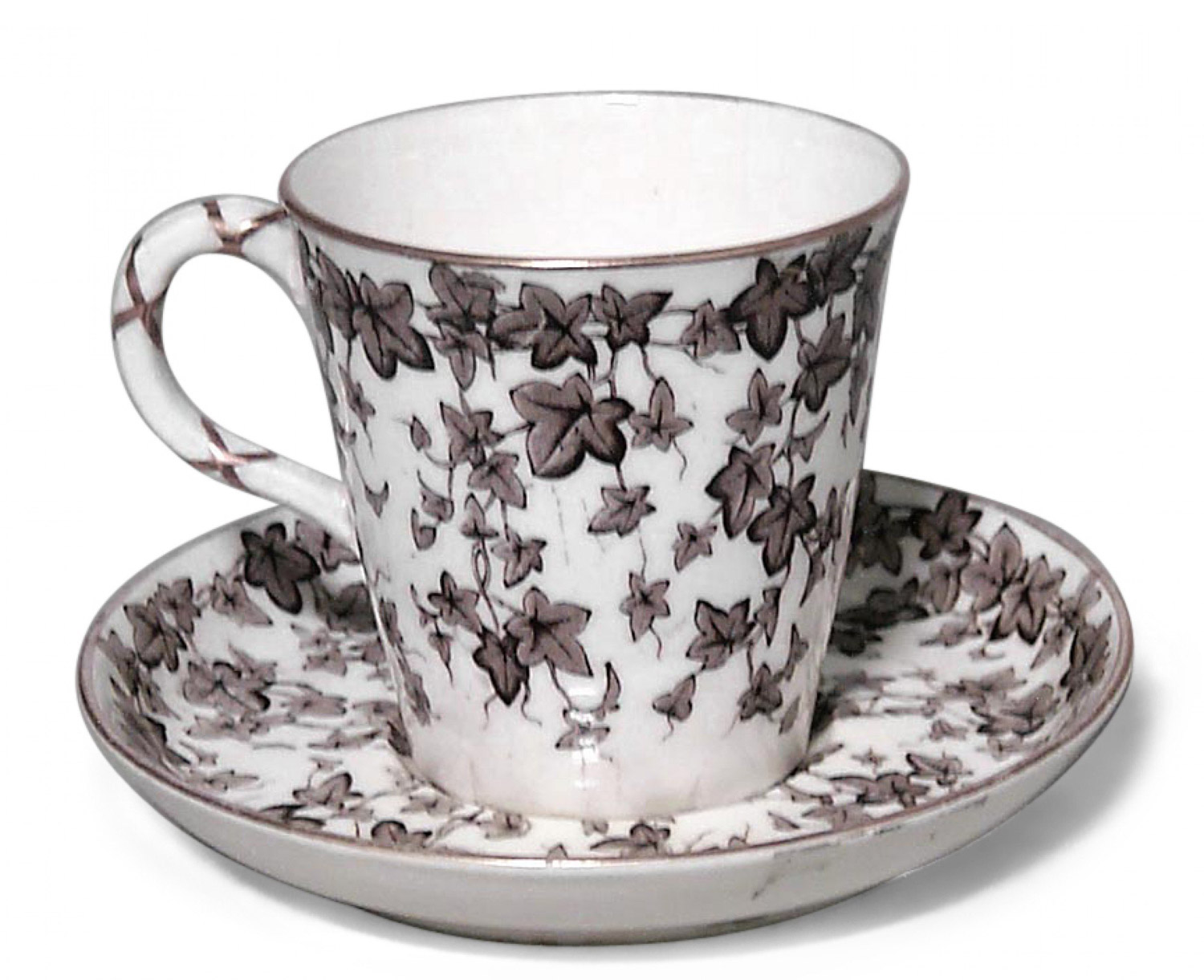 PAIR of English Victorian white and brown porcelain tea cups and saucers with floral and leaf decoration (Royal Worcester) (PRICED AS PAIR)