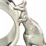 Pair of English (Australian) Victorian silver plate napkin rings with emu bird, kangaroo, and kingfisher bird (PRICED AS PAIR)