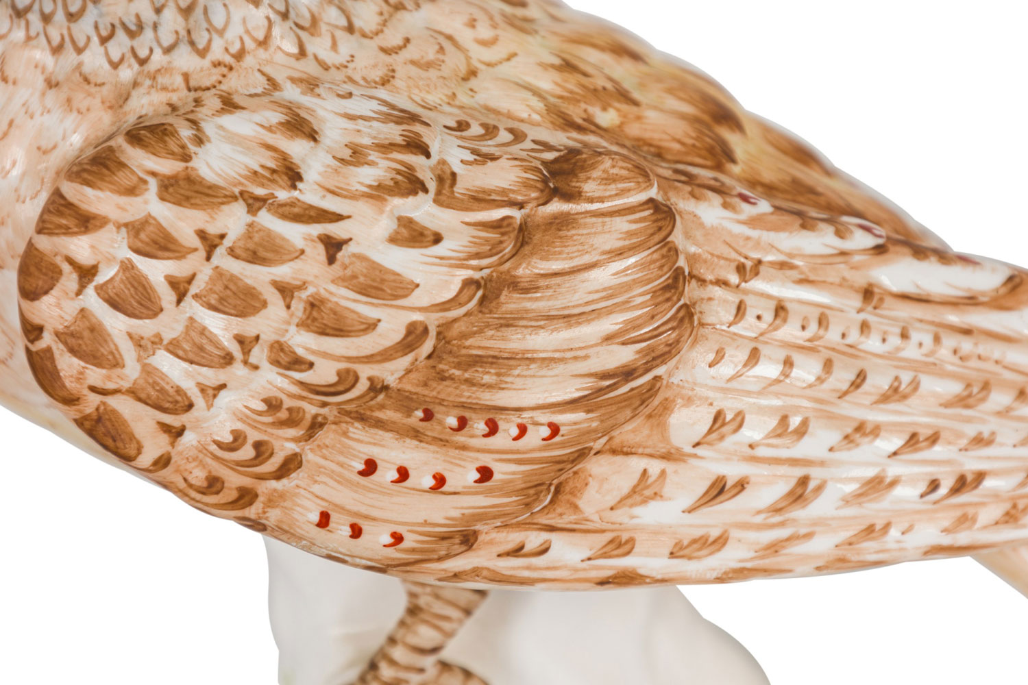 PAIR of English Victorian style small ceramic figures of hawk doves with brown feathers and its wings slightly spread out perched on a white rock formation (STAFFORDSHIRE and signed by artist) (PRICED AS PAIR).