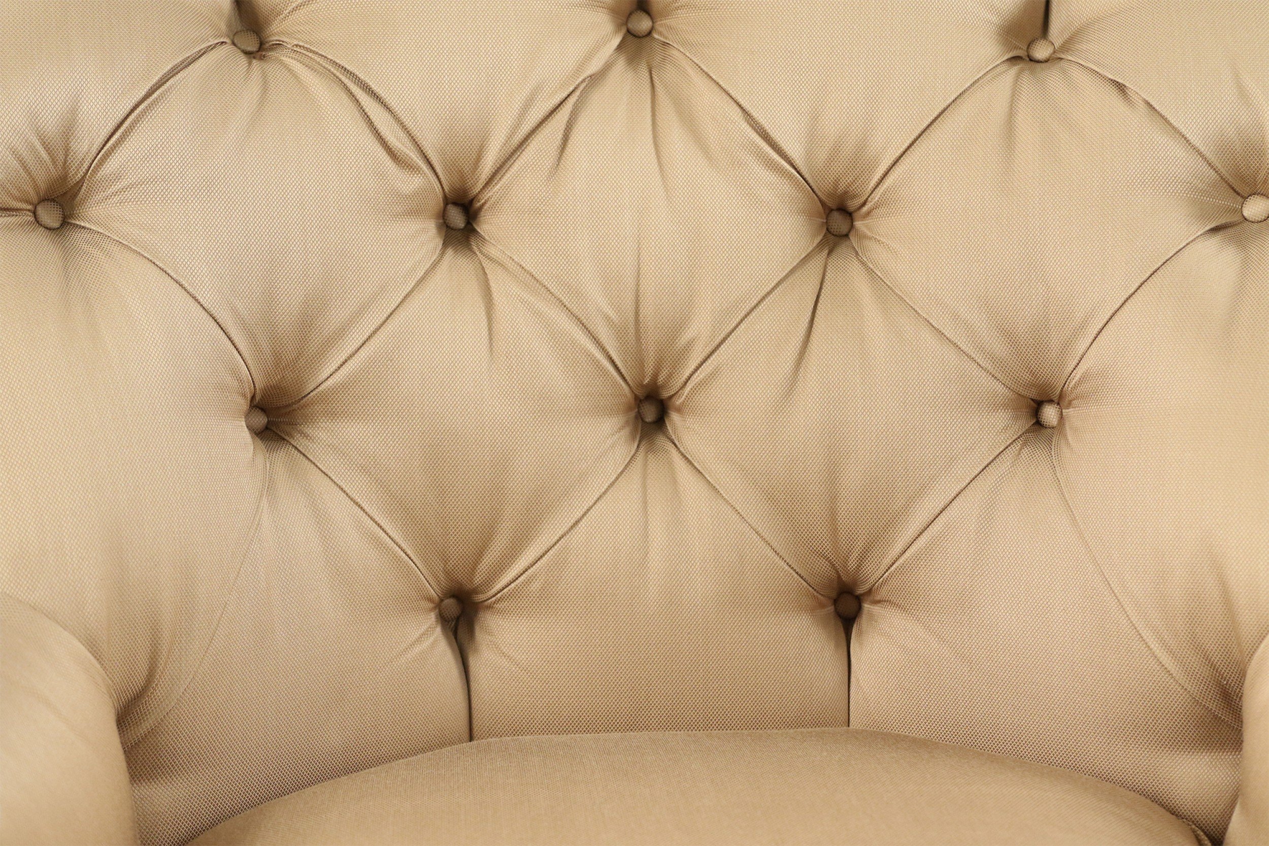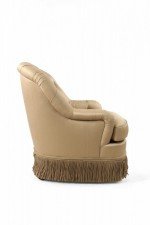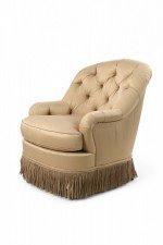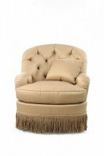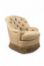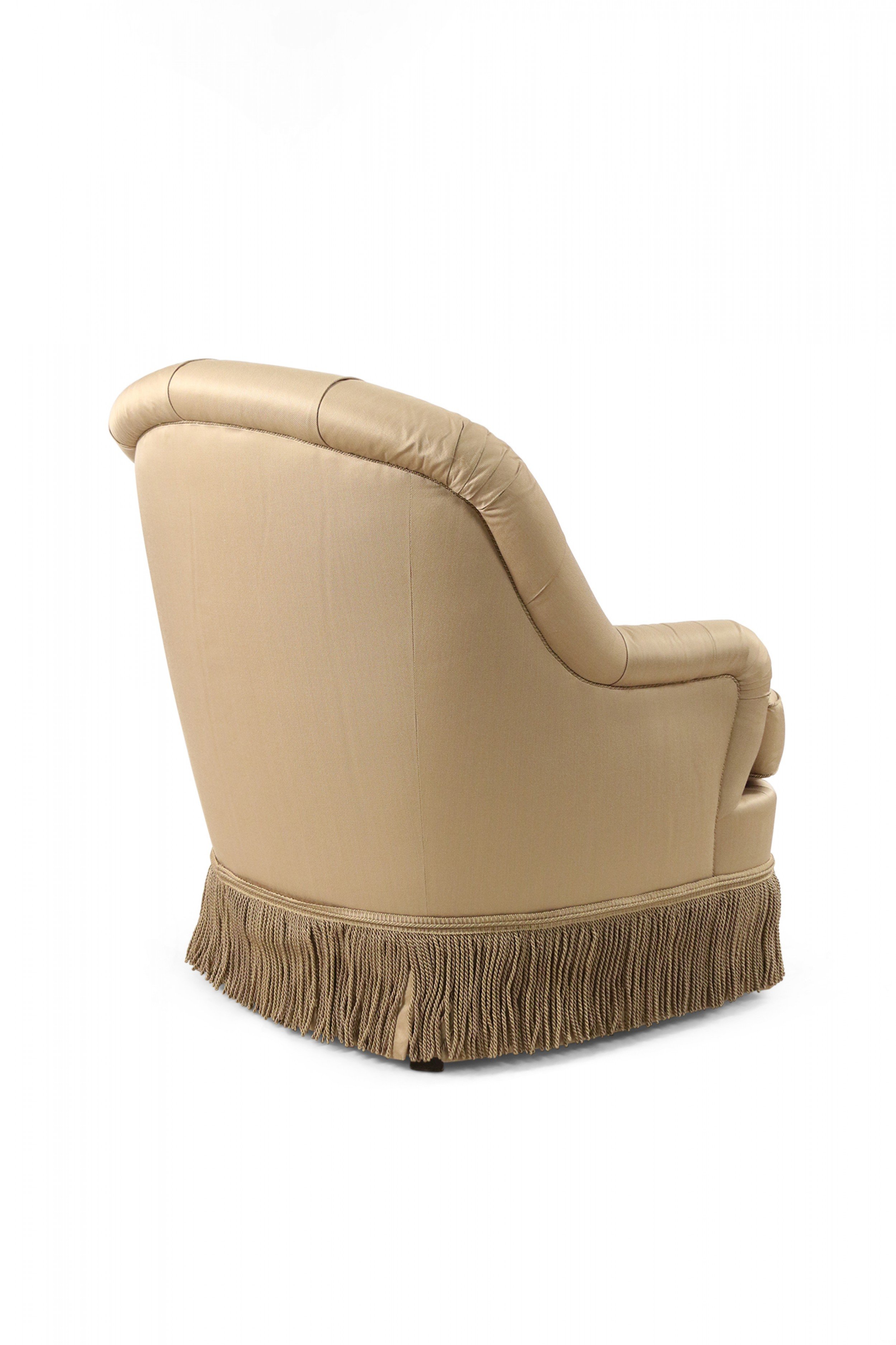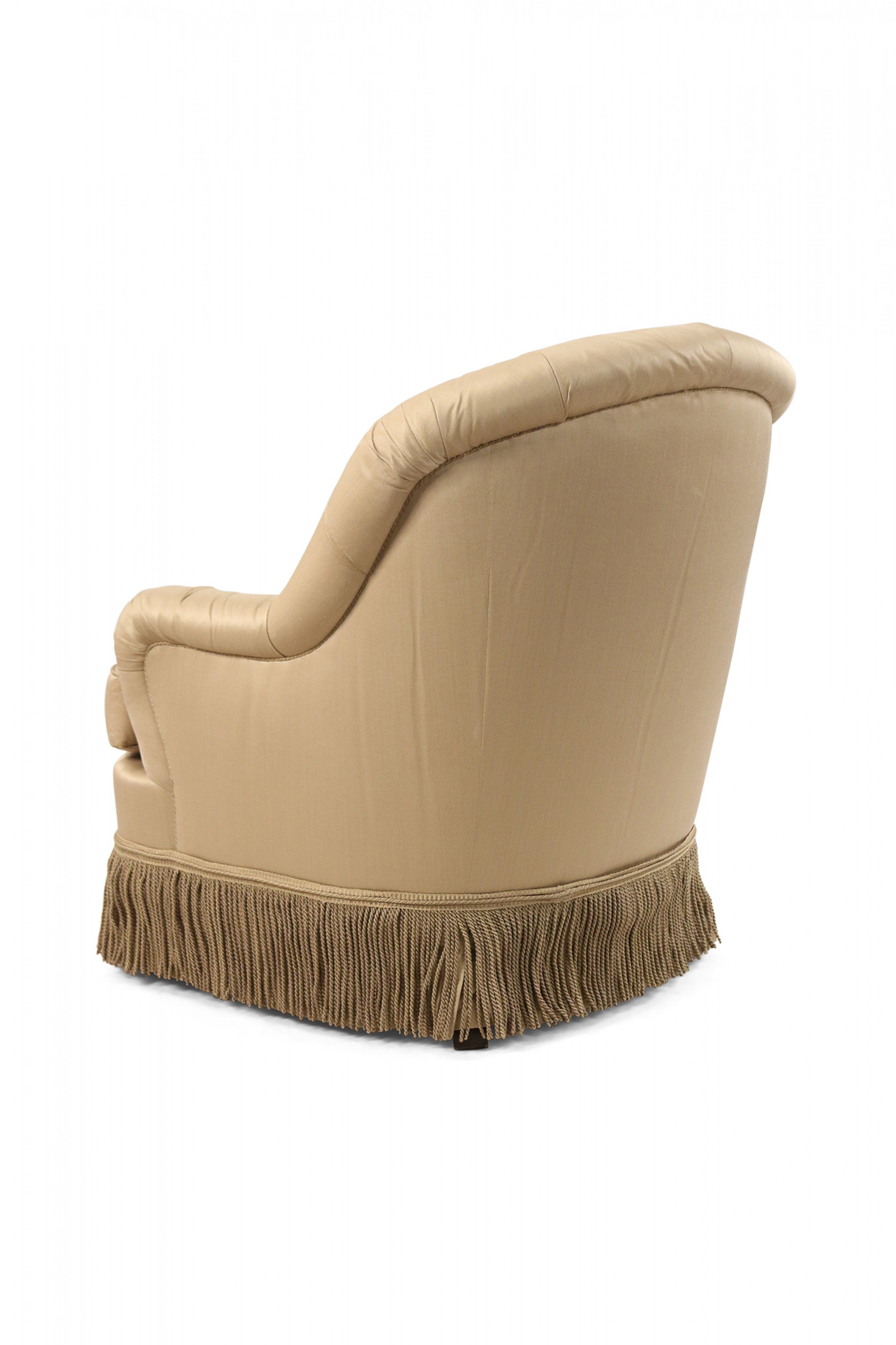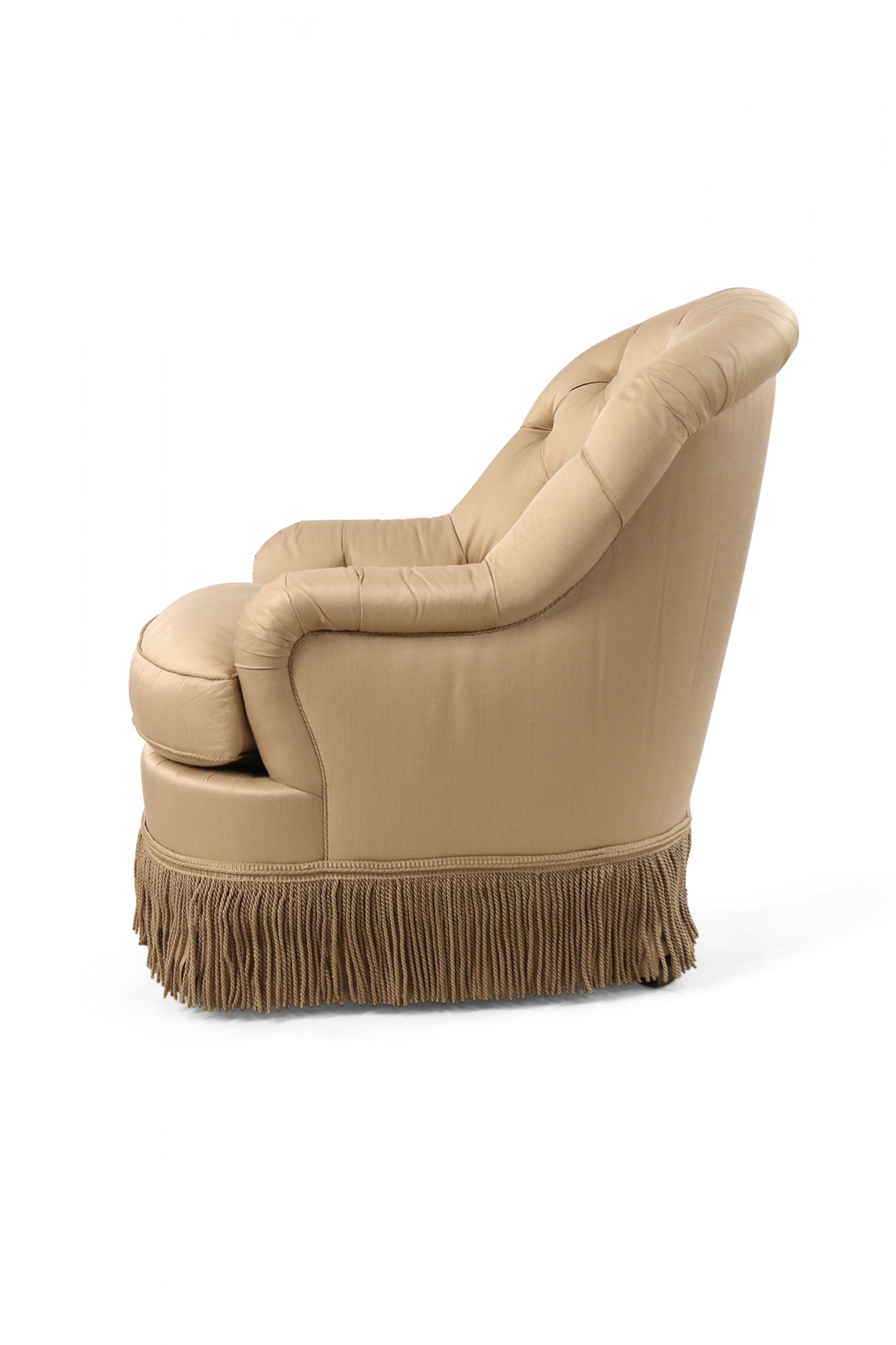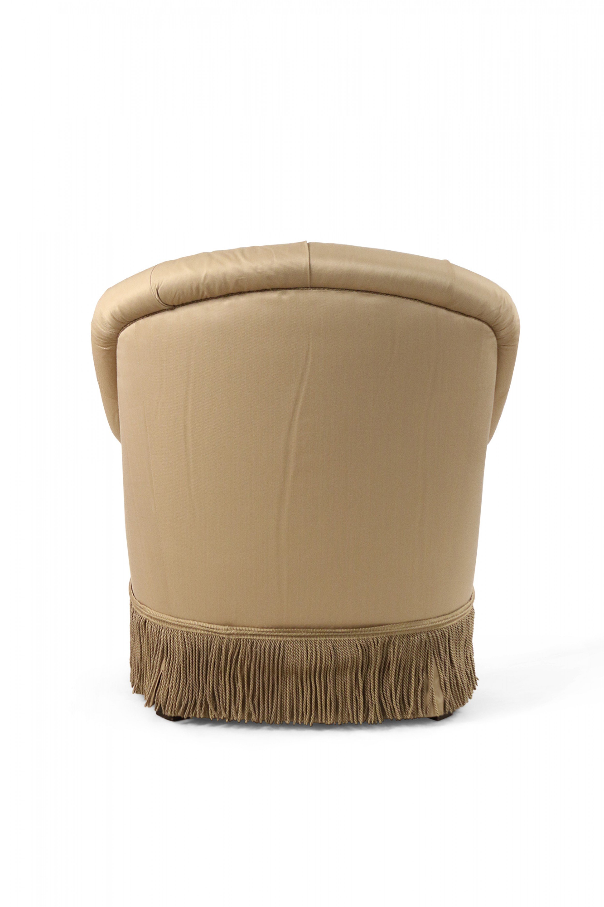English Victorian Style Beige Tufted Fringed Tub Armchair