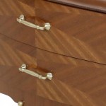 Style: Mid-Century Materials & Techniques: Brass, lacquered, maple, metal, mirror, wood Category: Tables, Bedroom Condition: Minor damage to veneer, wear consistent with age.