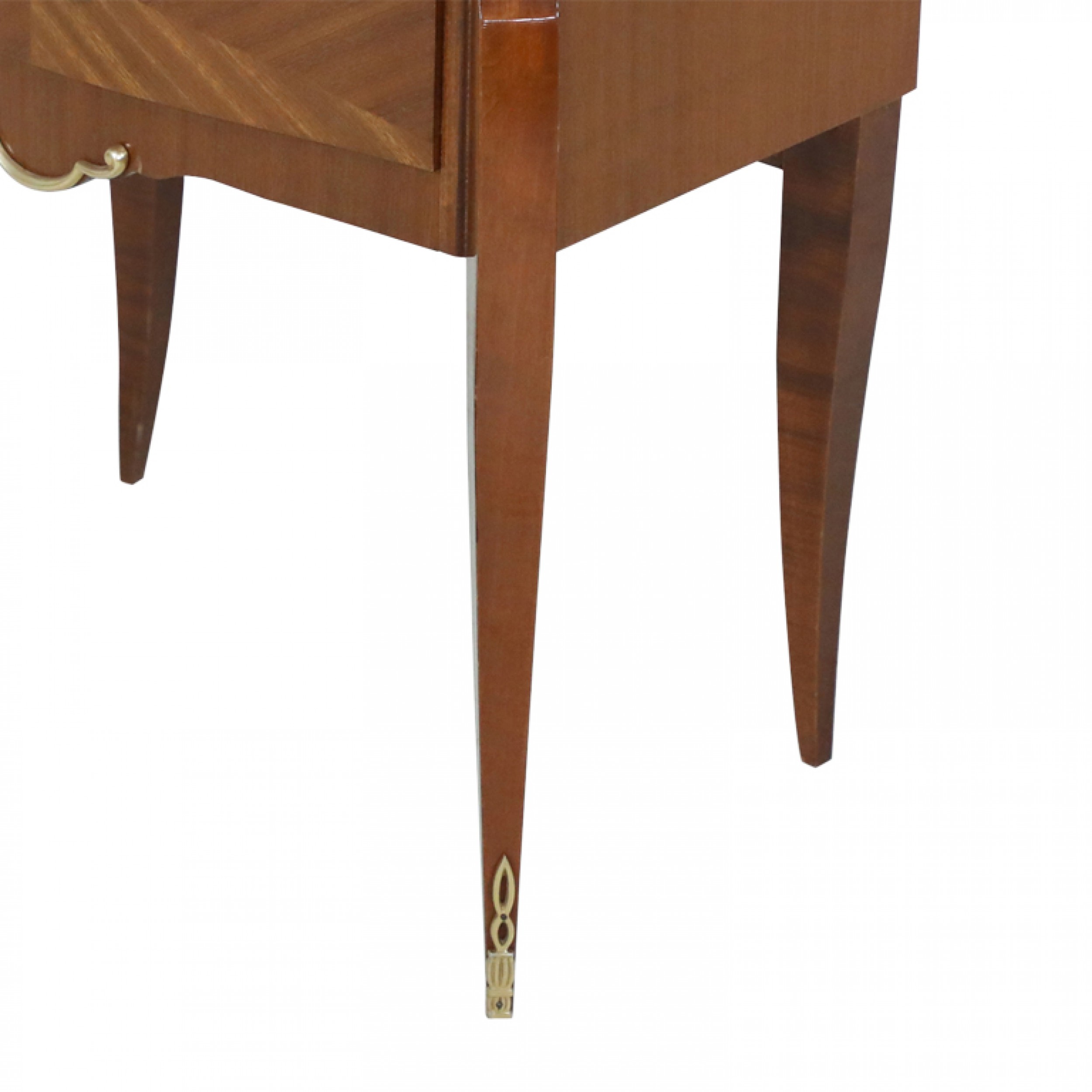 PAIR of French 1940s bedside table/commodes with maple veneer, burnished brass trim, drawer pulls and sabots with inset mirror tops (PRICED AS PAIR)
