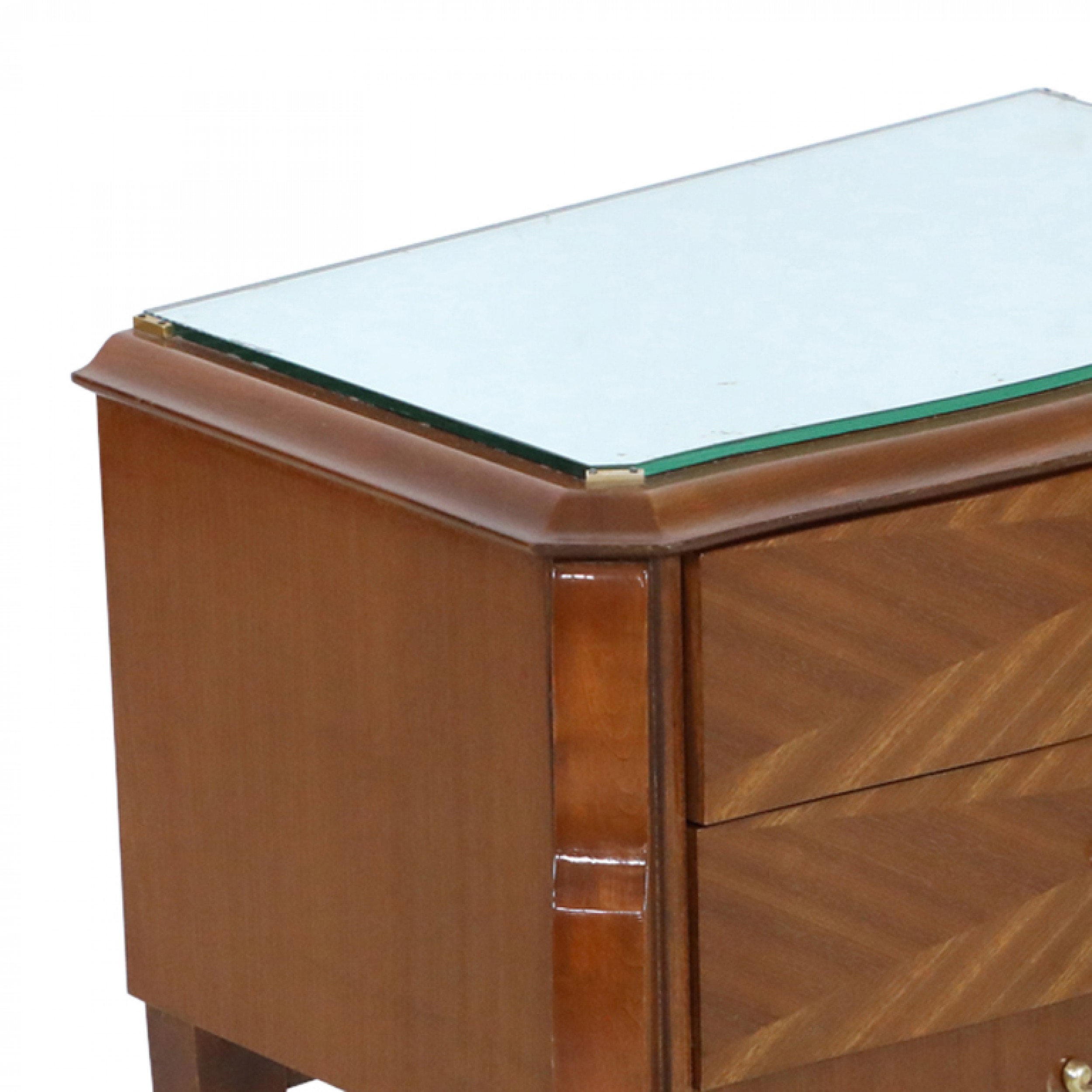 Pair of French Art Deco Maple Veneer 2-Drawer Commodes With Mirror Tops