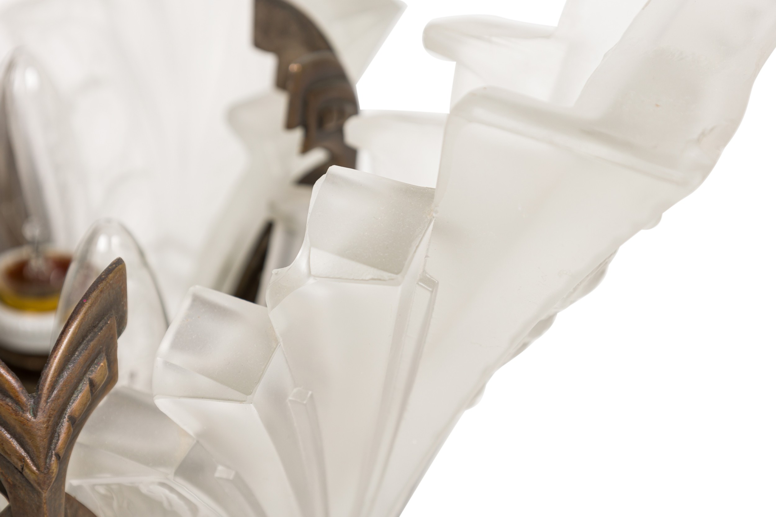 Pair of French Art Deco Frosted Glass Geometric Chandelier