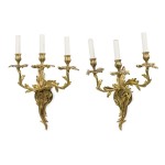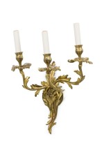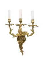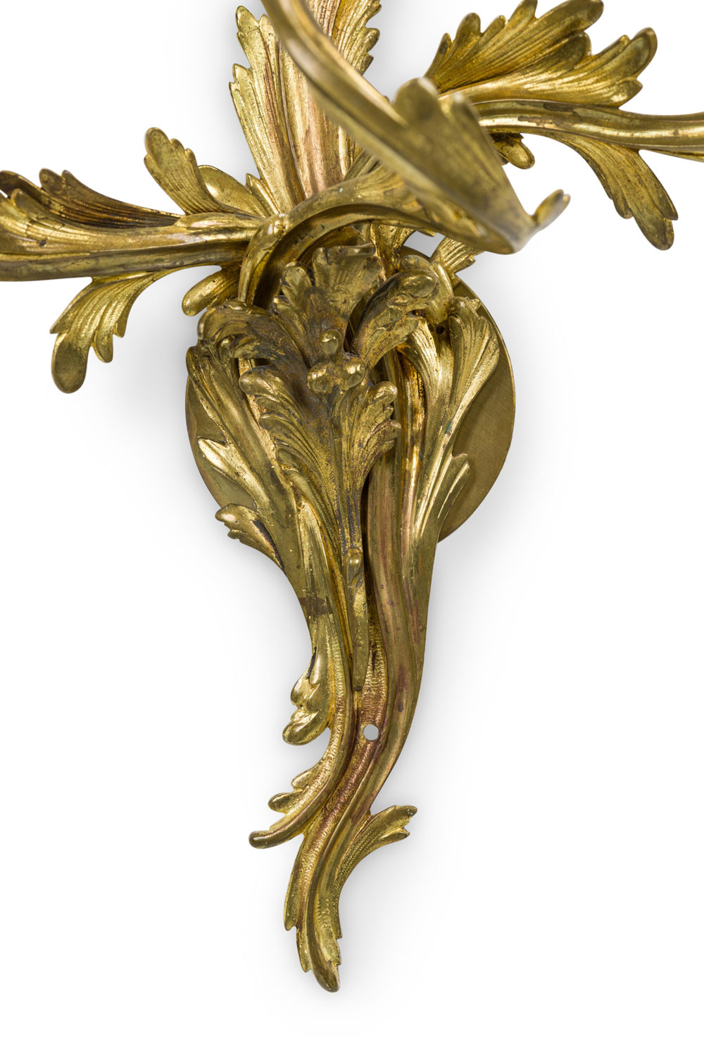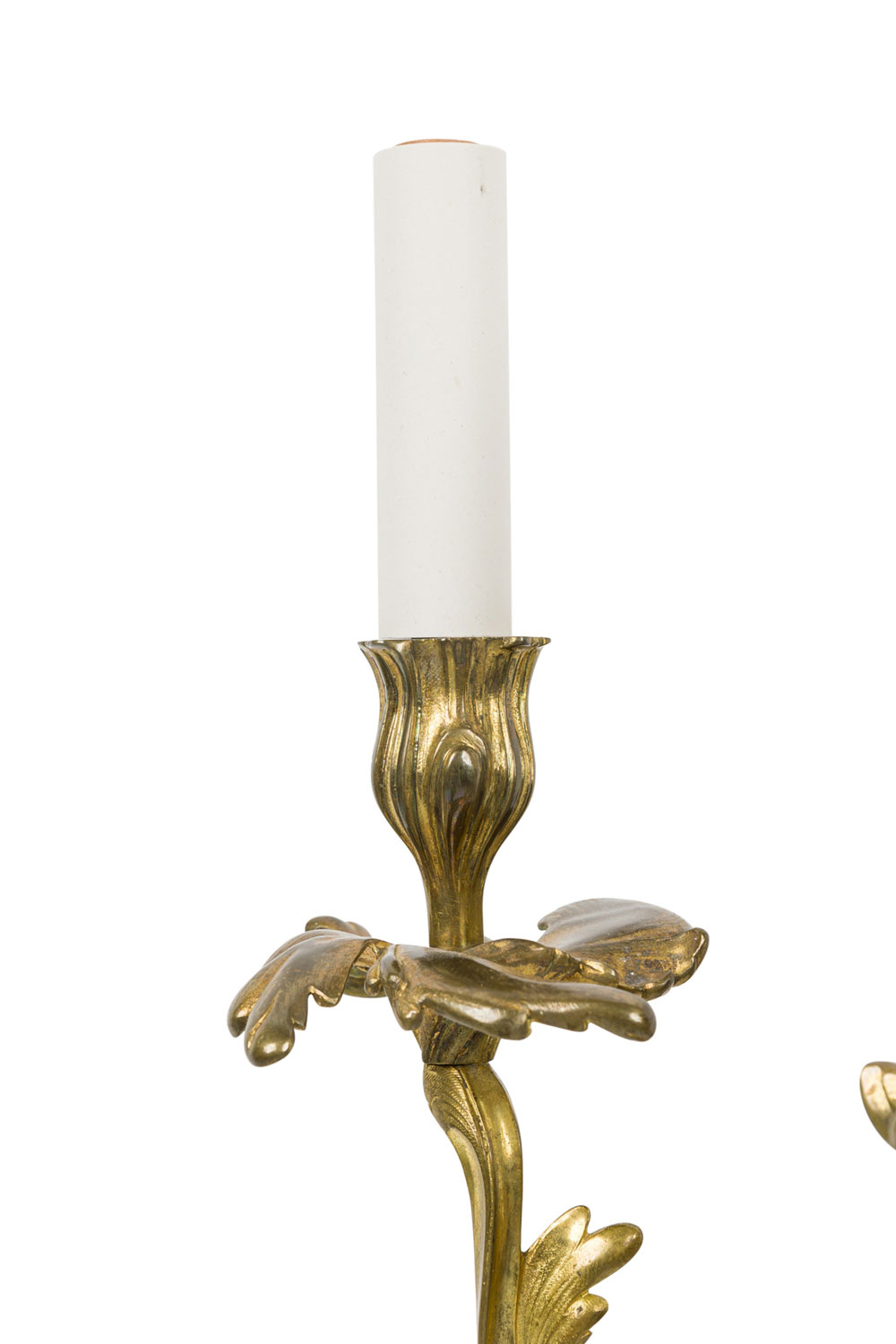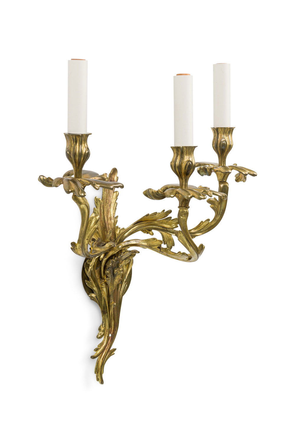 PAIR of French Art Nouveau style brass wall sconces with three foliated arms (PRICED AS PAIR)