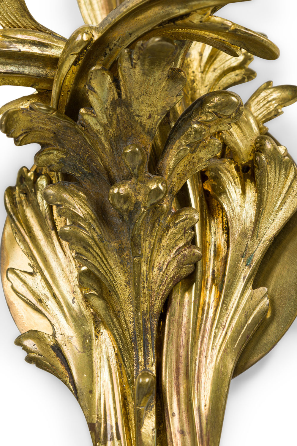PAIR of French Art Nouveau style brass wall sconces with three foliated arms (PRICED AS PAIR).