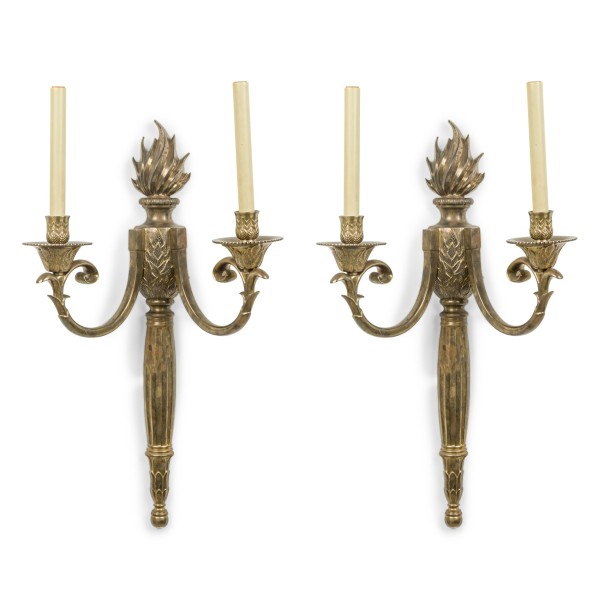 Pair of French Art Nouveau 3 Armed Brass Wall Sconces