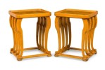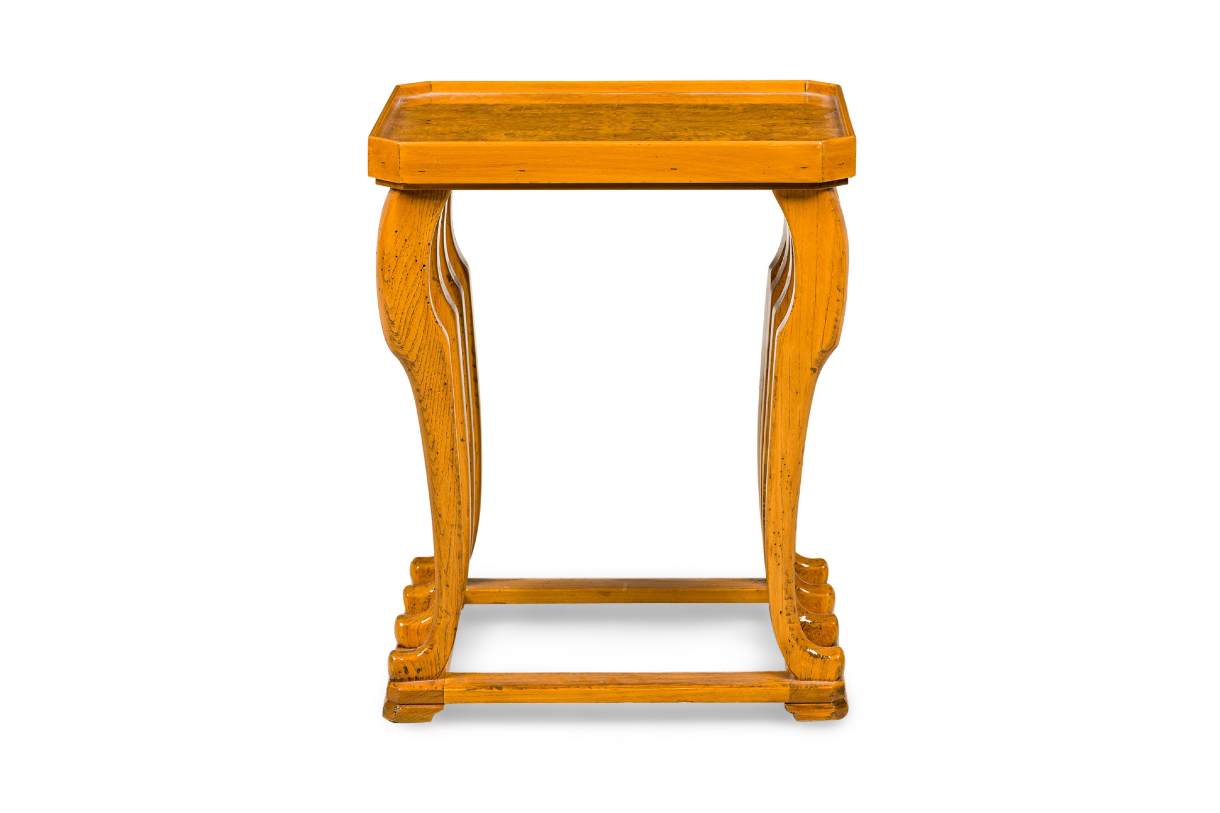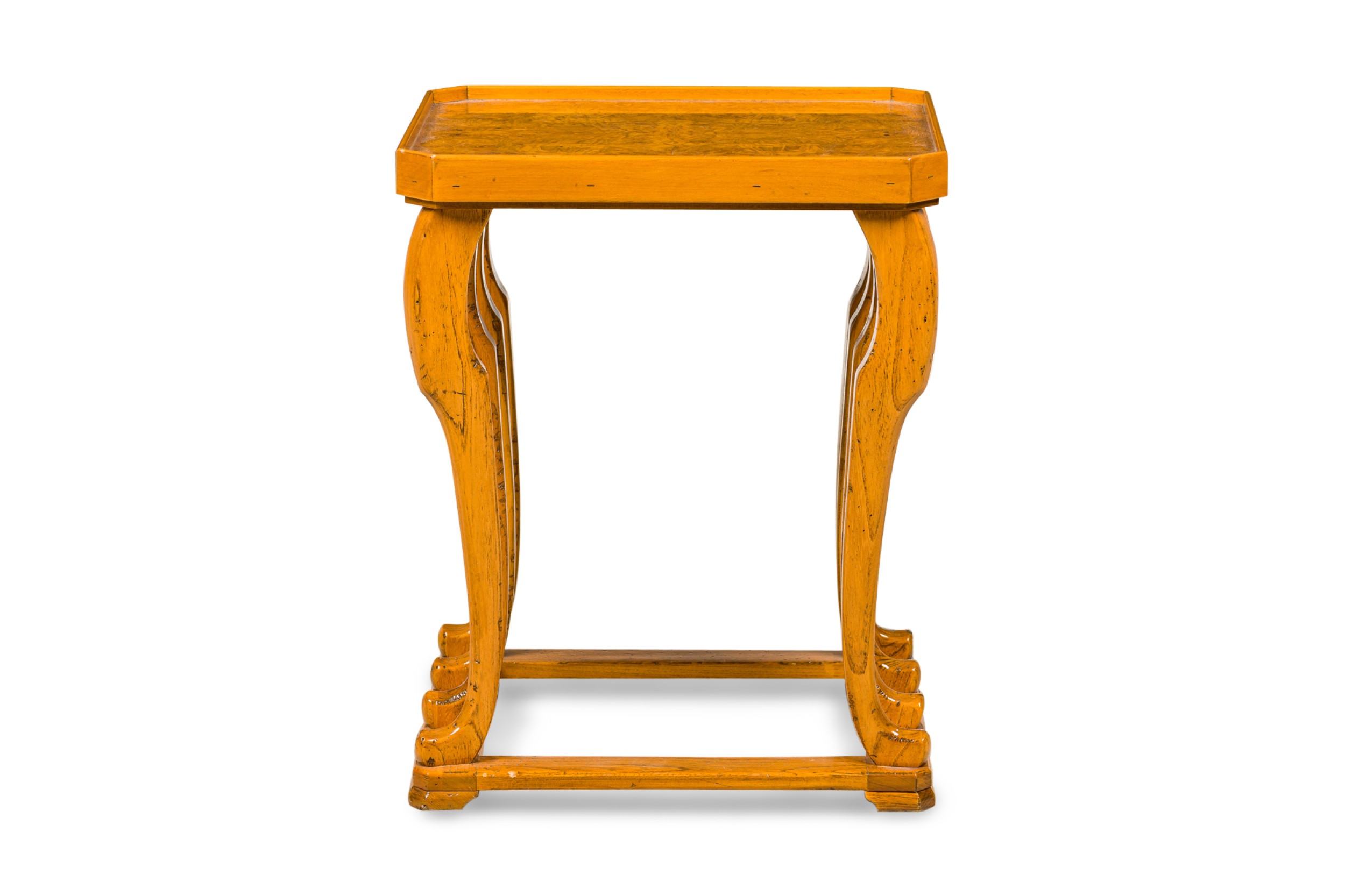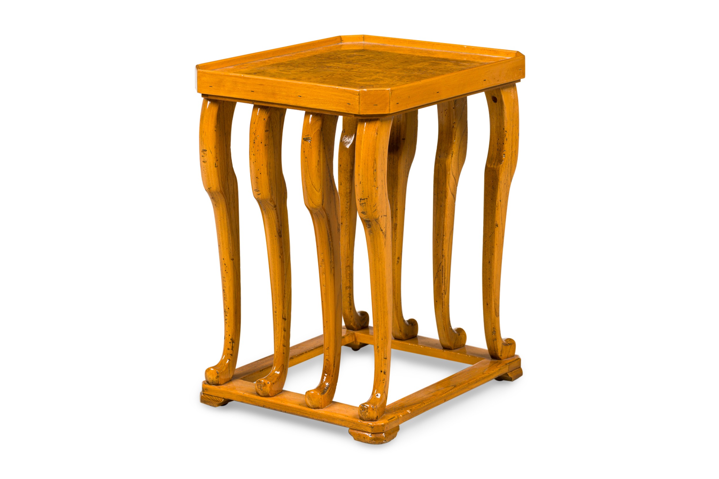 Pair of French Burled Walnut and Fruitwood Tables.