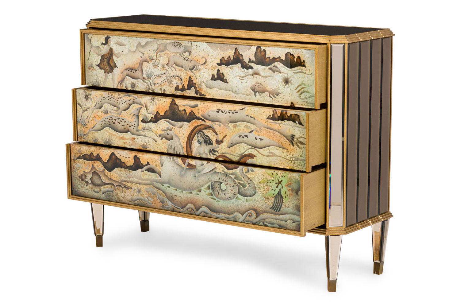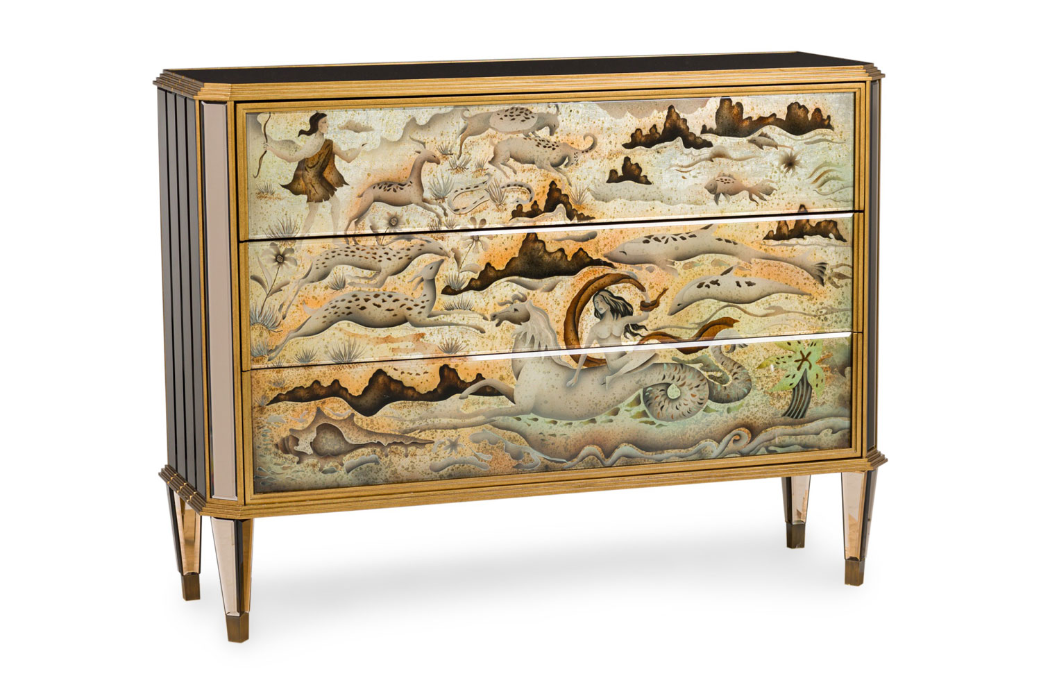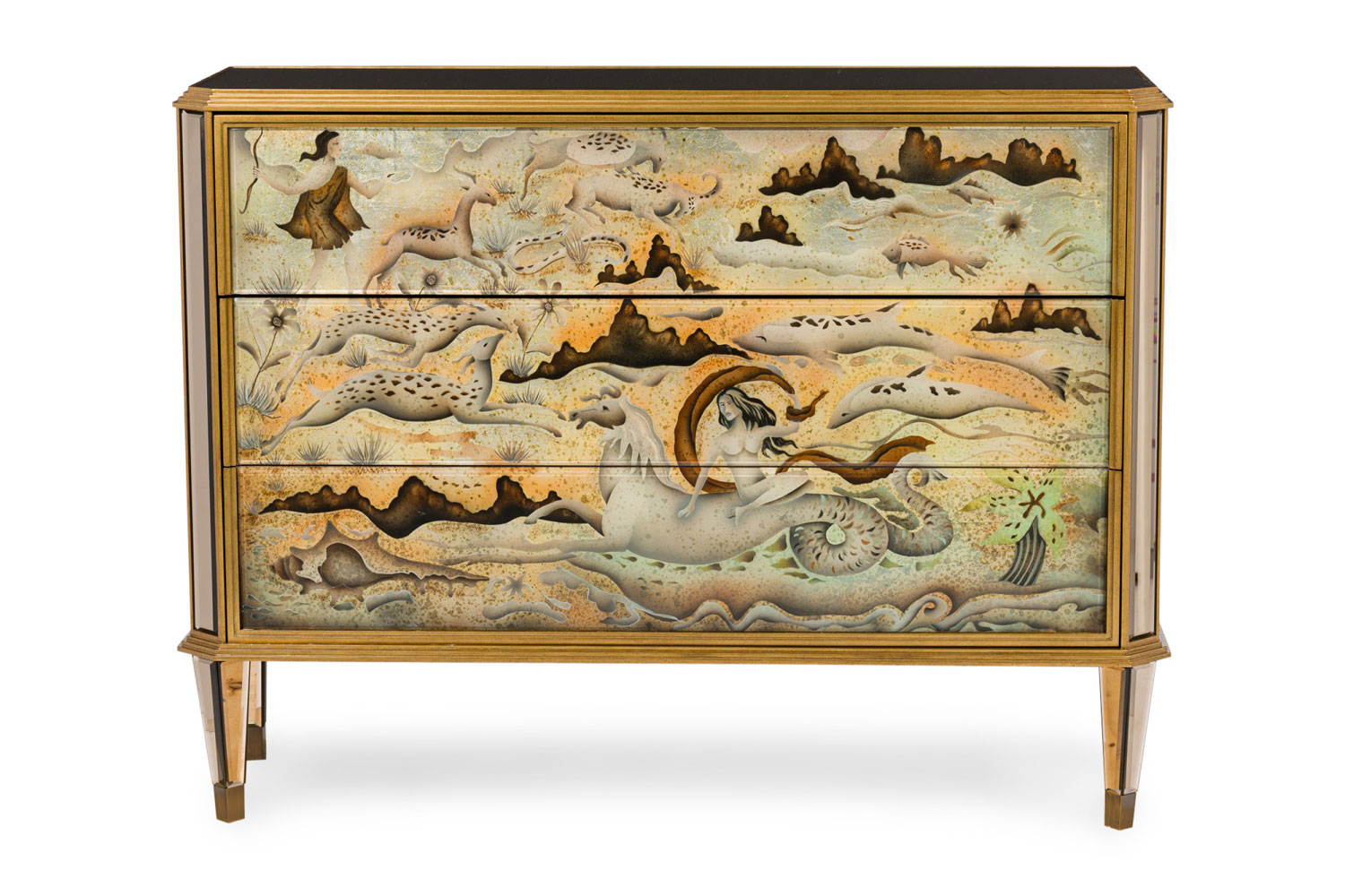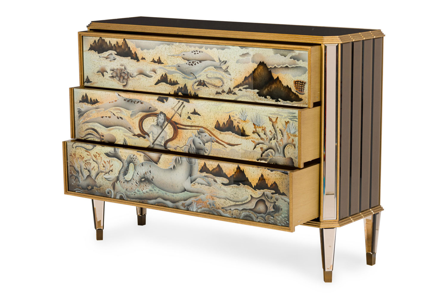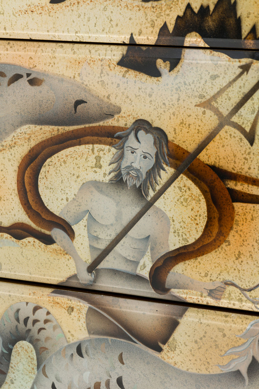 Pair of Jean De Merry French Contemporary Poseidon and Diana Hand Painted Commodes