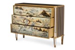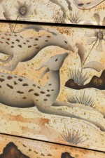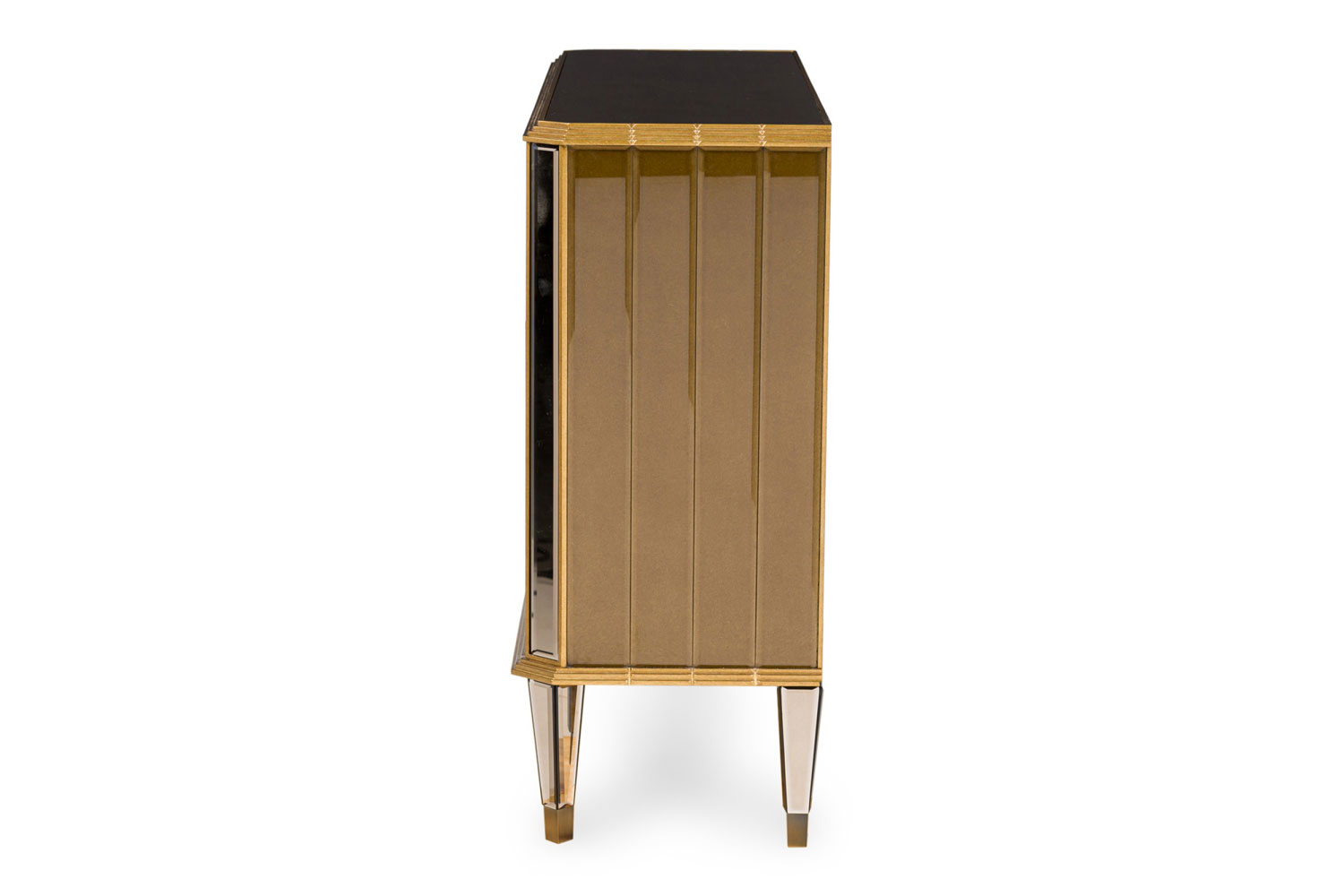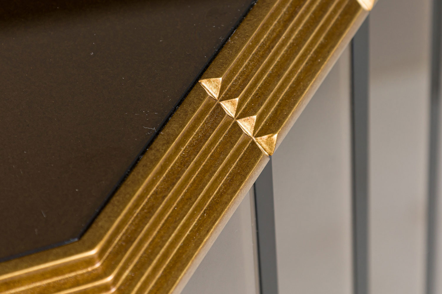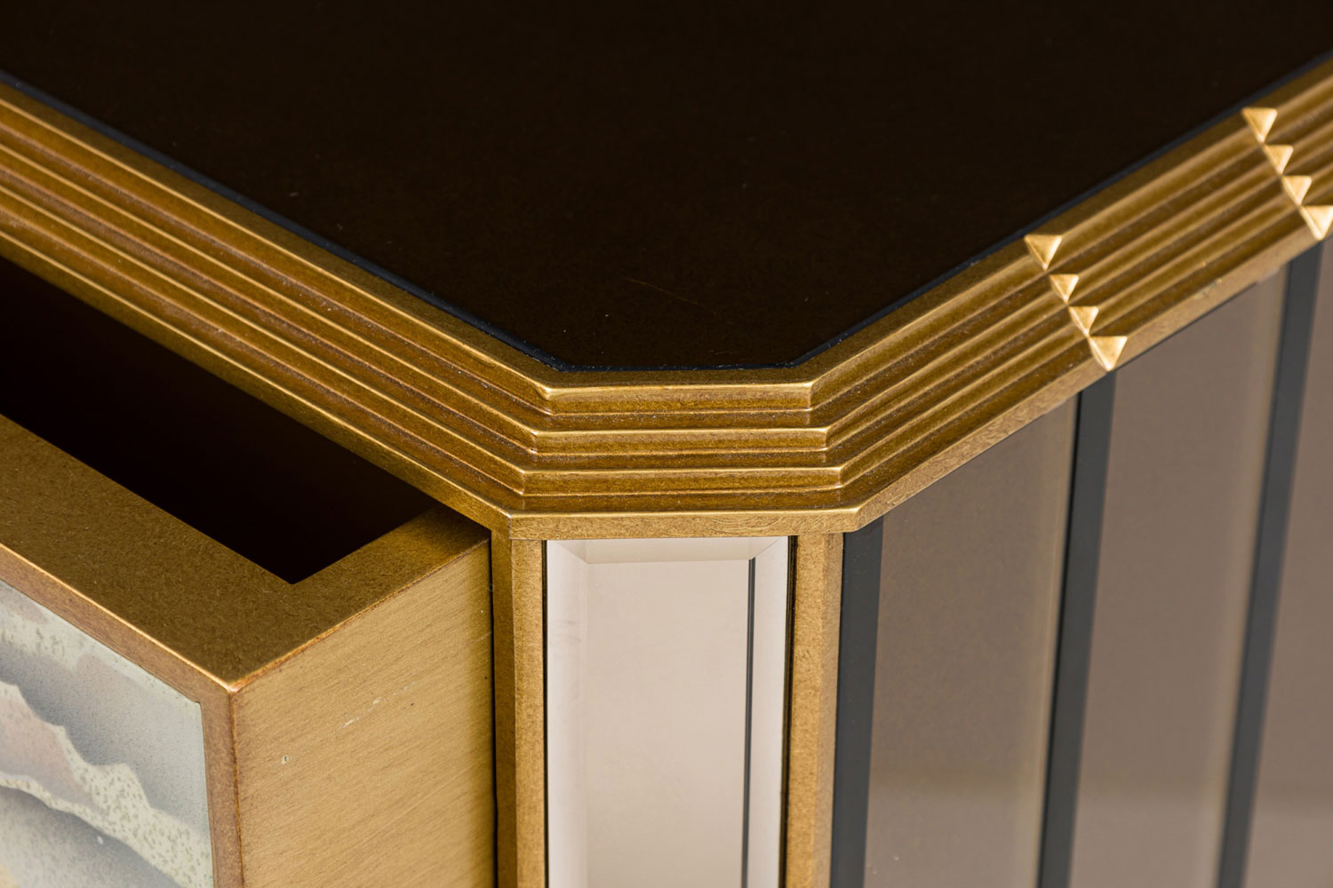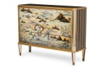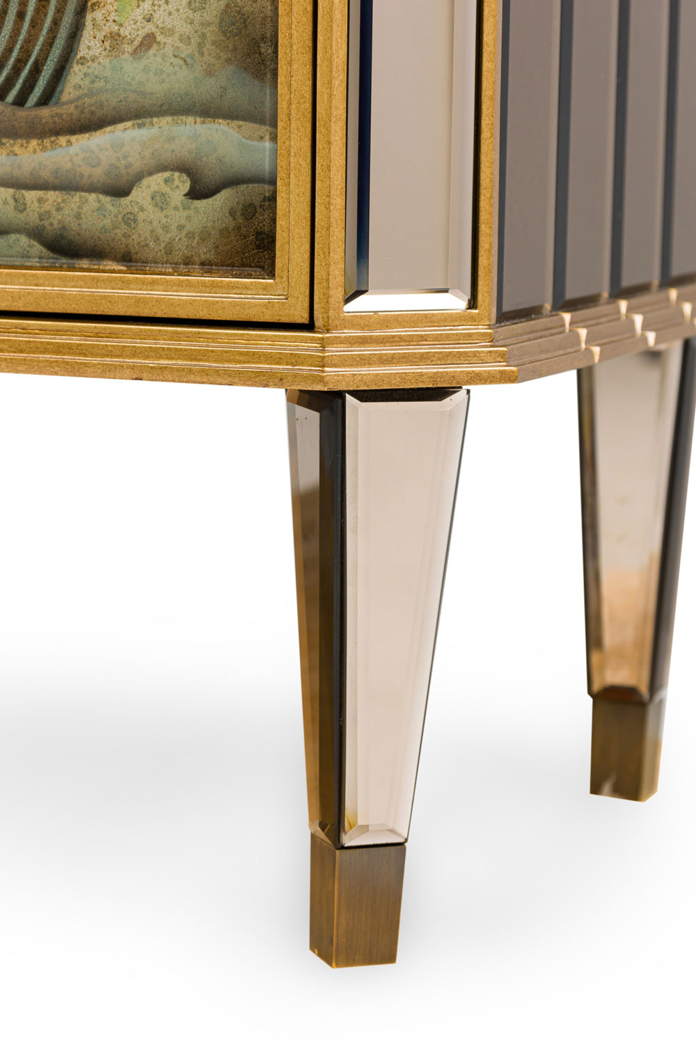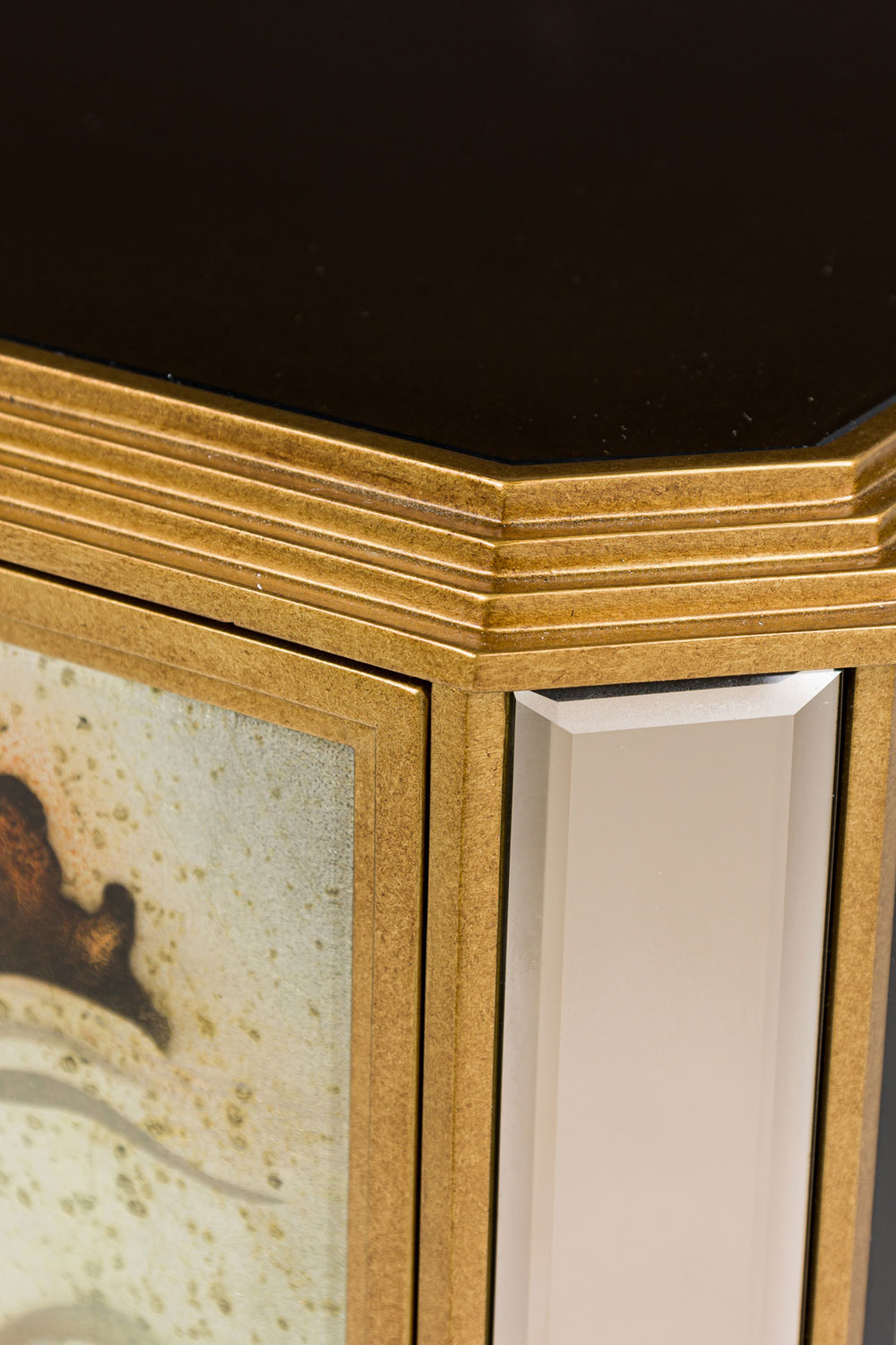 Style: Contemporary/Post-War Design Materials & Techniques: Bronze, eglomise, mirror Category: Tables, Cabinets & Case Goods, Bedroom, Dining Room