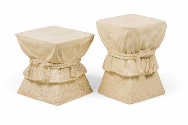 Pair of French Drapery and Rope Form Occasional Pedestal Tables (manner of Alberto Pinto)