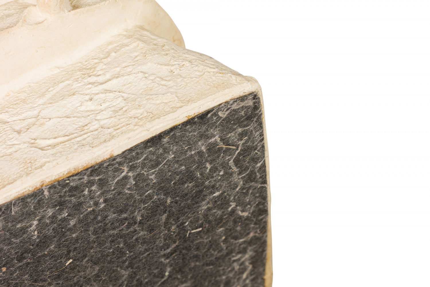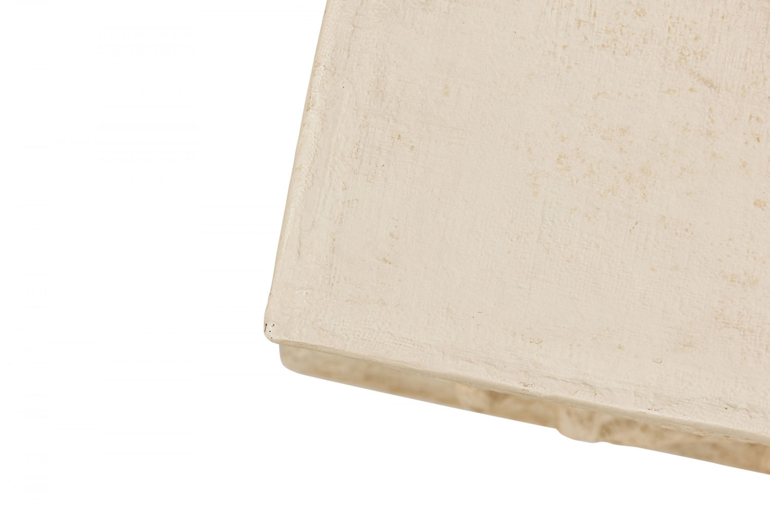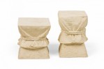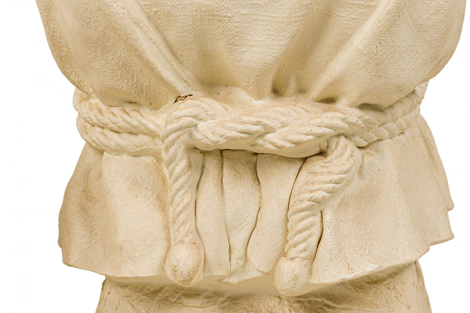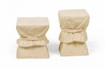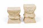 PAIR of Contemporary French (circa 1980) similar inverted pyramid form drapery and rope occasional pedestal tables made of white gesso and resin-infused burlap and jute over wood forms (manner of ALBERTO PINTO).