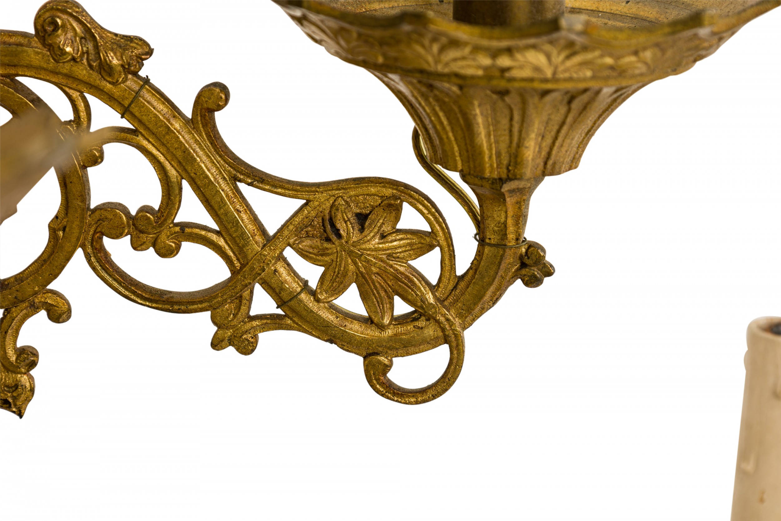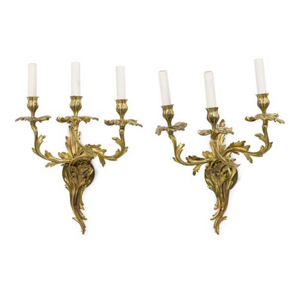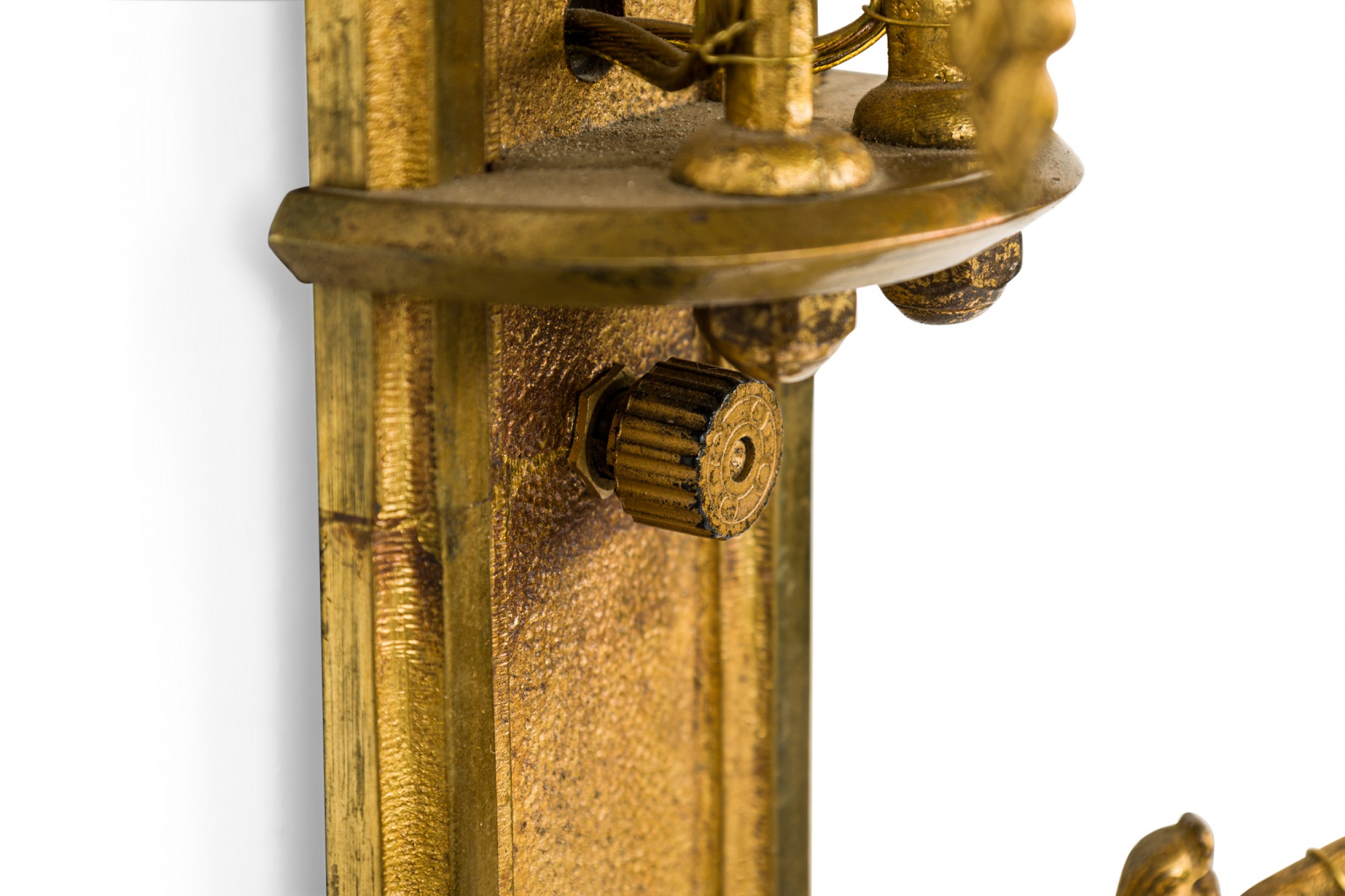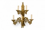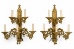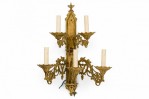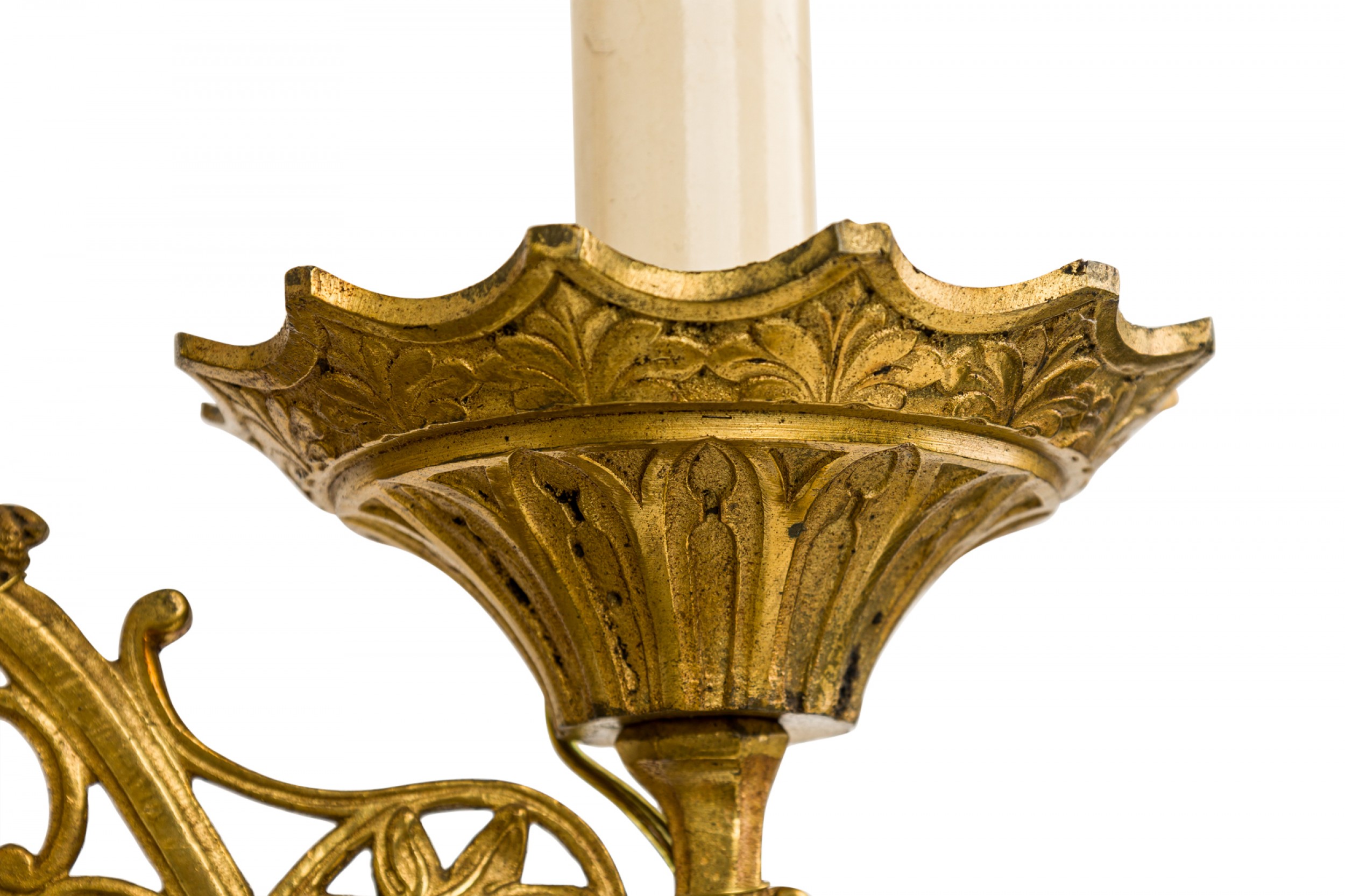 PAIR of French Gothic stye gilt bronze 2-tier 5 arm wall sconces featuring floral and foliage motifs