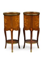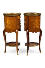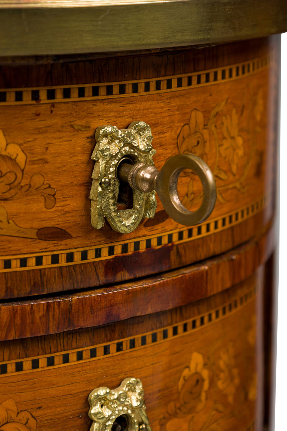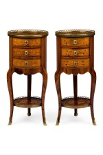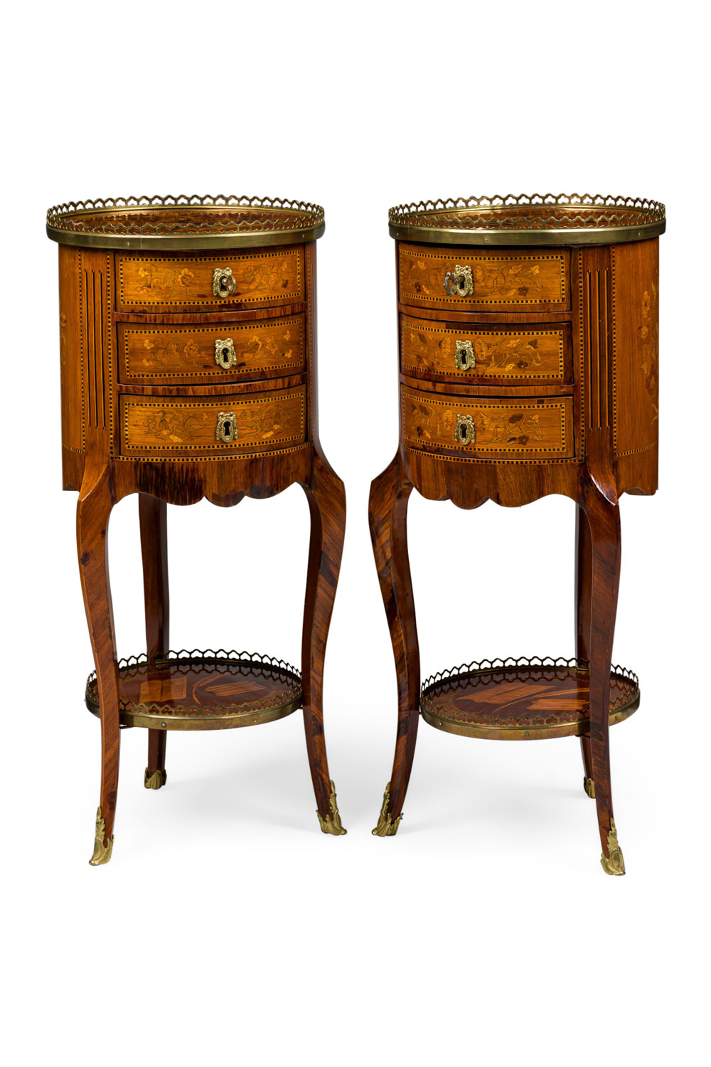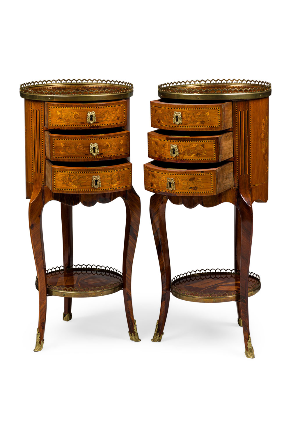 Pair of French Louis XV Round 3 Drawer Bedside Table