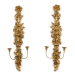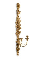 PAIR of French Louis XV style (19/20th Century) giltwood floral carved narrow wall sconce with 3 candle holders (PRICED AS PAIR).