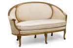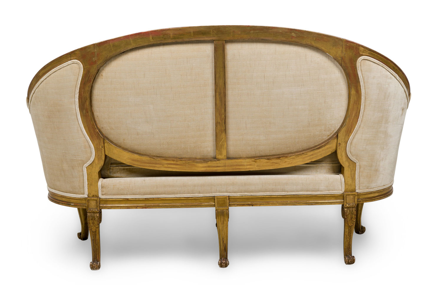 Pair of French Louis XVI Giltwood Beige Upholstered Canapes / Settees