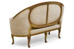 PAIR of French Louis XVI (18th Century) canapes / settees with a curved and carved giltwood frame with a circular panel in the backrest, which curves forward to create the settee's arms, upholstered in a beige ribbed velvet, and resting on five carved cabriole legs with acanthus leaf decorations (PRICED AS PAIR)