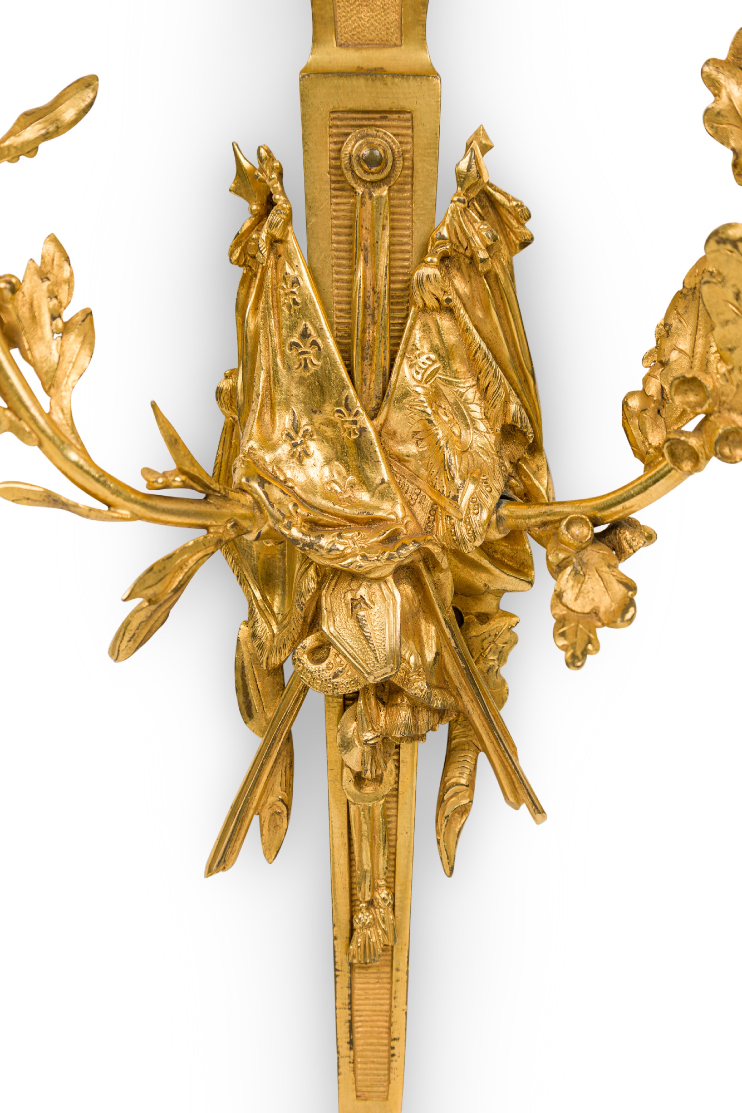 Pair of French Louis XVI style Bronze Wall Sconce with Flags
