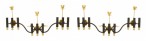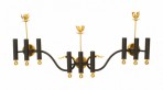 PAIR of French Mid-Century (1950's) iron & gilt brass nine light sconces consisting of three groups of three lights finished with brass ball base & single candlelight top and a foliate center. (PRICED AS PAIR)