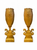 Pair of French Victorian Fugere Gilt Bronze Vases