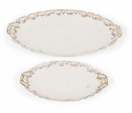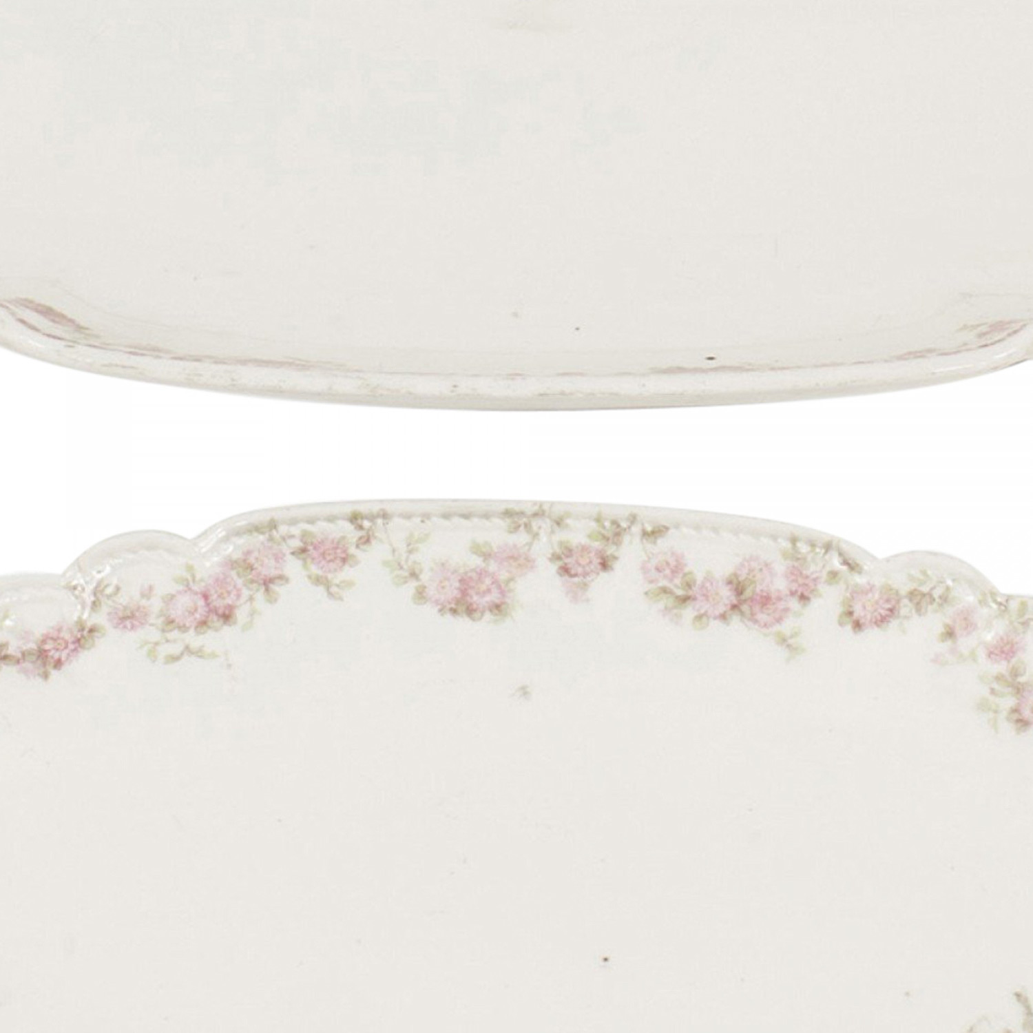 Pair of French Victorian white porcelain oval serving platters with pink and green floral border marked "France" (PRICED AS PAIR).