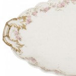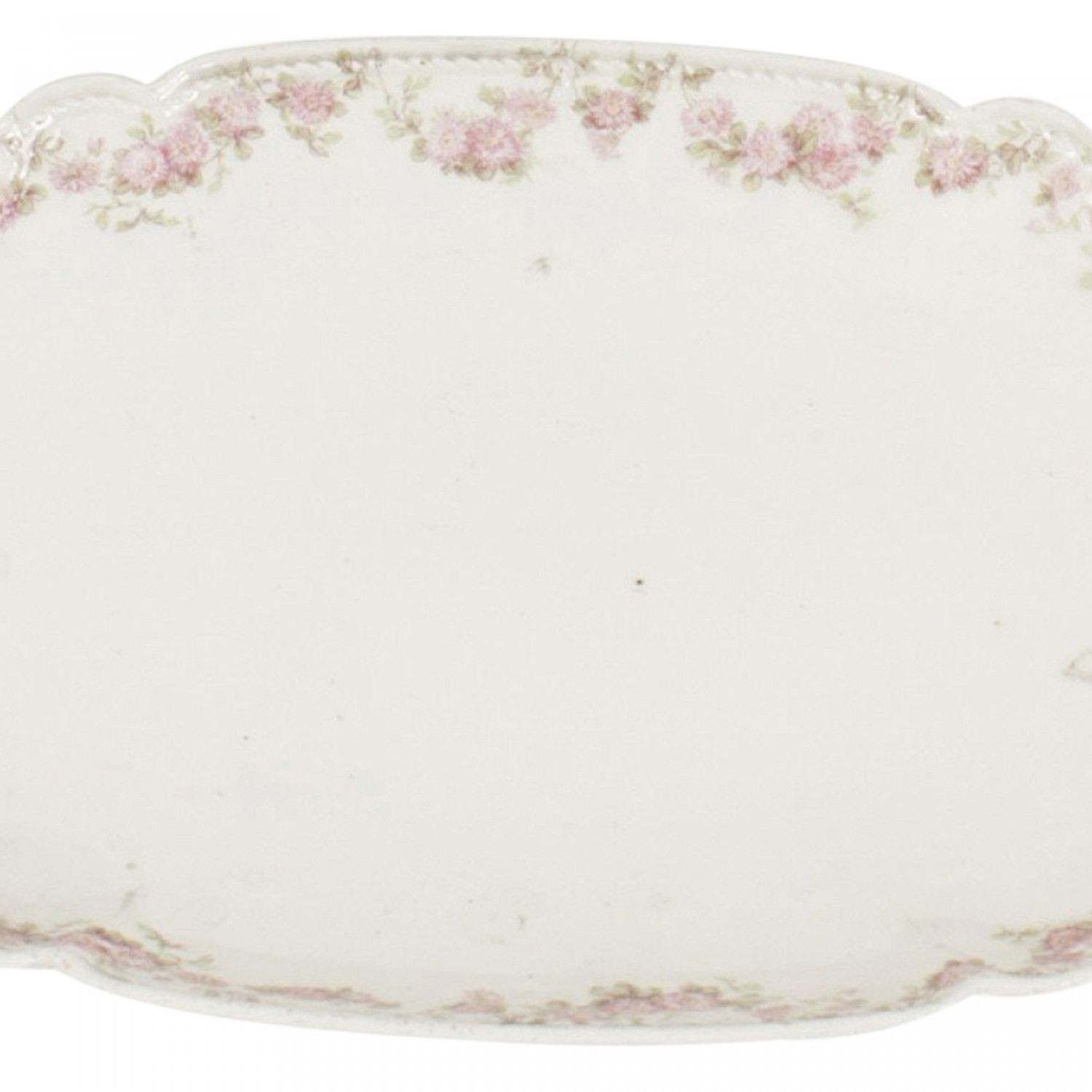 Pair of French Victorian white porcelain oval serving platters with pink and green floral border marked "France" (PRICED AS PAIR)