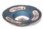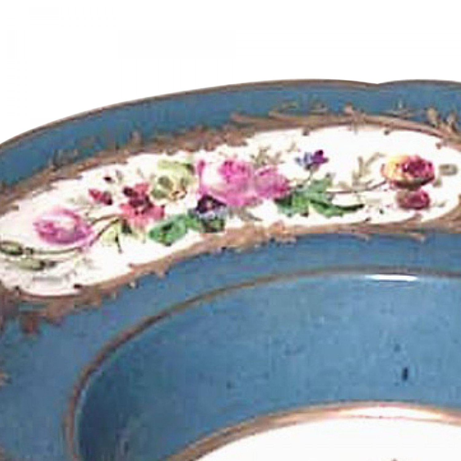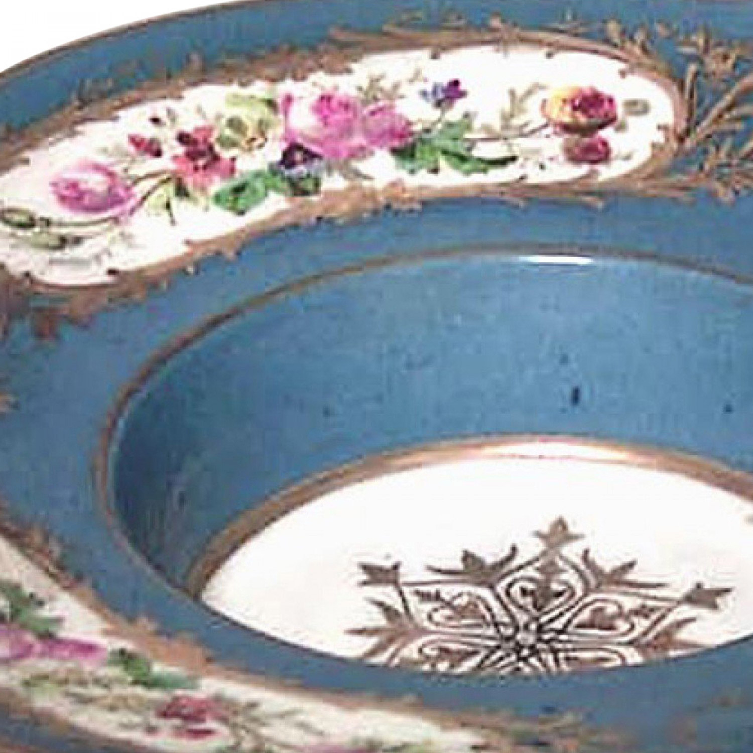 PAIR of French Victorian blue & white Sevres porcelain bowls with shaped edge and 3 floral panels with gold trim (PRICED AS PAIR)