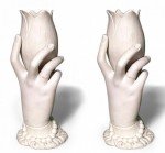 PAIR of French Victorian parian porcelain vases of hand holding nautilus shaped shell (PRICED AS PAIR).