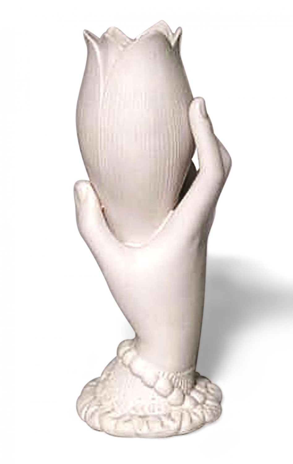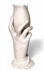 PAIR of French Victorian parian porcelain vases of hand holding nautilus shaped shell (PRICED AS PAIR)