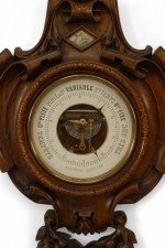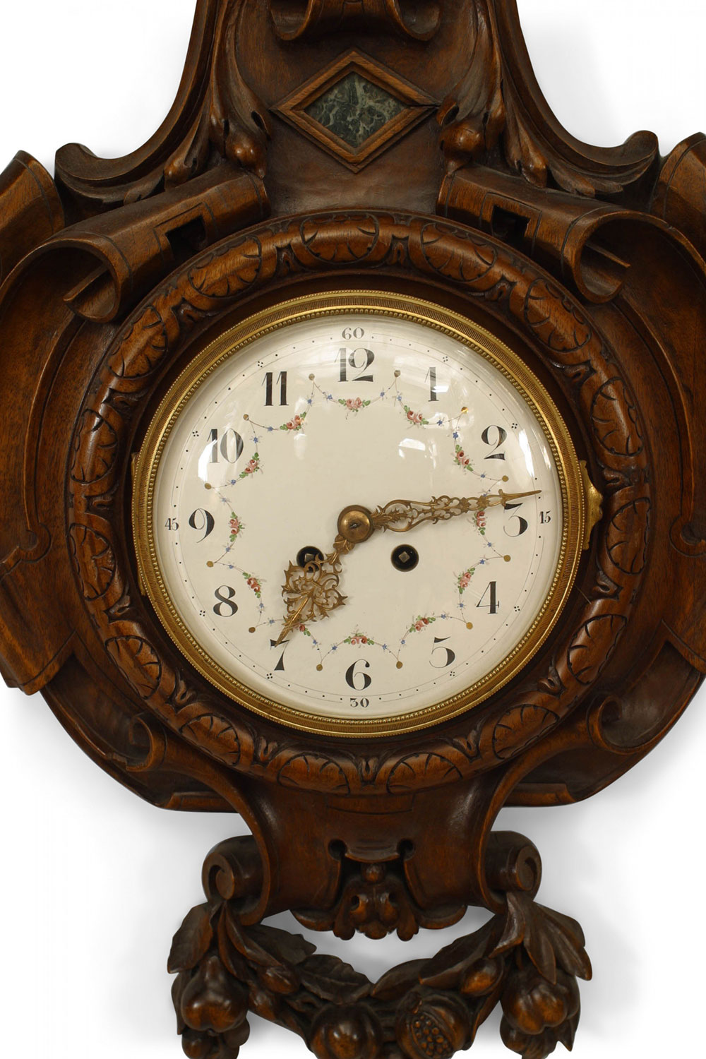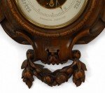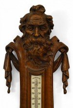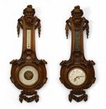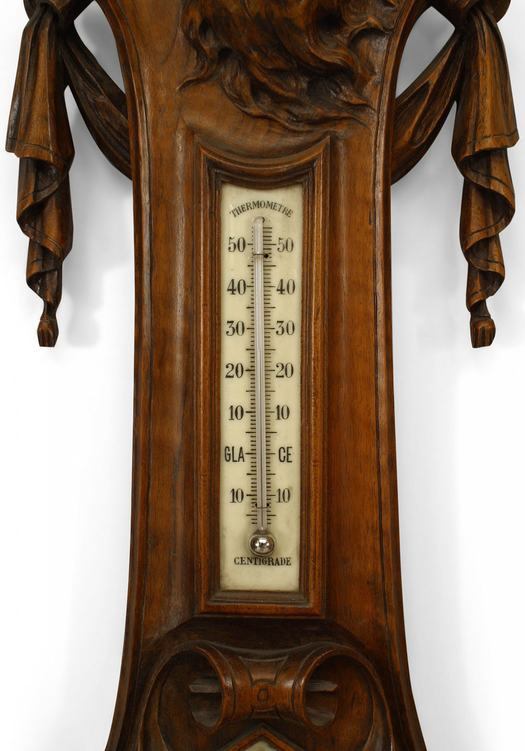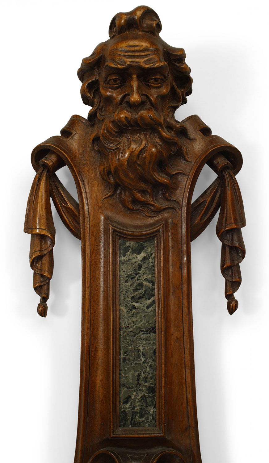 PAIR of French (Mid-19th Century) clock and barometer inset into carved walnut pendant frames. Crowned bearded male heads with decorative swags, scrolls, and floral wreaths. (PRICED AS PAIR) (Not working)