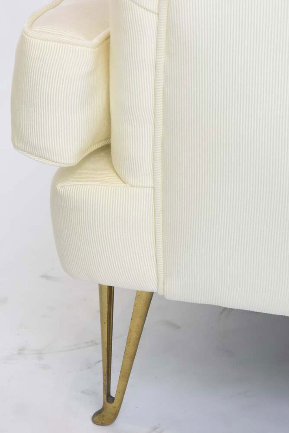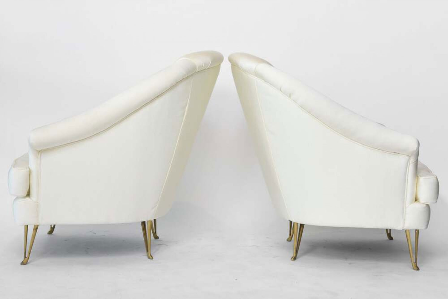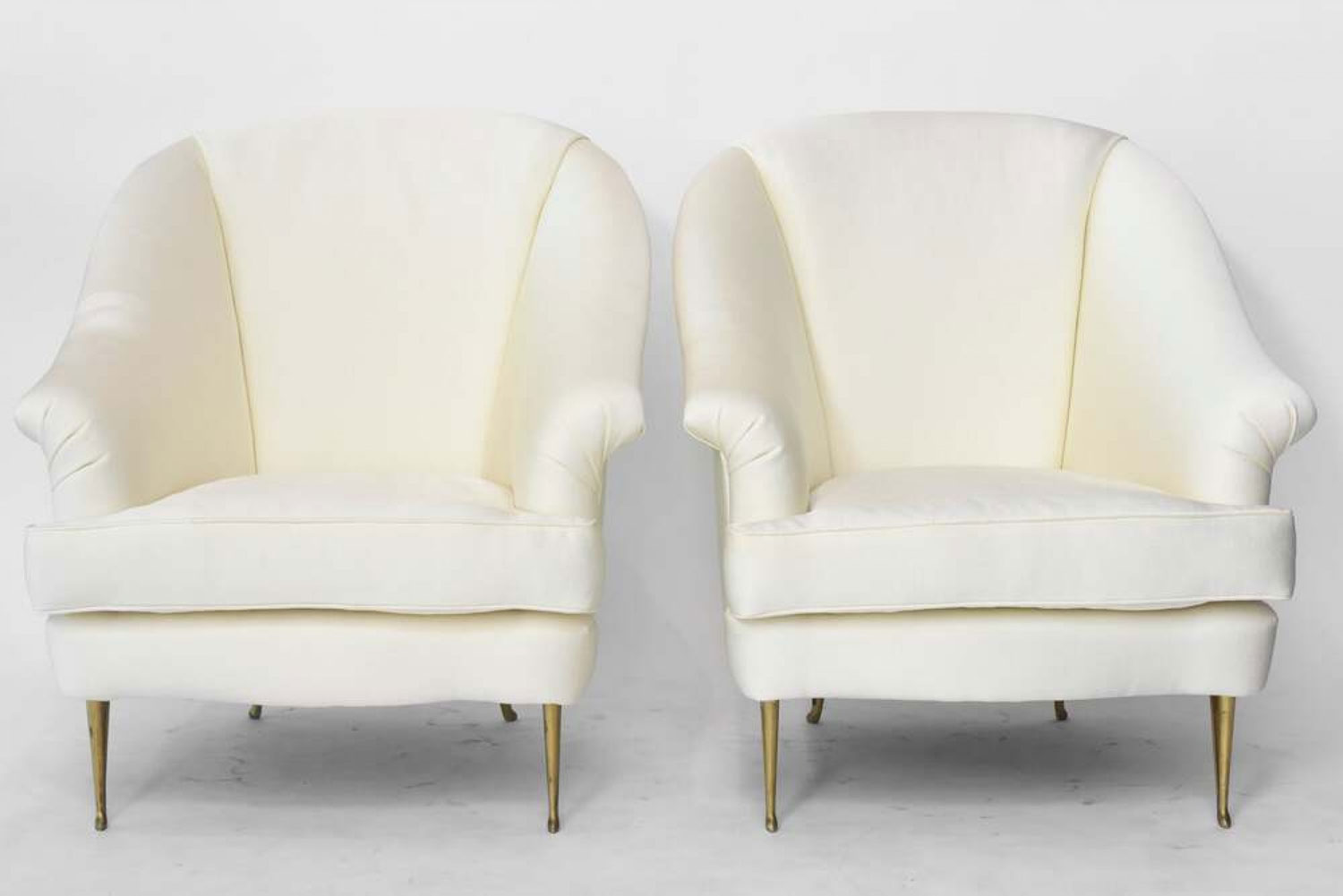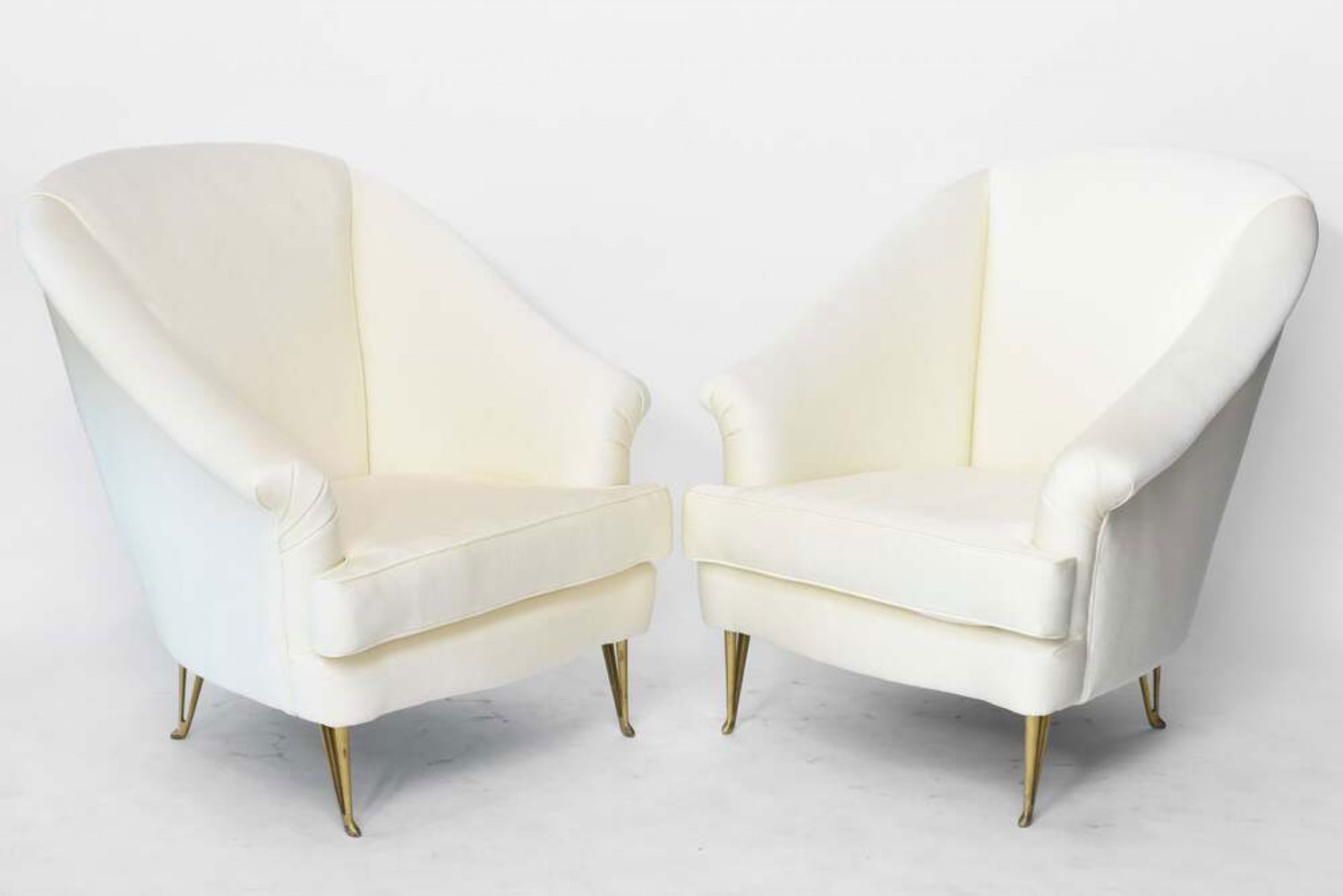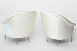 PAIR of Italian Mid-Century Modern (1950s) club chairs in white upholstery. (ISA INTERNATIONAL INC, Attributed to GIO PONTI) (PRICED AS PAIR)