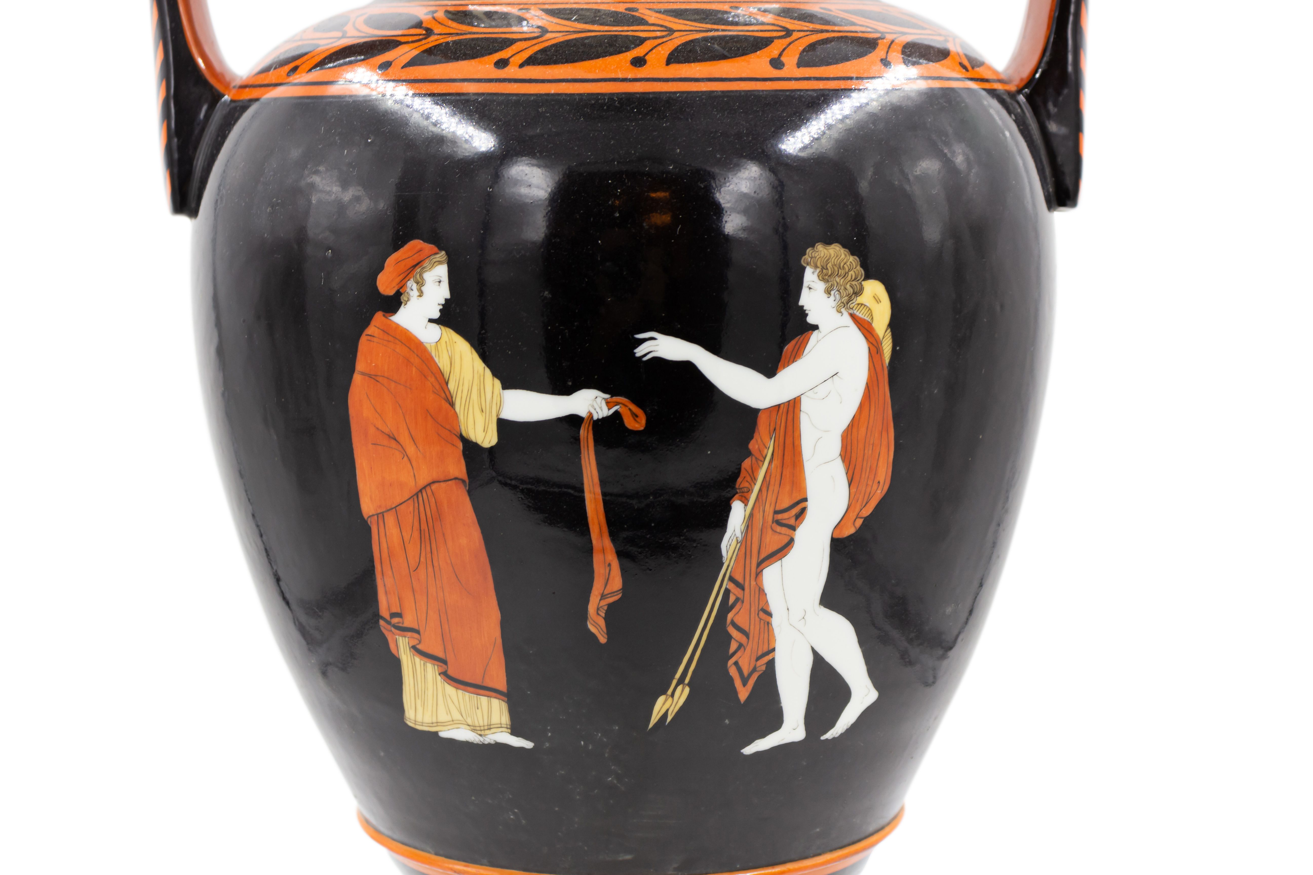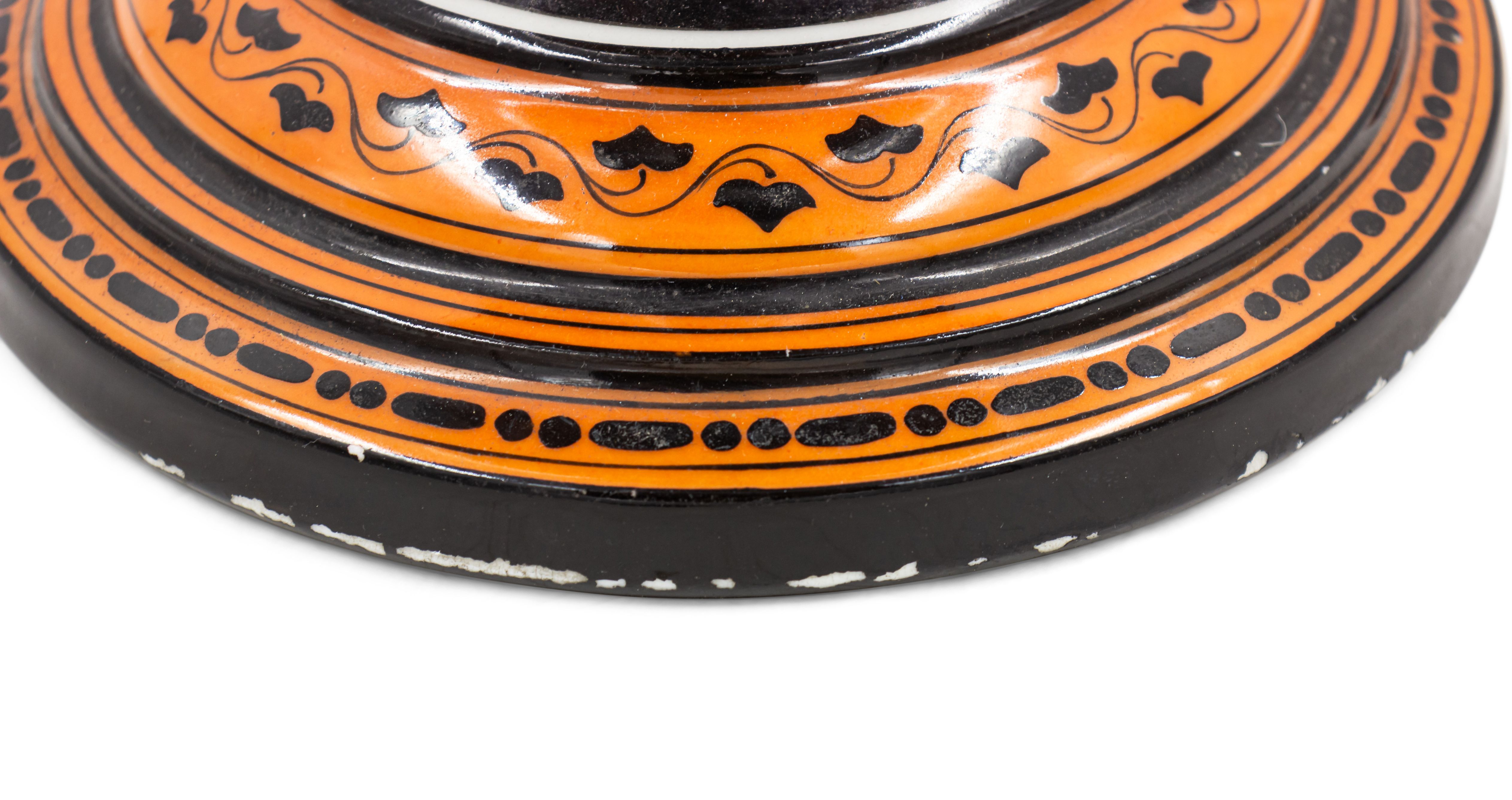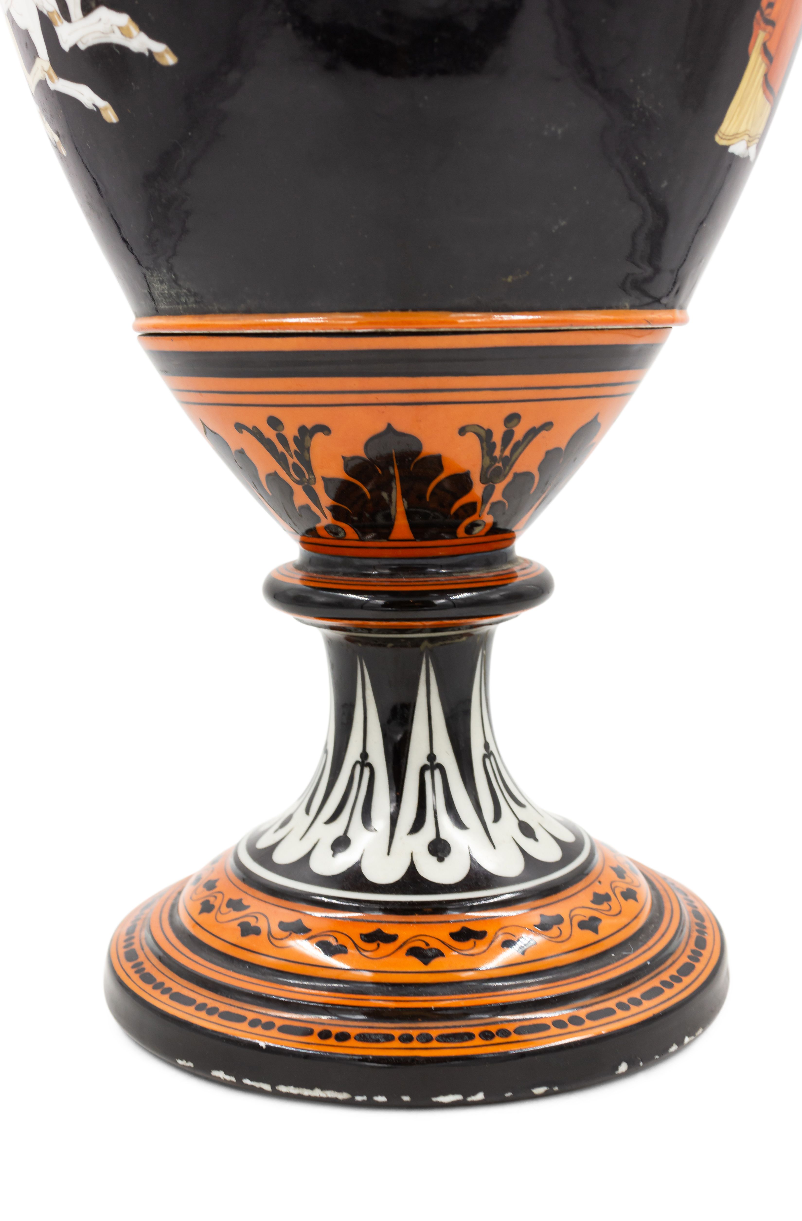 Pair of Grecian Style Black and Orange Porcelain Vases