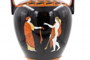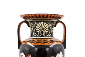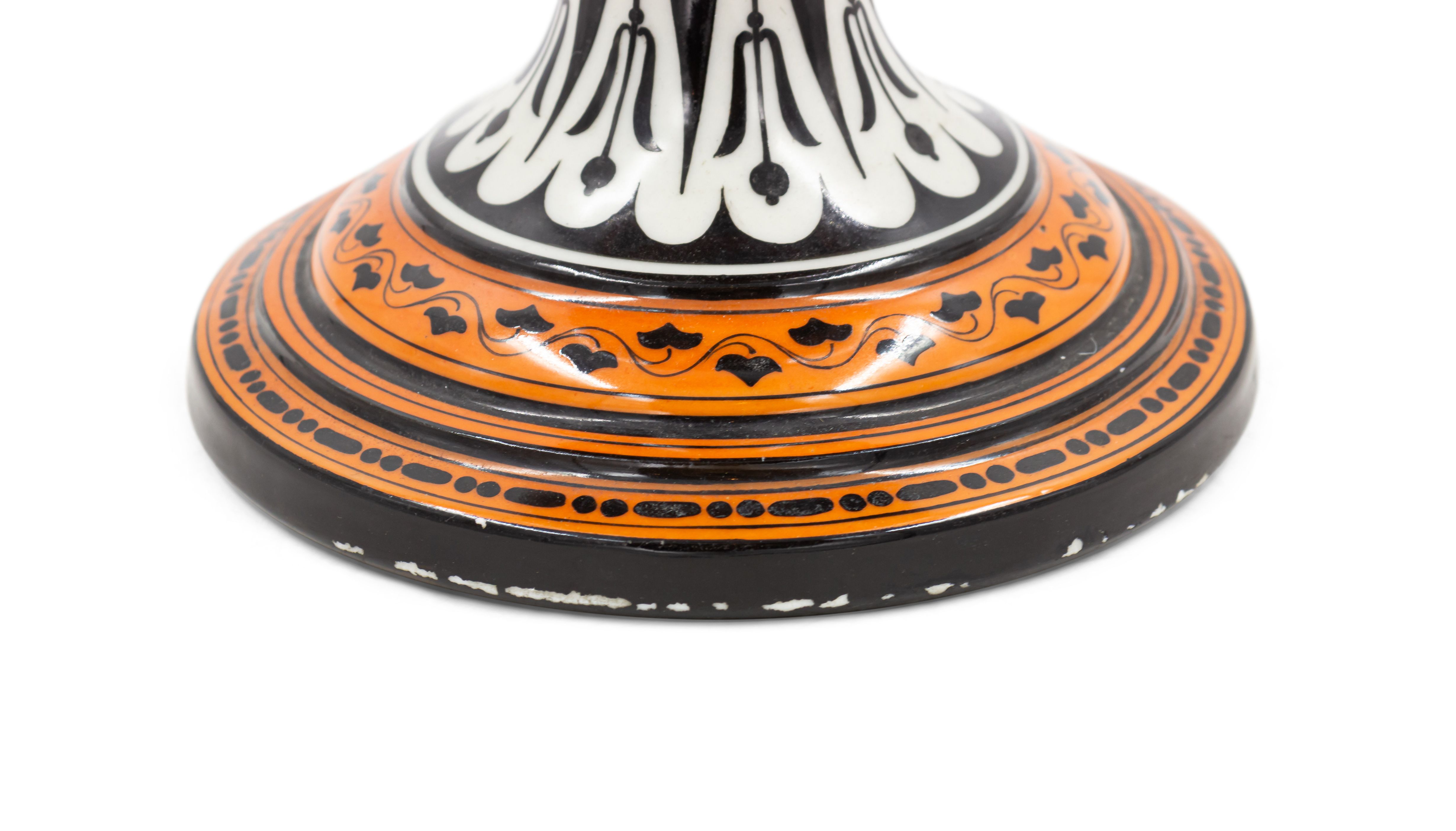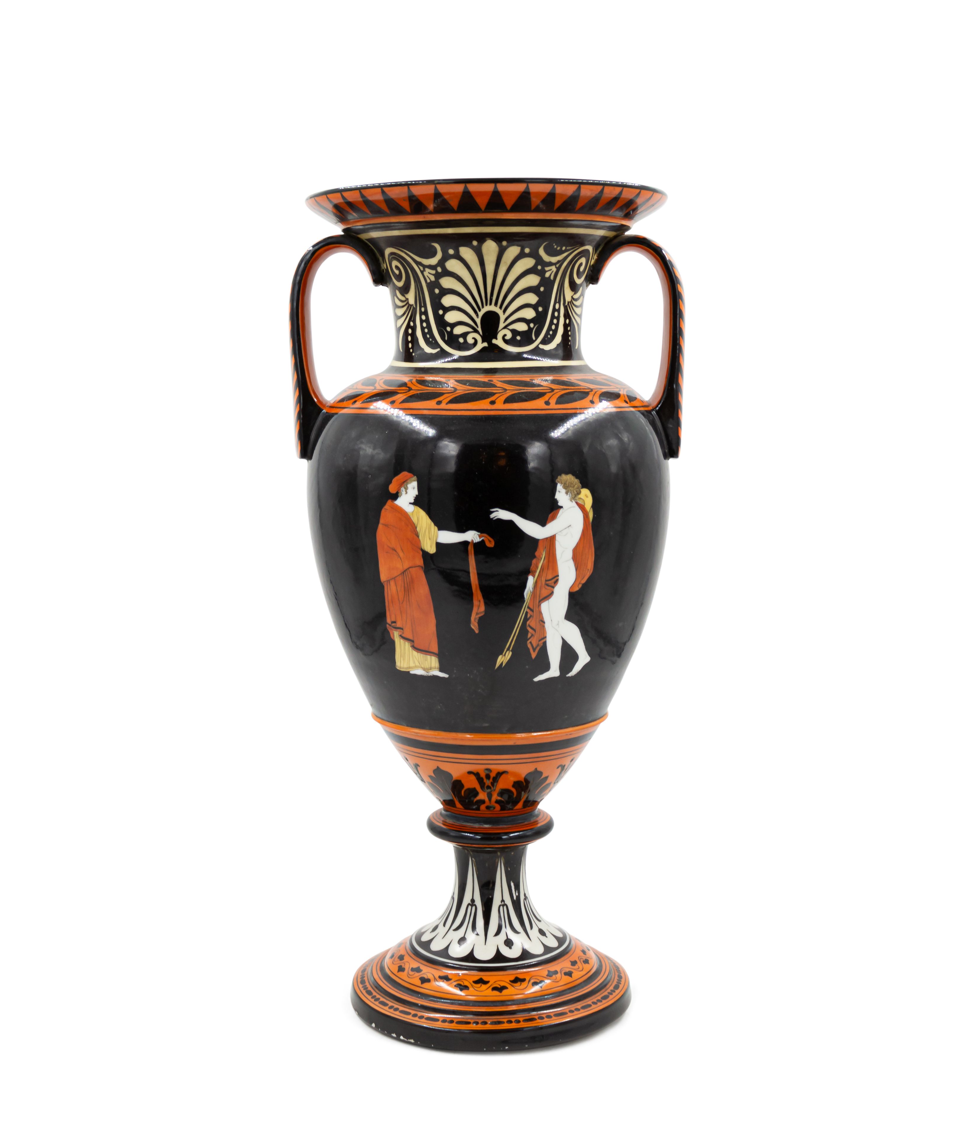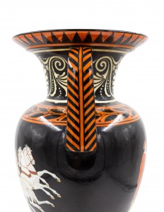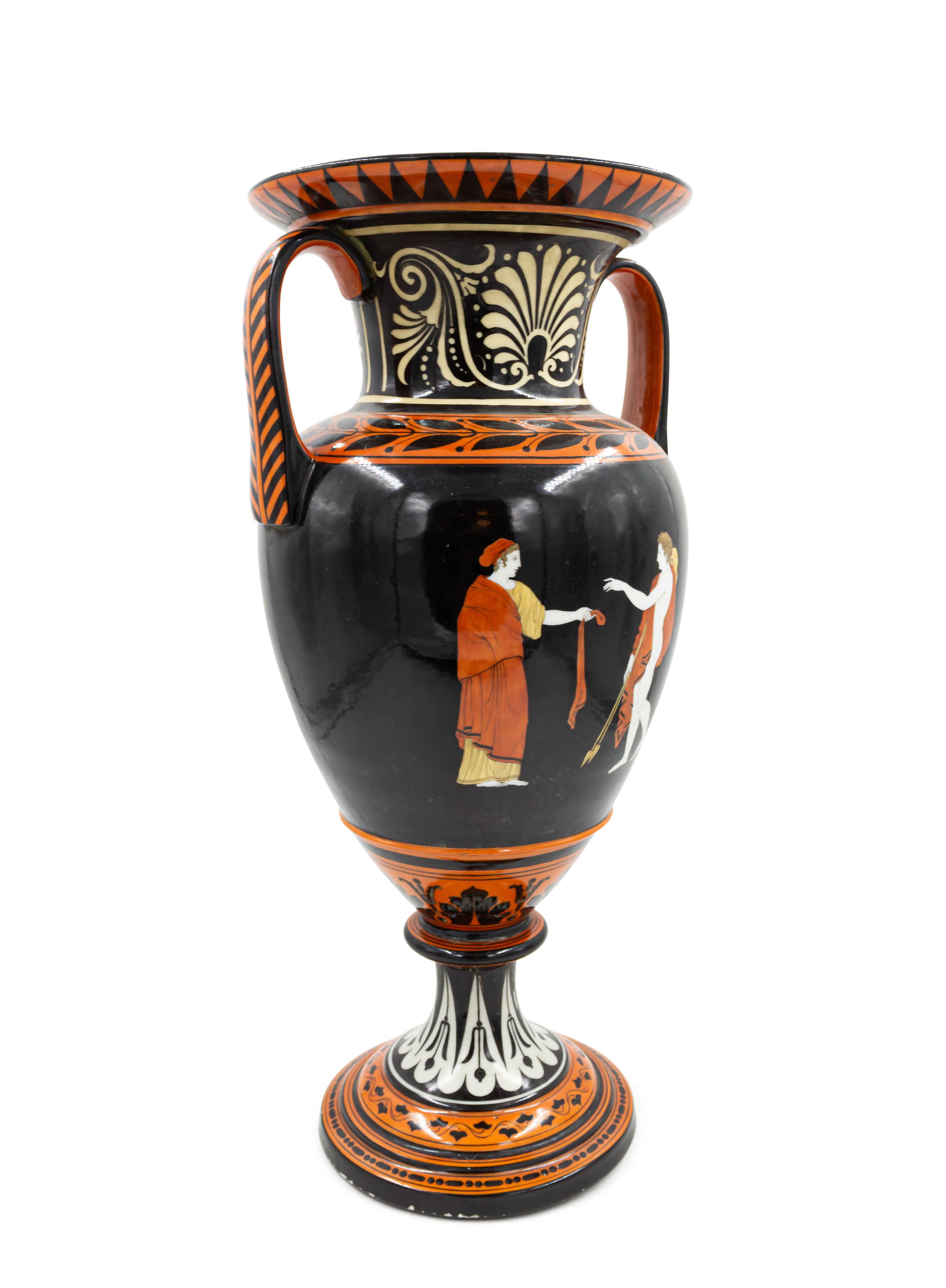 Pair of Grecian Style Black and Orange Porcelain Vases