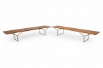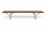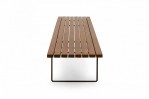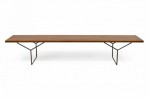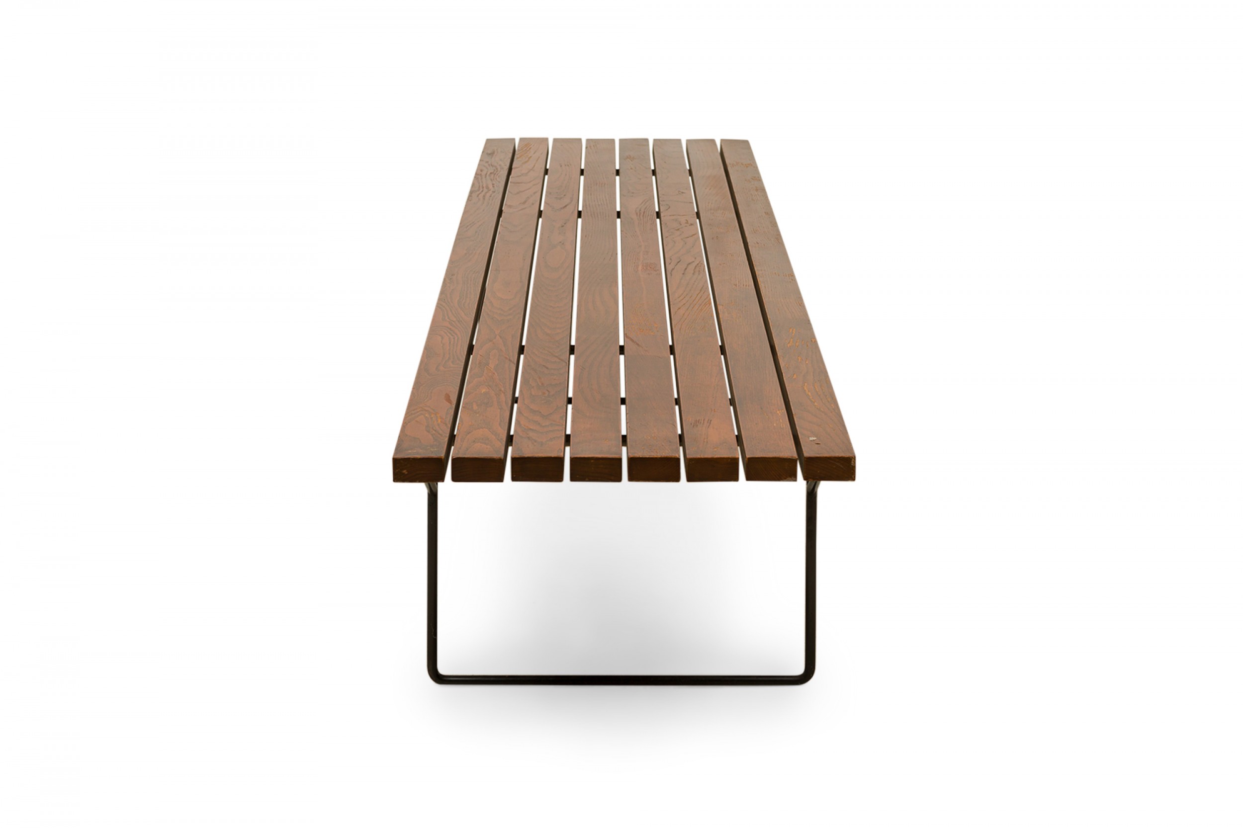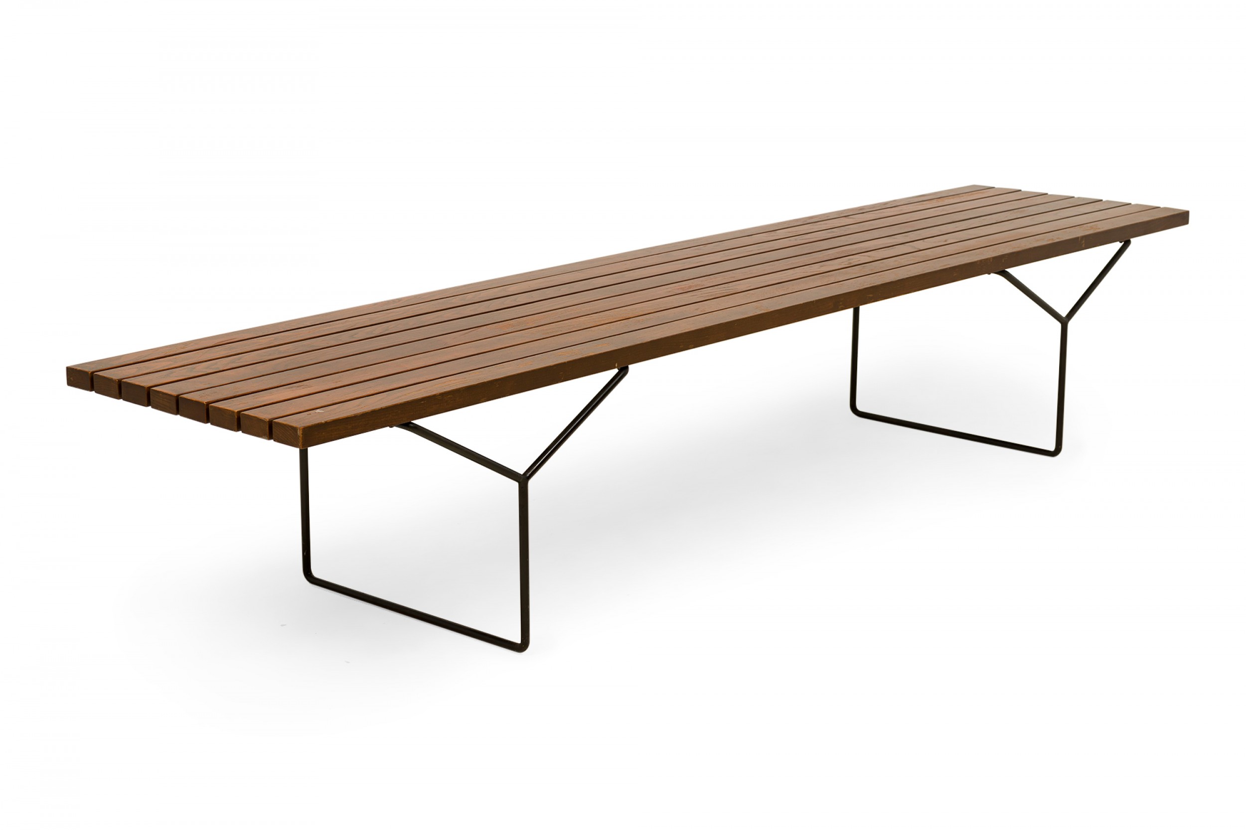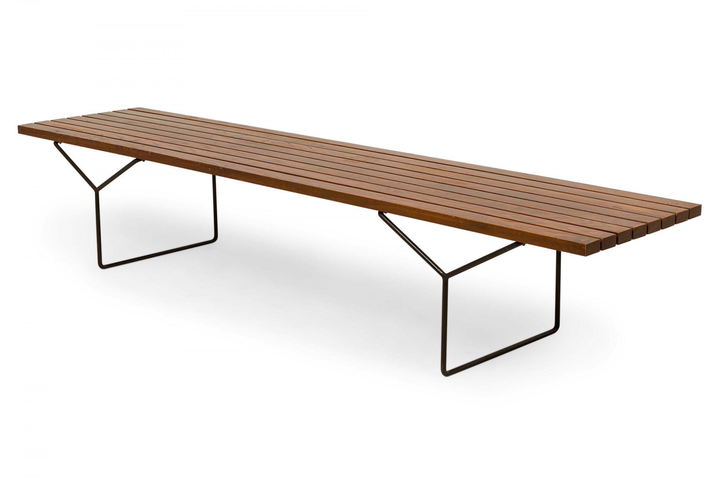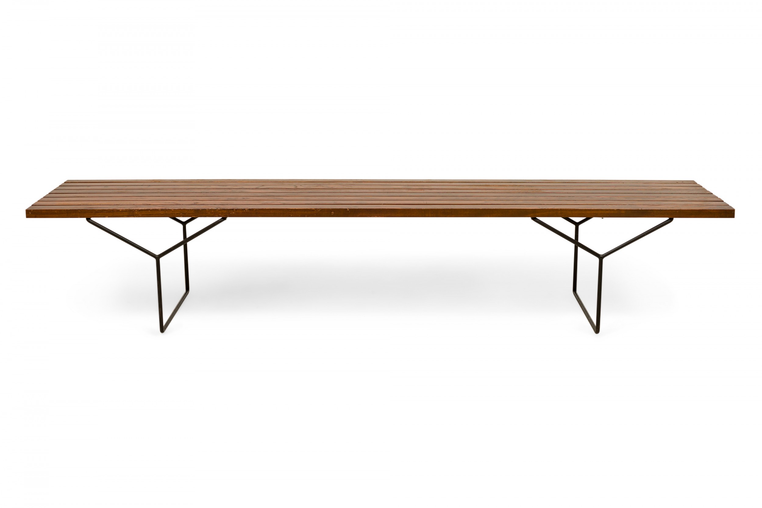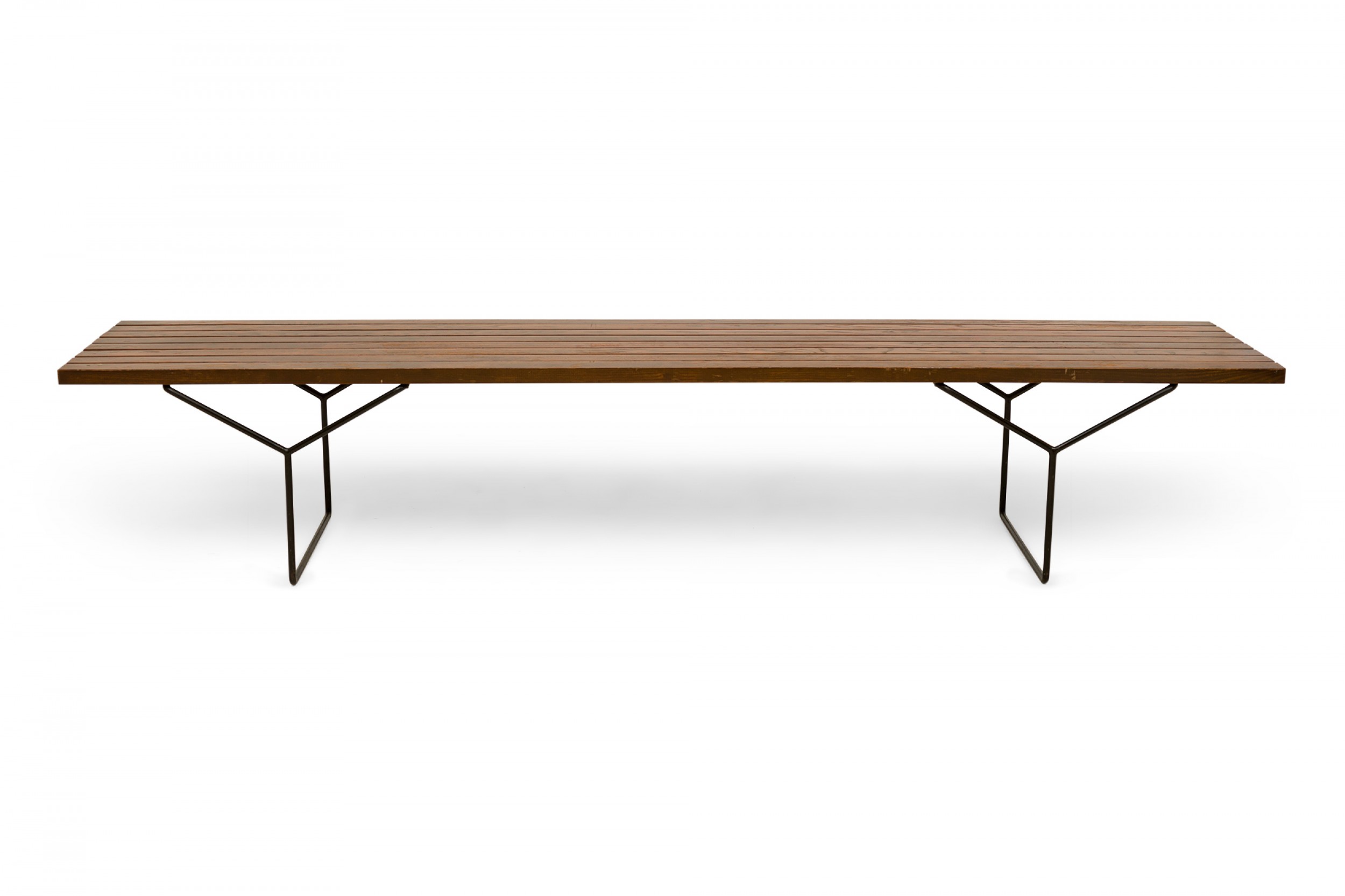 PAIR of American Mid-Century rectangular benches with a wooden slat seat resting on a Y-Frame black metal base. (HARRY BERTOIA FOR KNOLL ASSOCIATES)(PRICED AS PAIR)