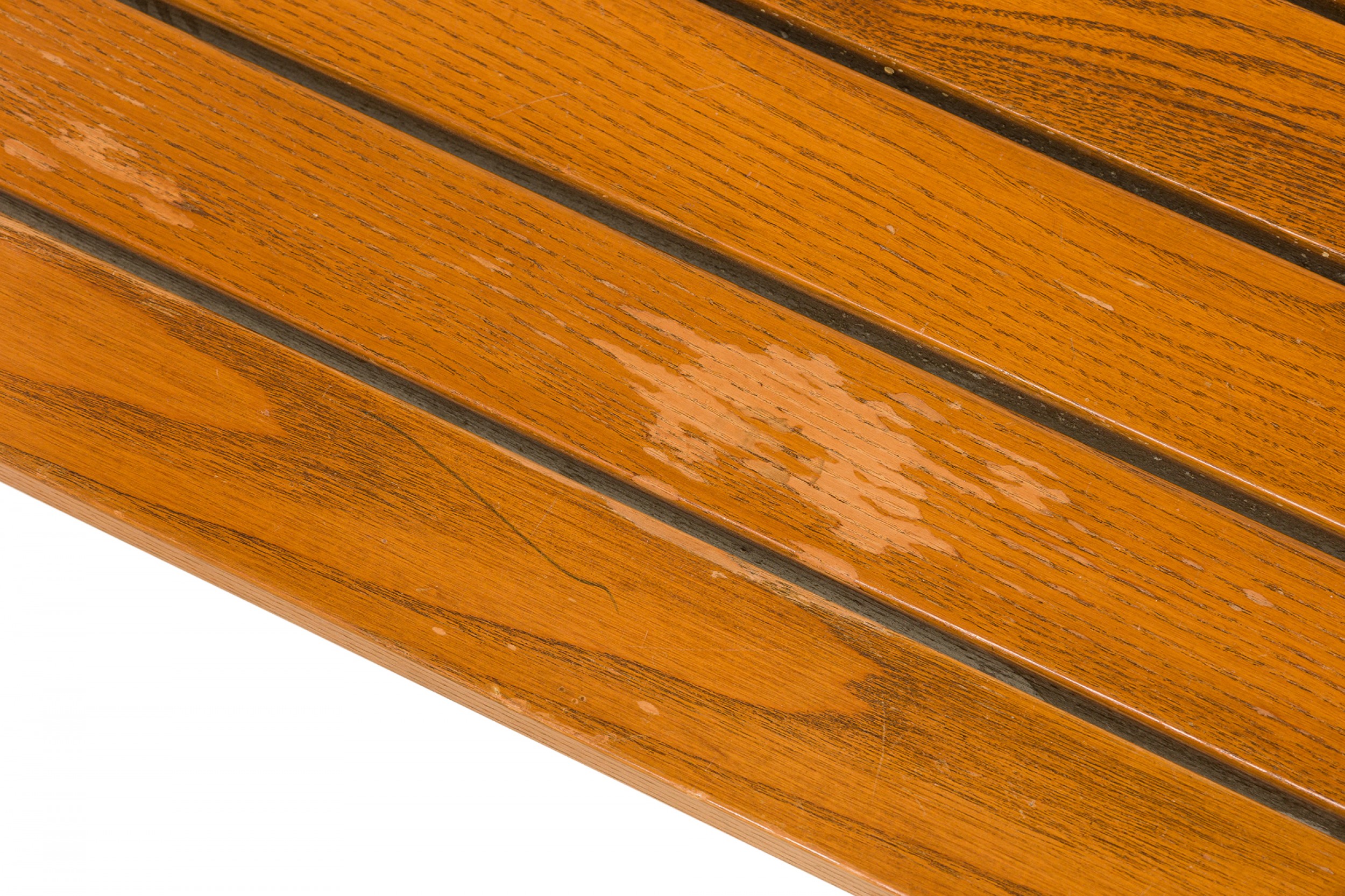 PAIR of American Mid-Century rectangular benches with a wooden slat seat resting on a Y-Frame black metal base. (HARRY BERTOIA FOR KNOLL ASSOCIATES)(PRICED AS PAIR).