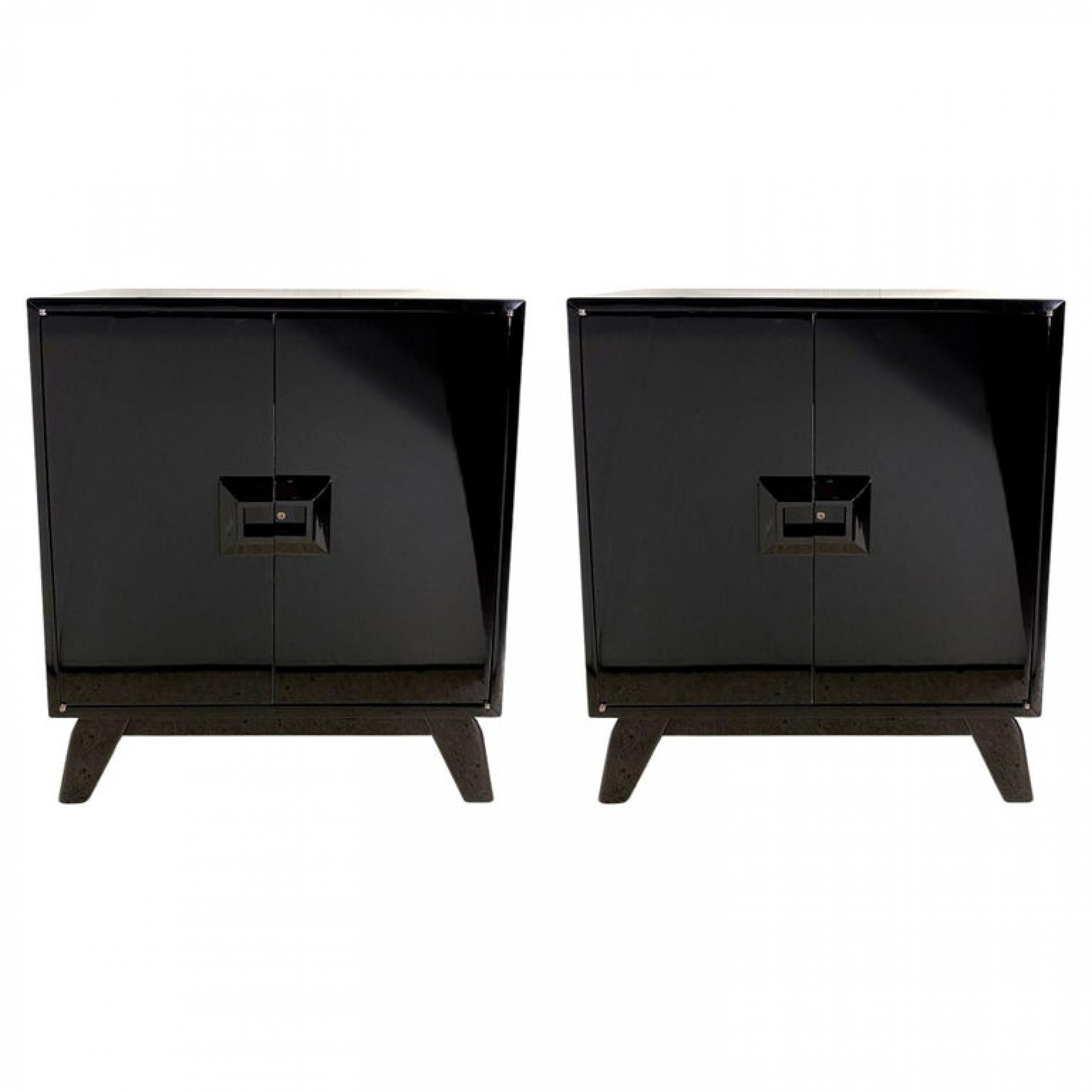 PAIR of Italian Mid-Century Modern black lacquered cabinets. (RENZO RUTILI)(PRICED AS PAIR)