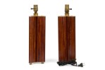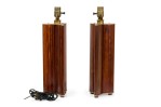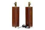 PAIR of Italian Mid-Century Solid Rosewood Column Table Lamps having a form of 3 concave connected panels (PRICED AS PAIR)