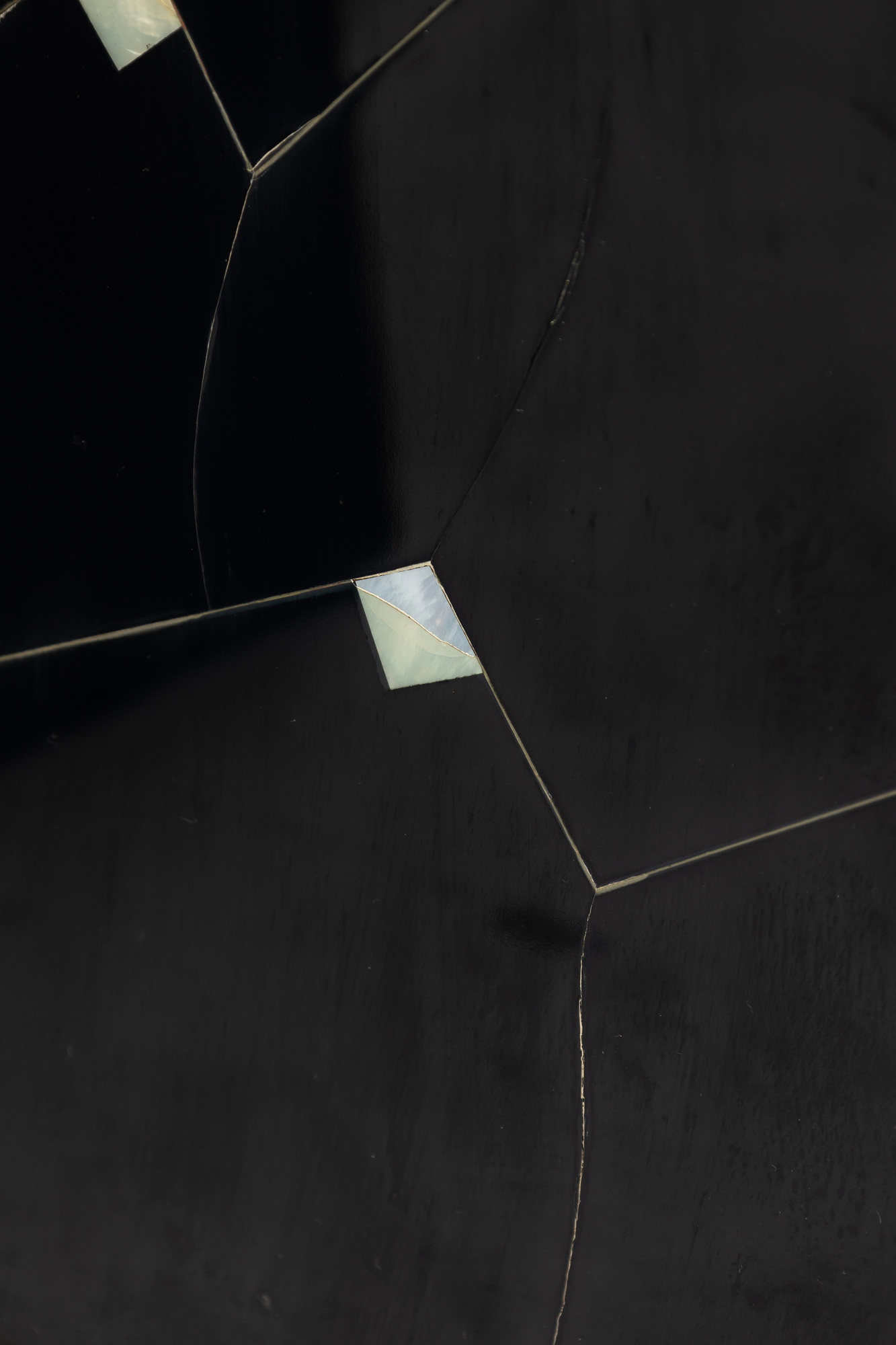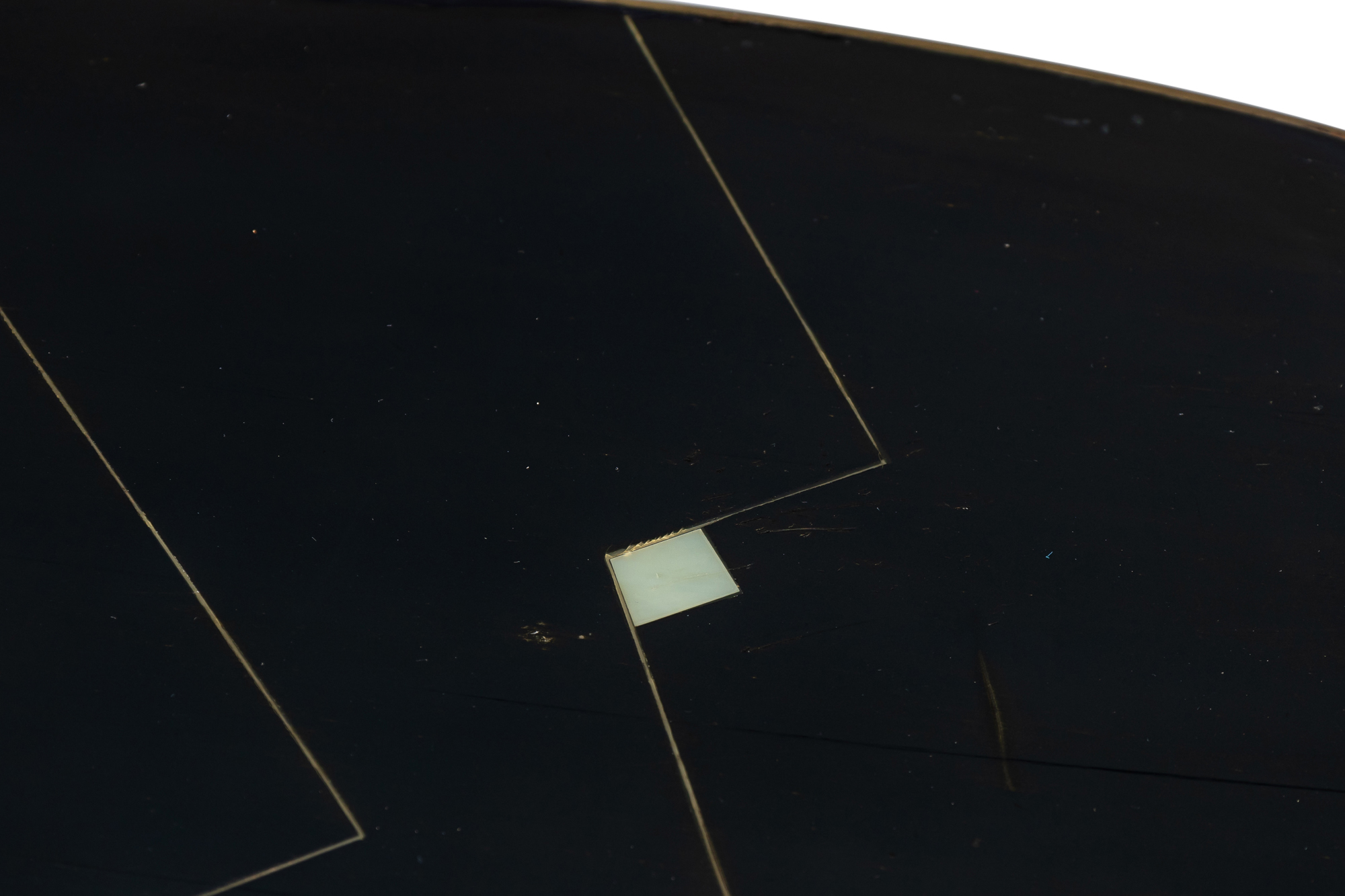 Style: Mid-Century Materials & Techniques: Bone, lacquered, wood Category: Tables Condition: Losses to lacquered finish, remaining lacquer is fragile Good; Minor losses