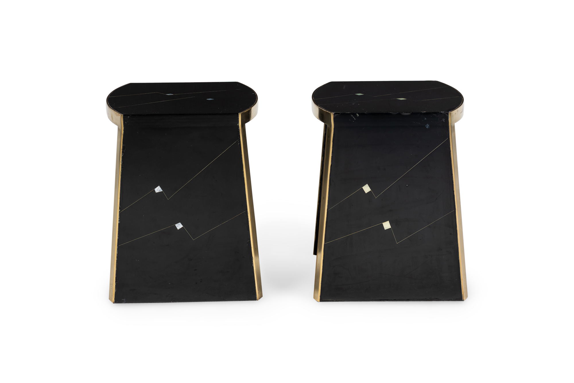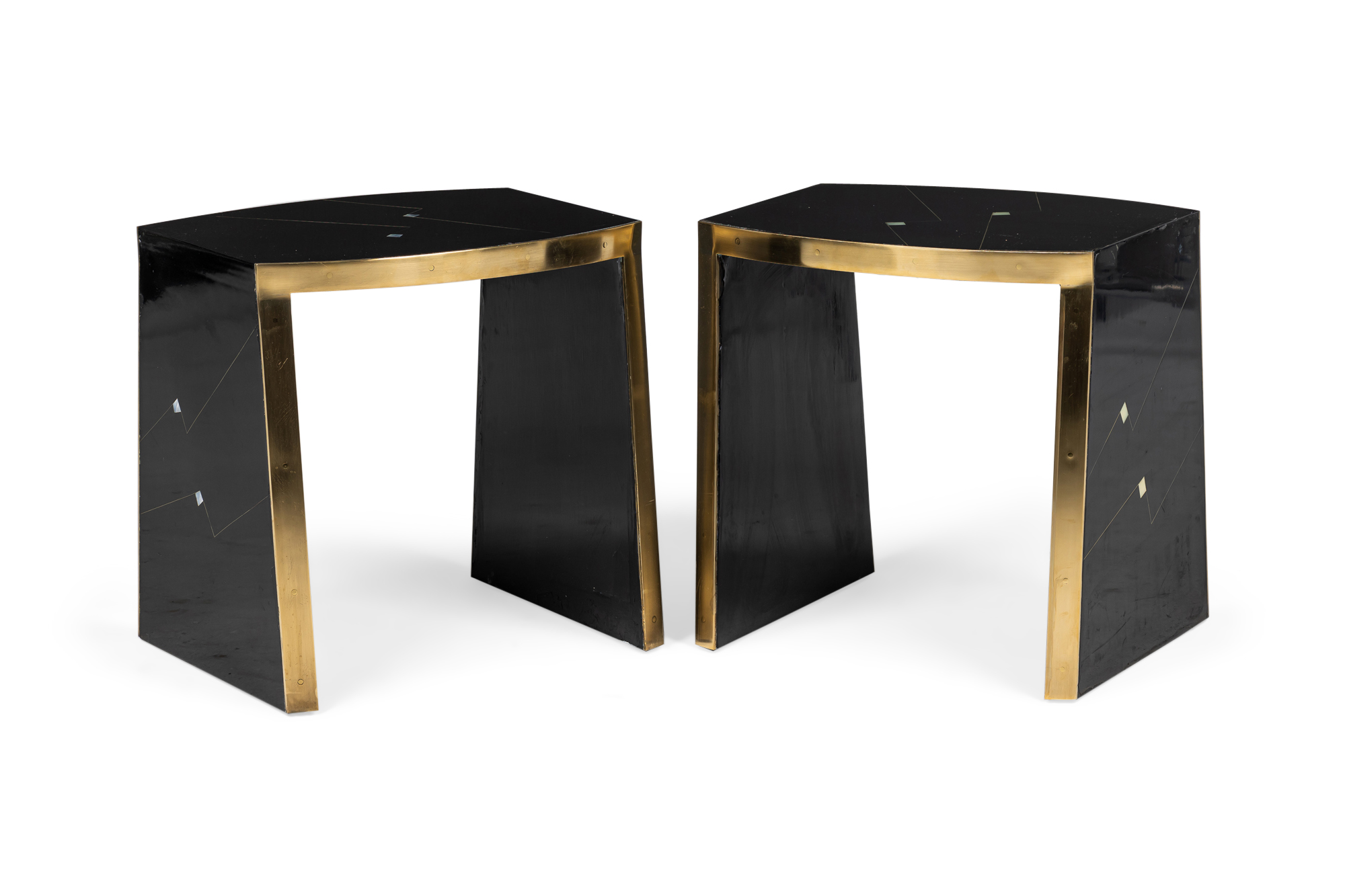 Pair of Karl Springer American Modern Lacquer and Bone Inlaid End / Side Tables