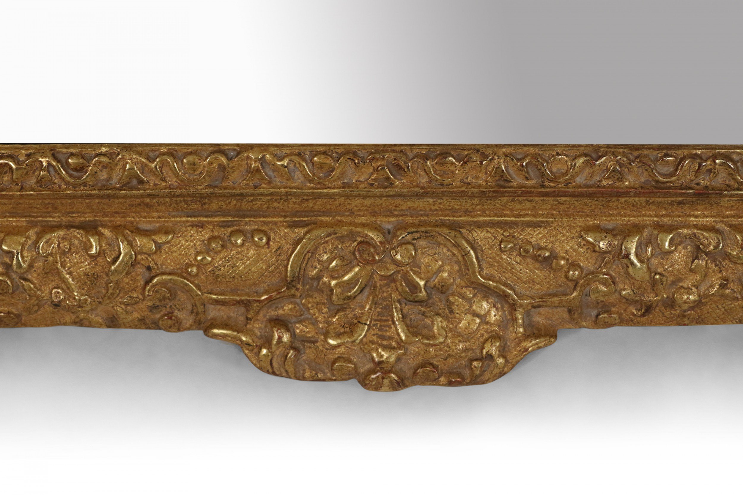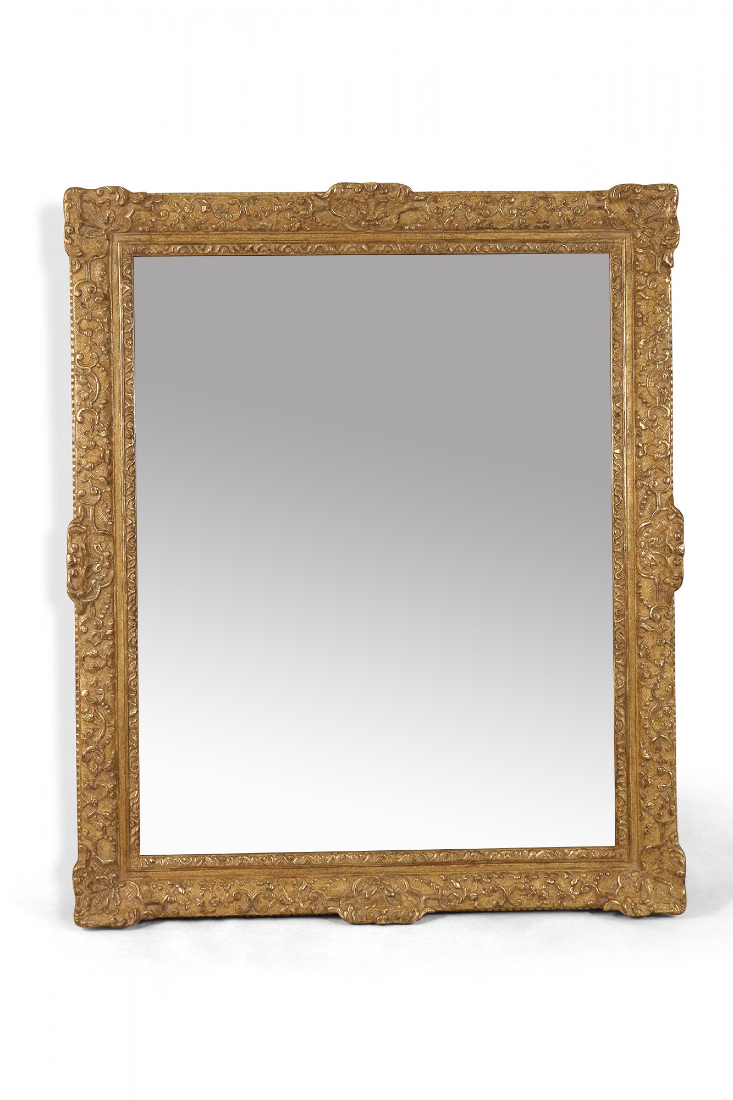 PAIR of French Regence style carved giltwood wall mirrors with large rectangular frames. (PRICED AS PAIR)