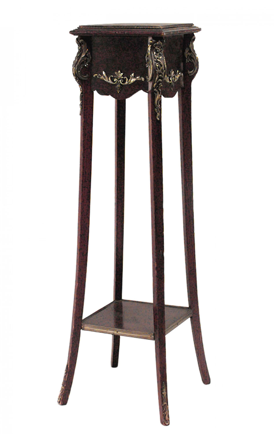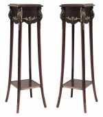 PAIR of French Louis XV style (19/20th Cent) square mahogany and bronze trimmed pedestals with platform stretcher.