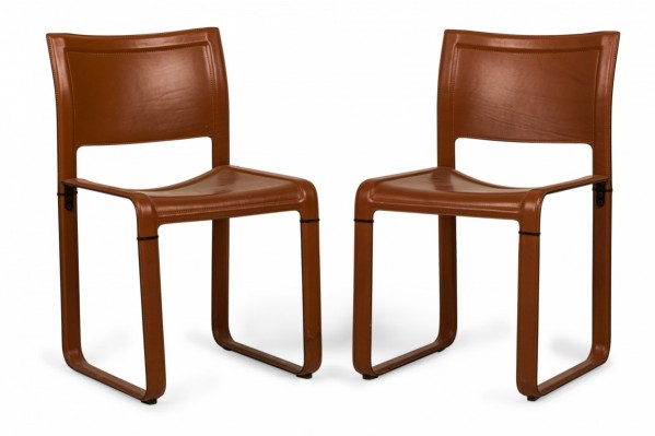 Pair of Matteo Grassi Italian Mid-Century Brown Leather-Wrapped Side Chairs