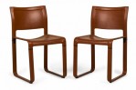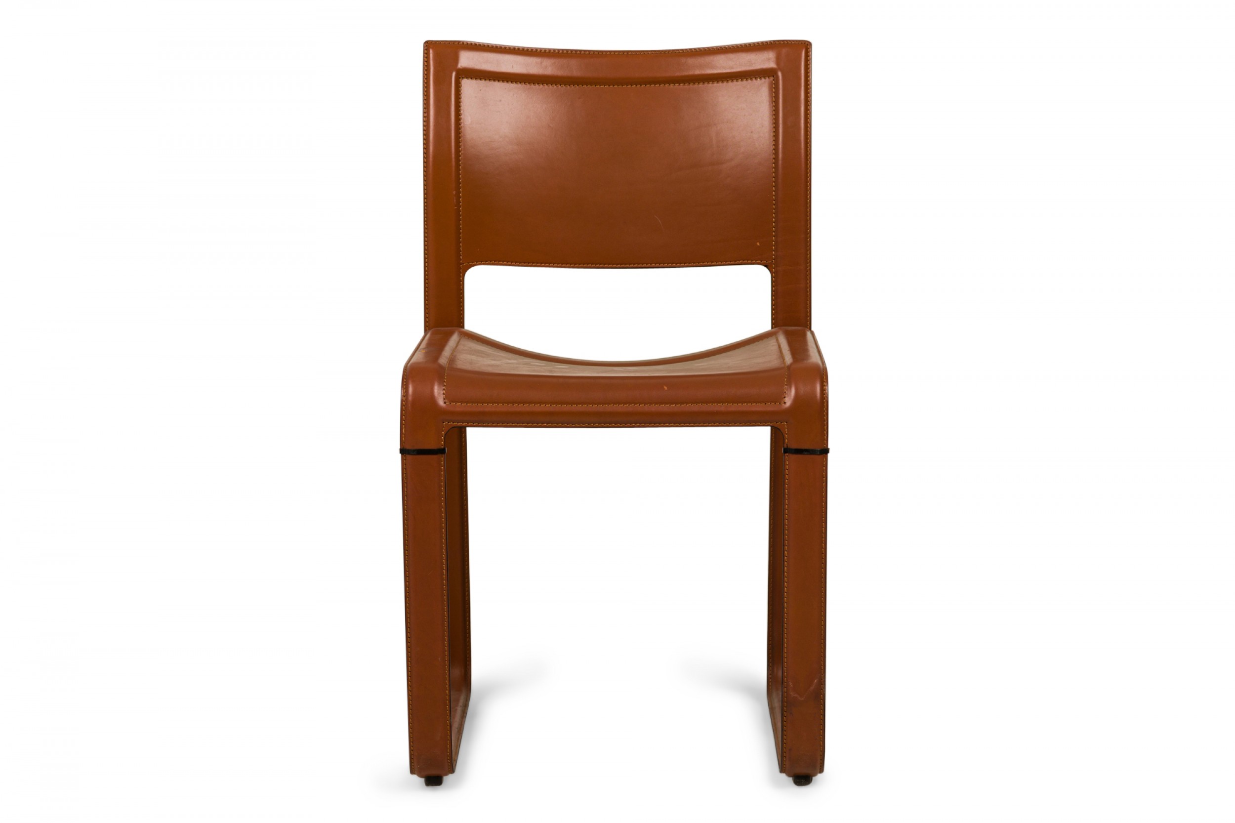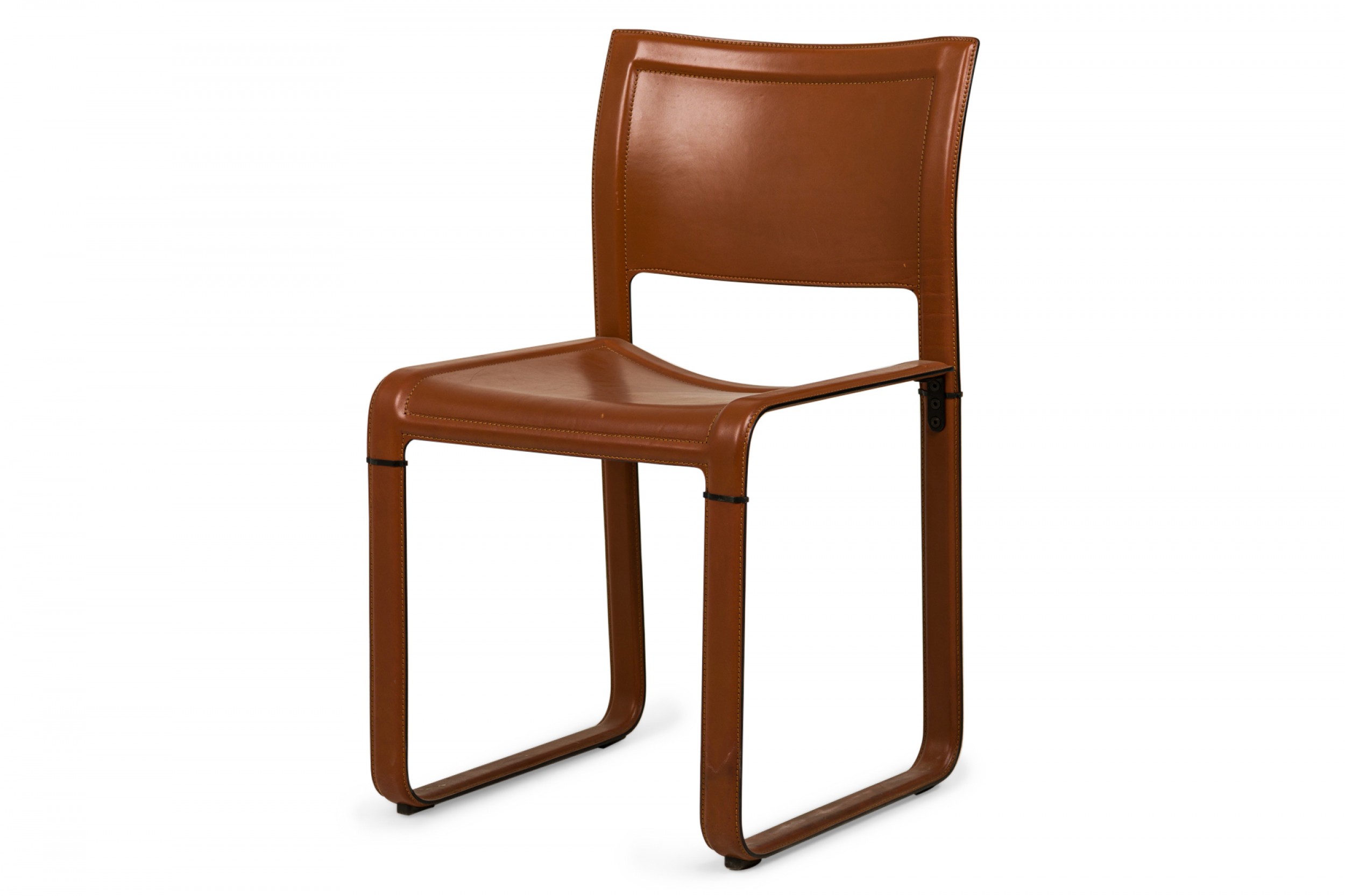 PAIR of Italian Mid-Century side chairs with brown leather wrapped frames and seats with defined stitching. (MATTEO GRASSI)(PRICED AS PAIR).
