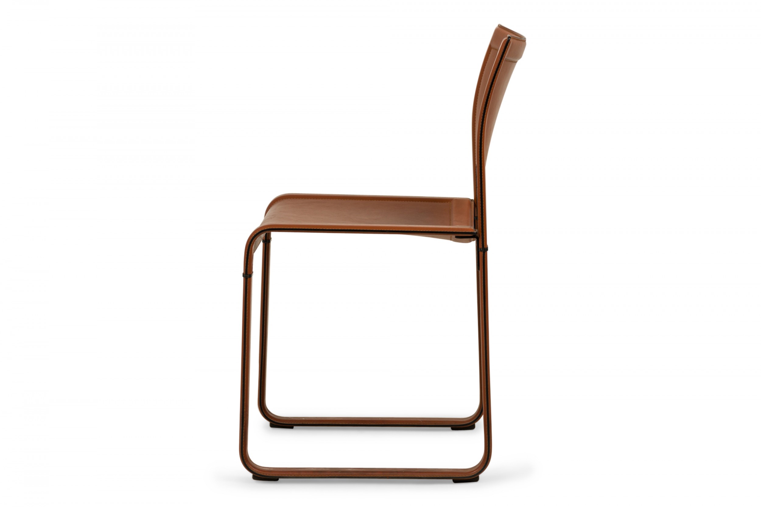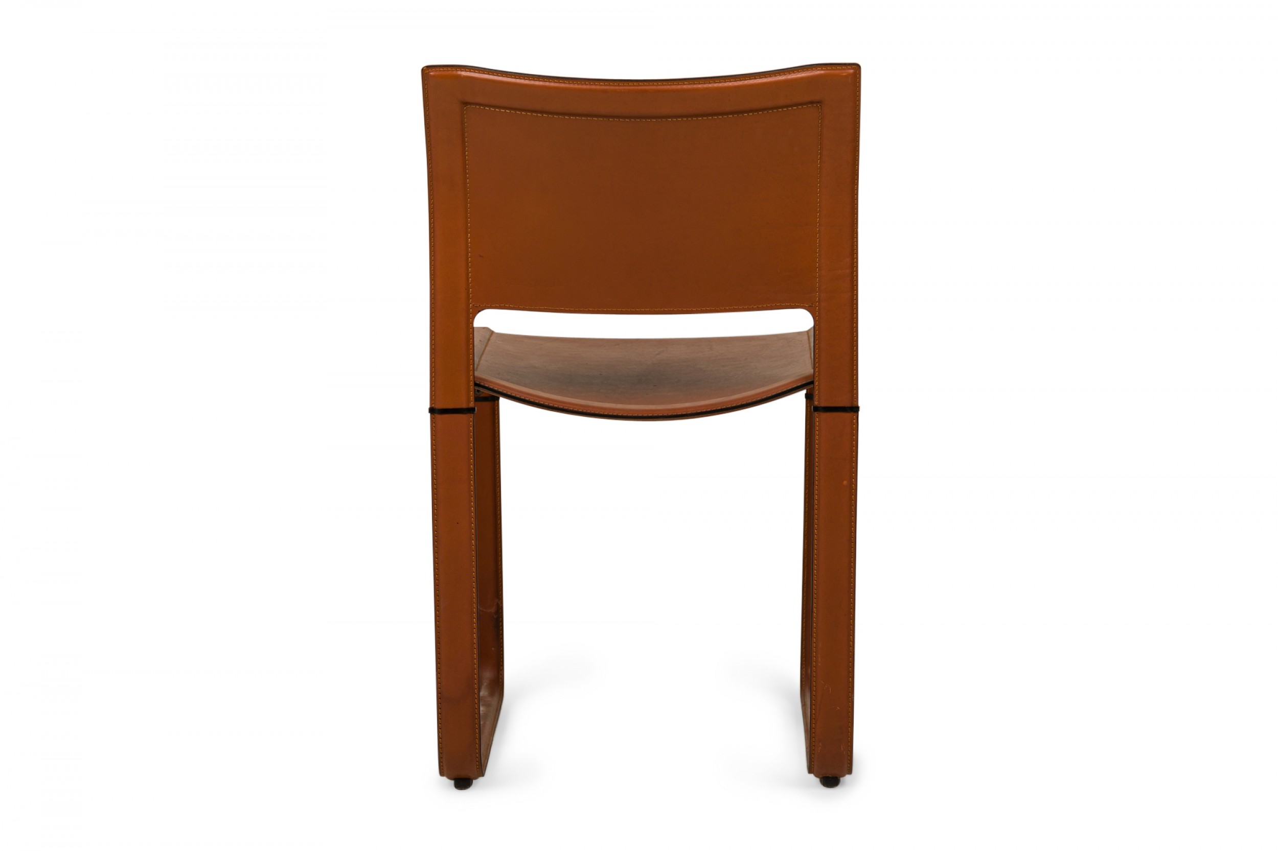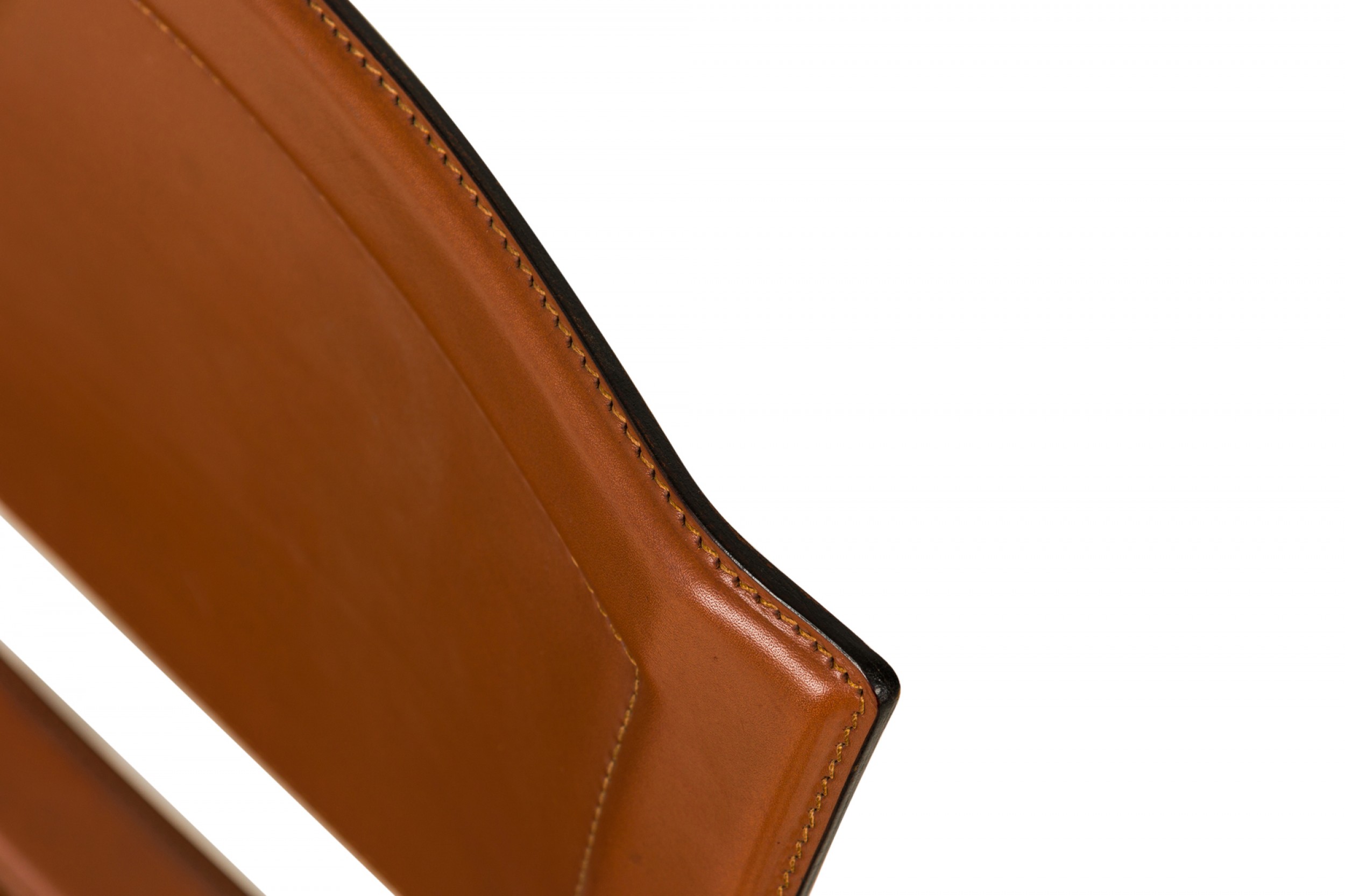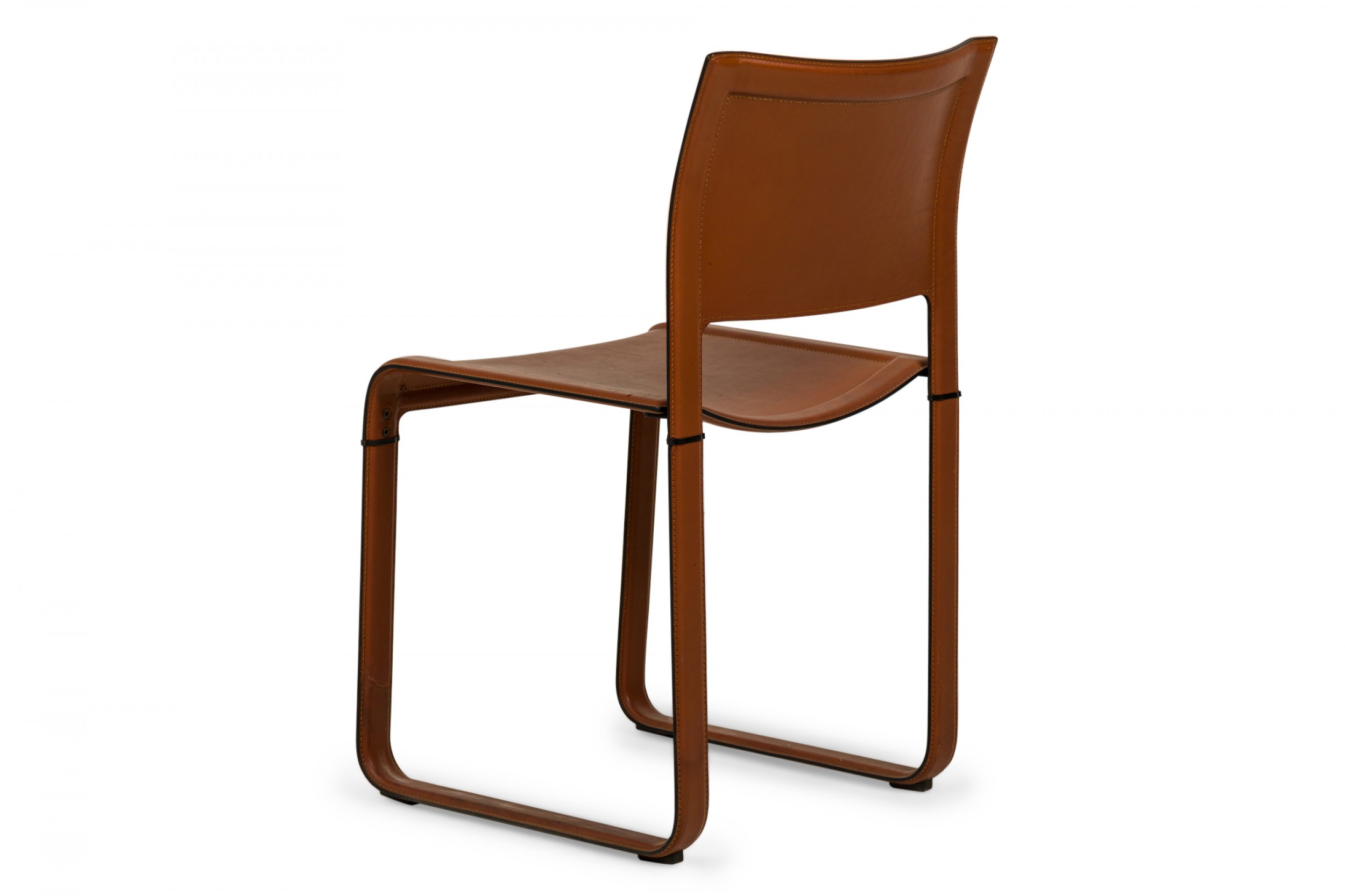 PAIR of Italian Mid-Century side chairs with brown leather wrapped frames and seats with defined stitching. (MATTEO GRASSI)(PRICED AS PAIR)