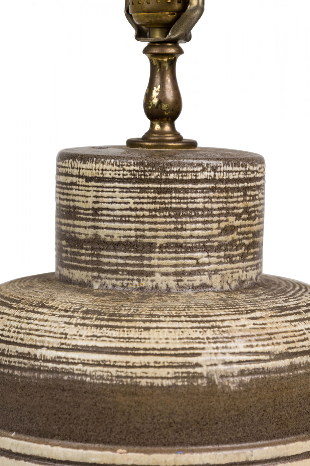 Pair of Mid-Century American Ceramic Texture Banded Brown and Beige Table Lamps