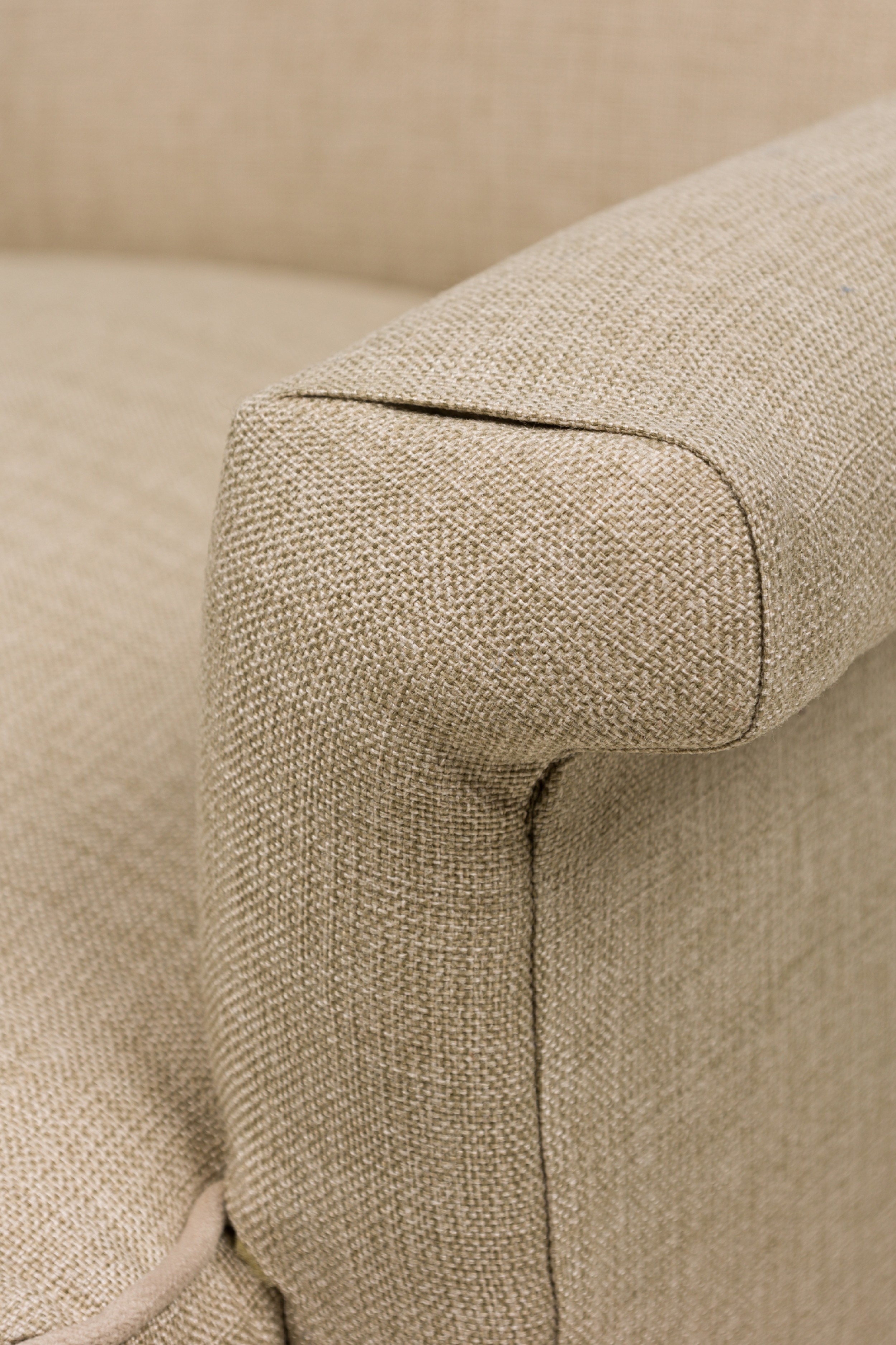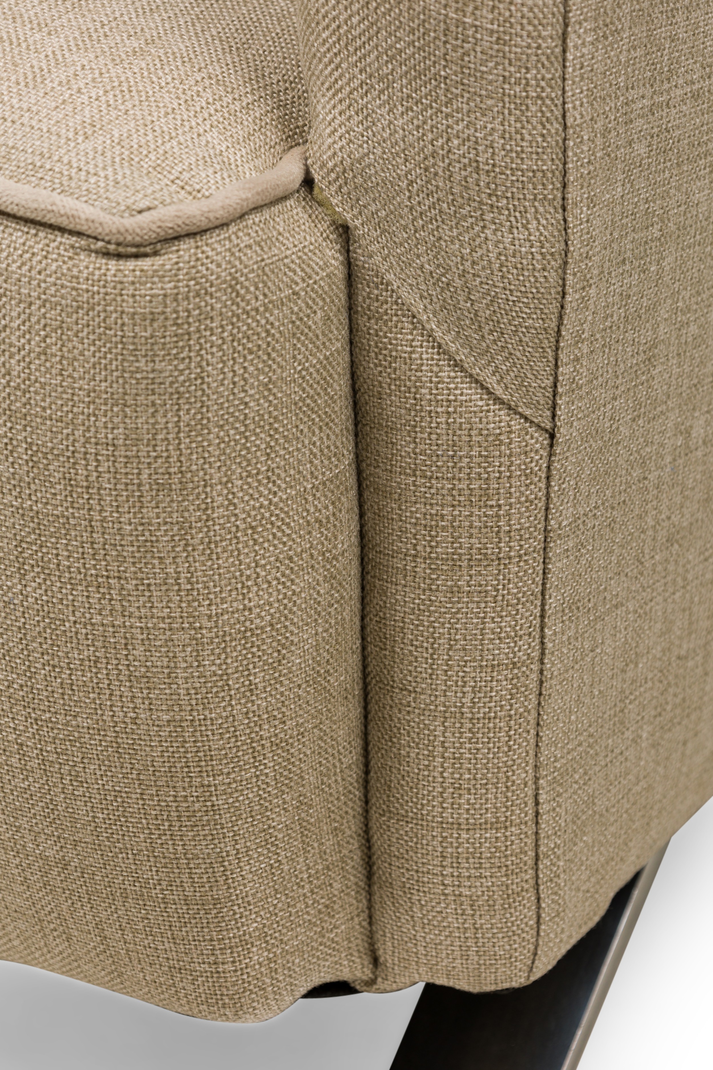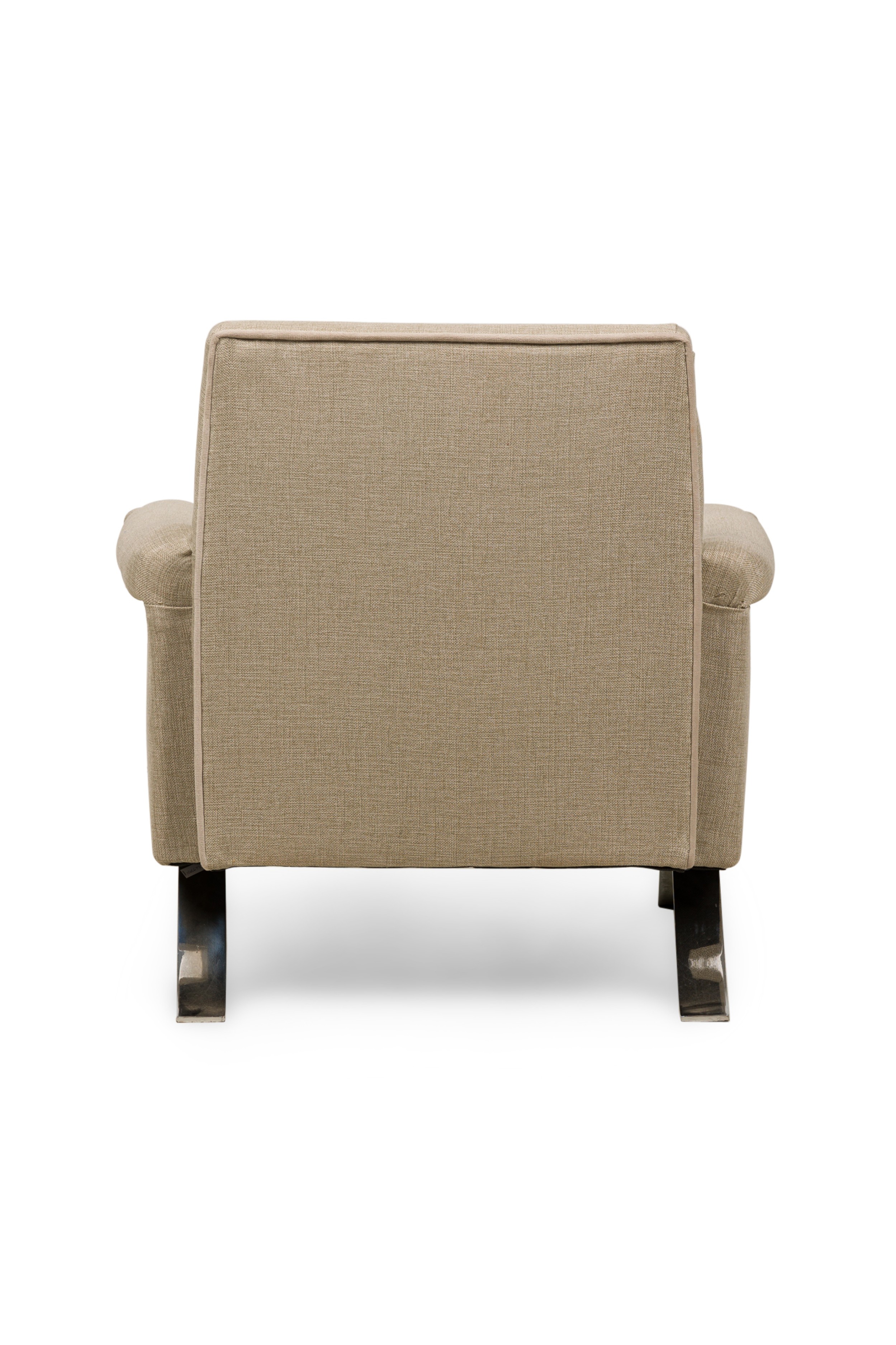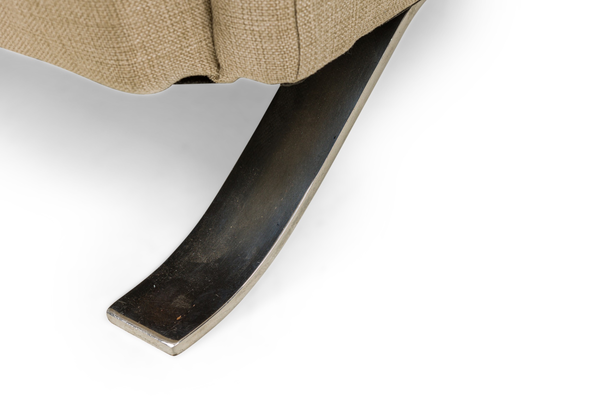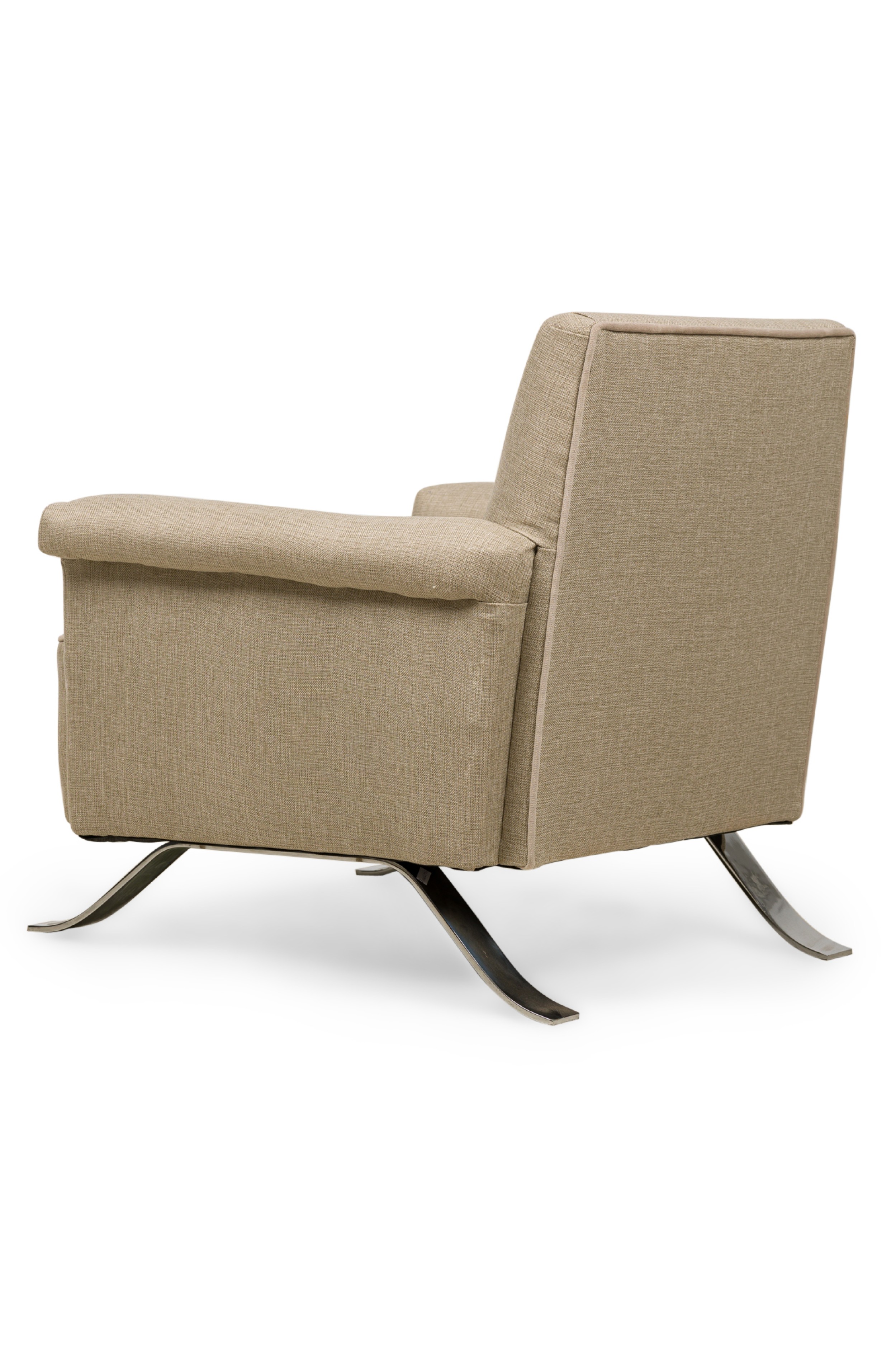 Pair of Mid-Century American Chrome Beige Fabric Upholstered Lounge / Armchairs