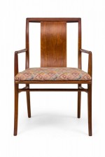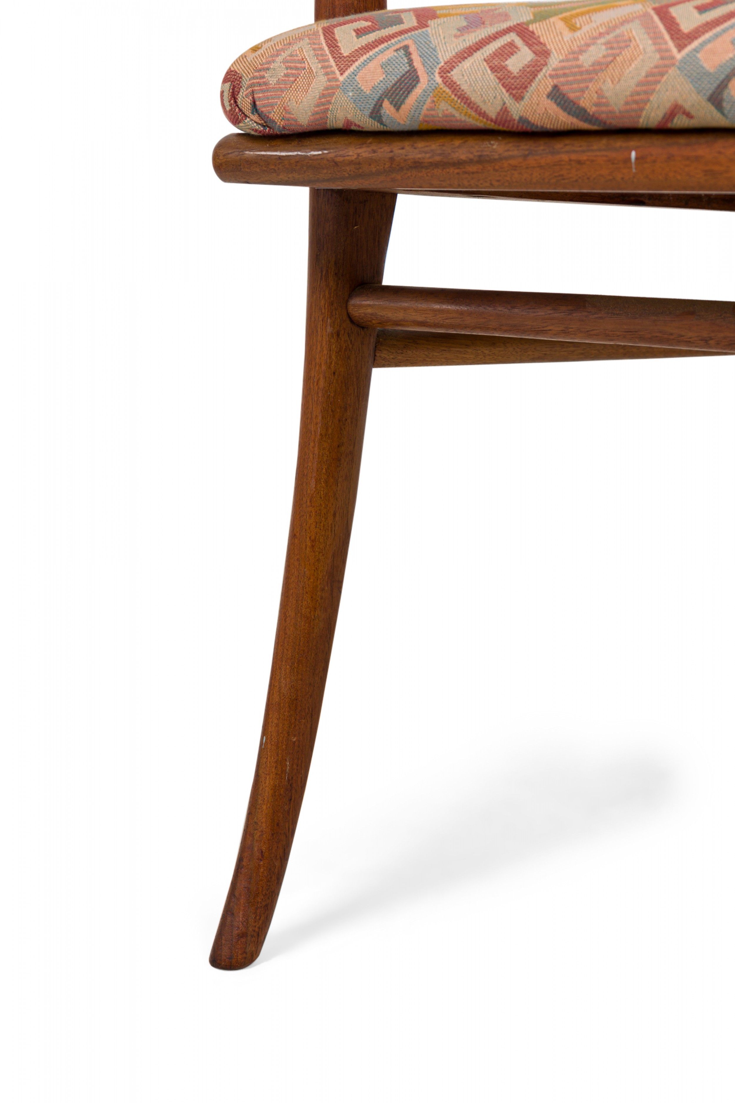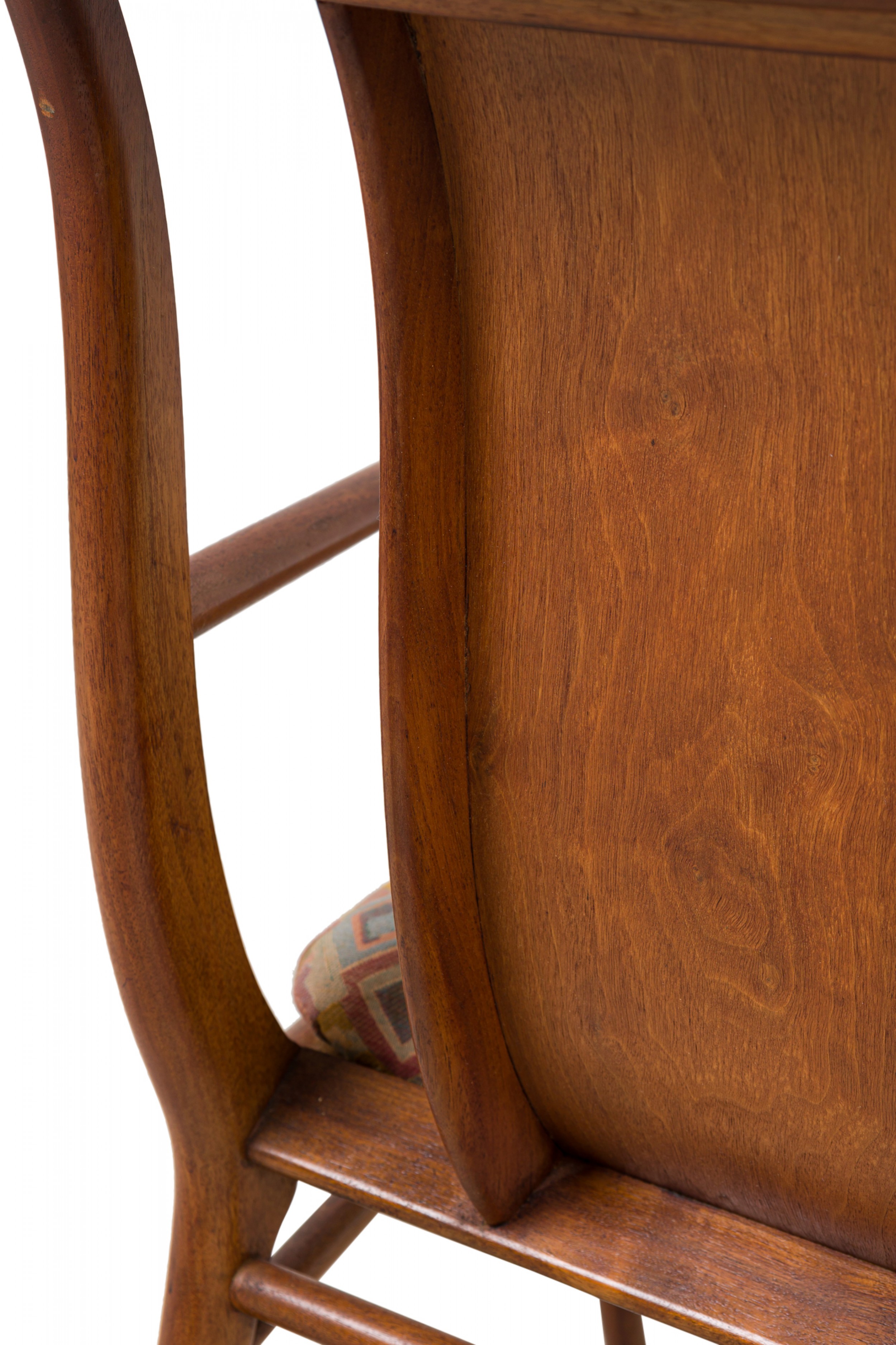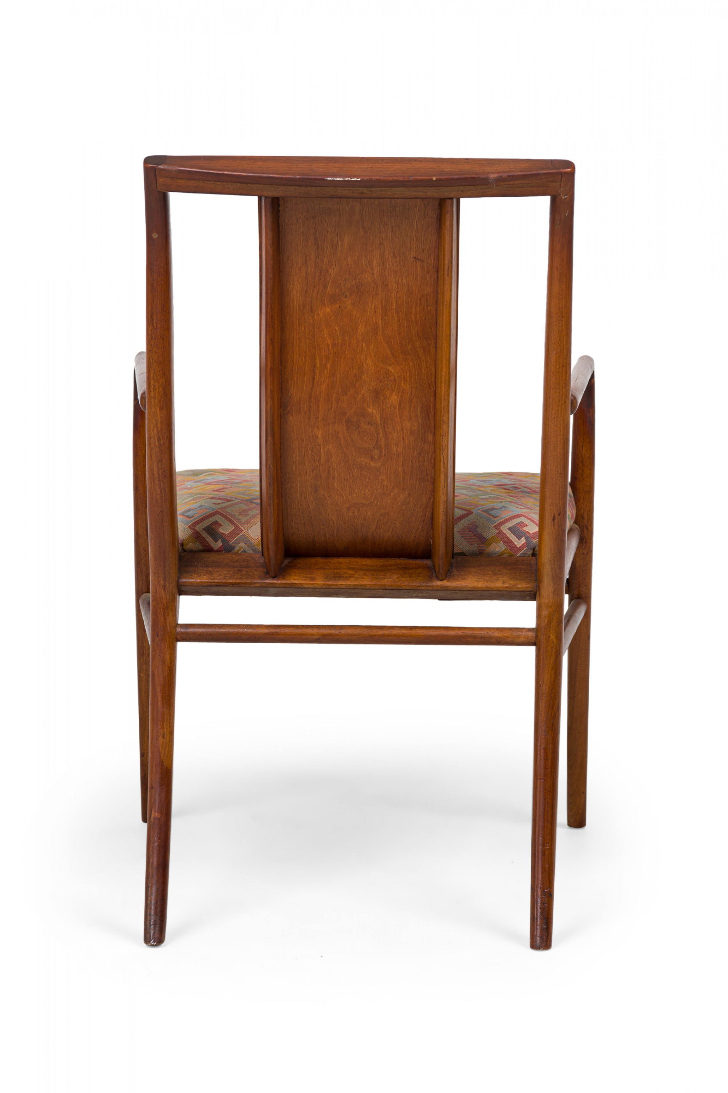 PAIR of Mid-Century American walnut armchairs with a square back having wavy splat panel back and upholstered seat (TH Robsjohn Gibbings) (PRICED AS PAIR)